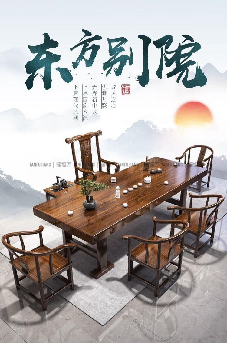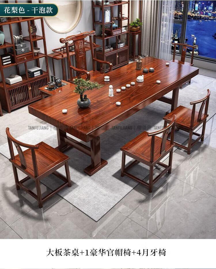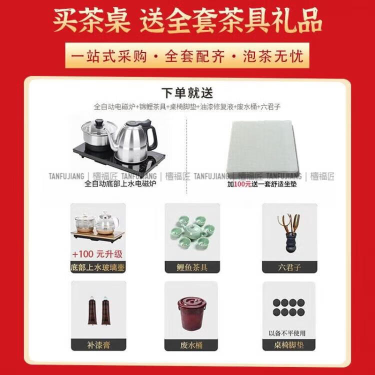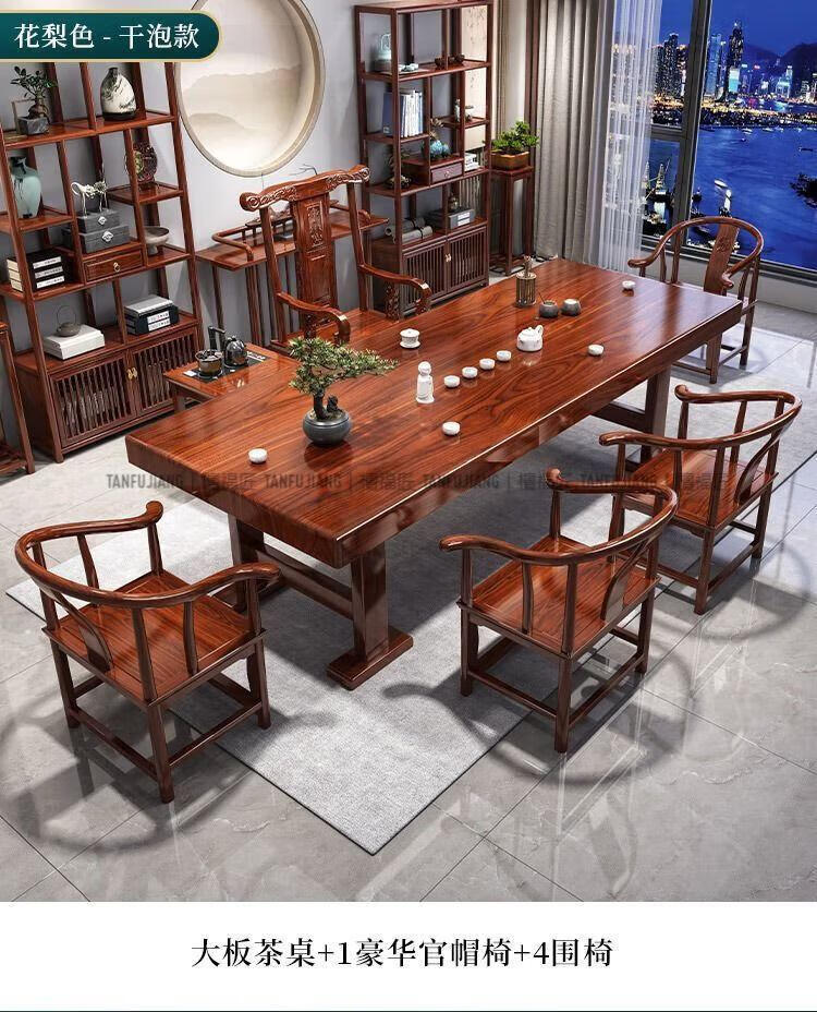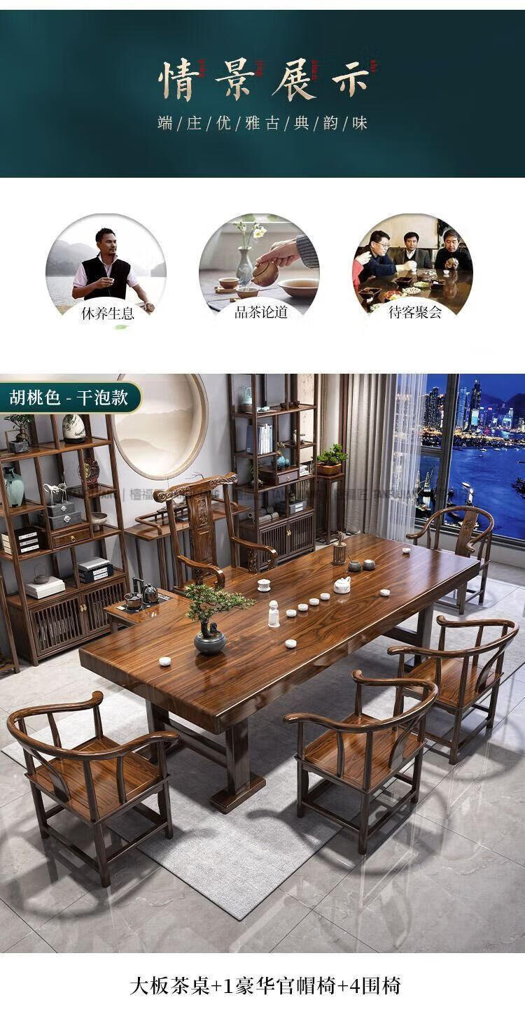 梵盛林2026新款实木茶桌大板茶桌椅组合一整套茶台一体全自动茶具接待室 石盘款+电磁炉 加厚1.6米桌+1围椅+4月牙椅
