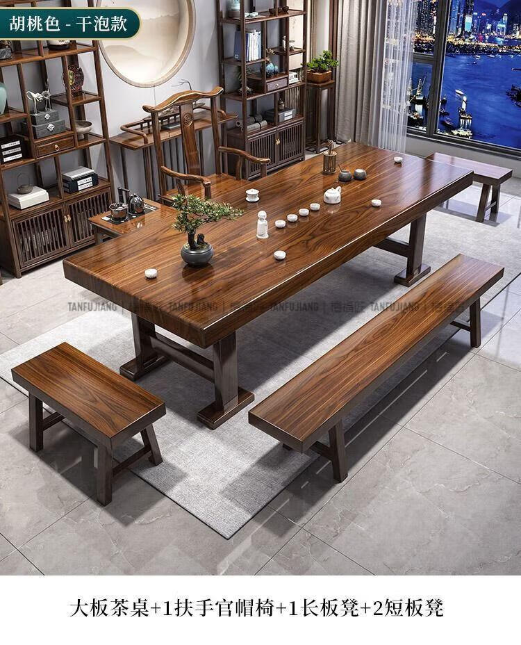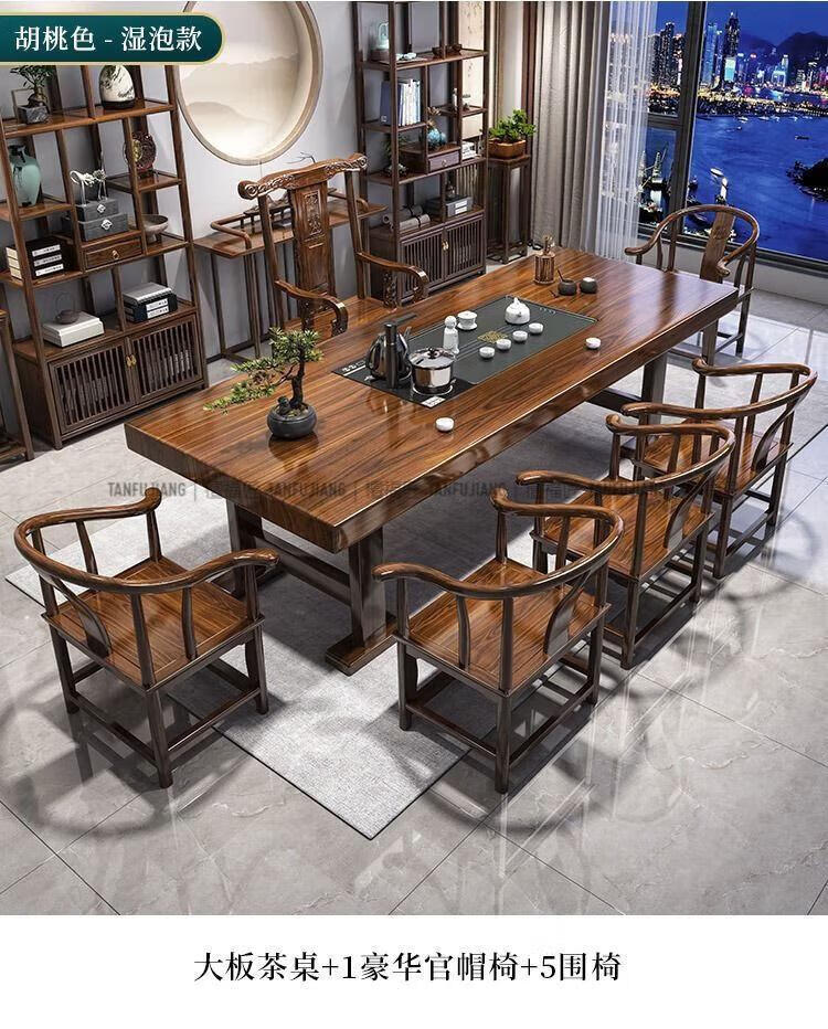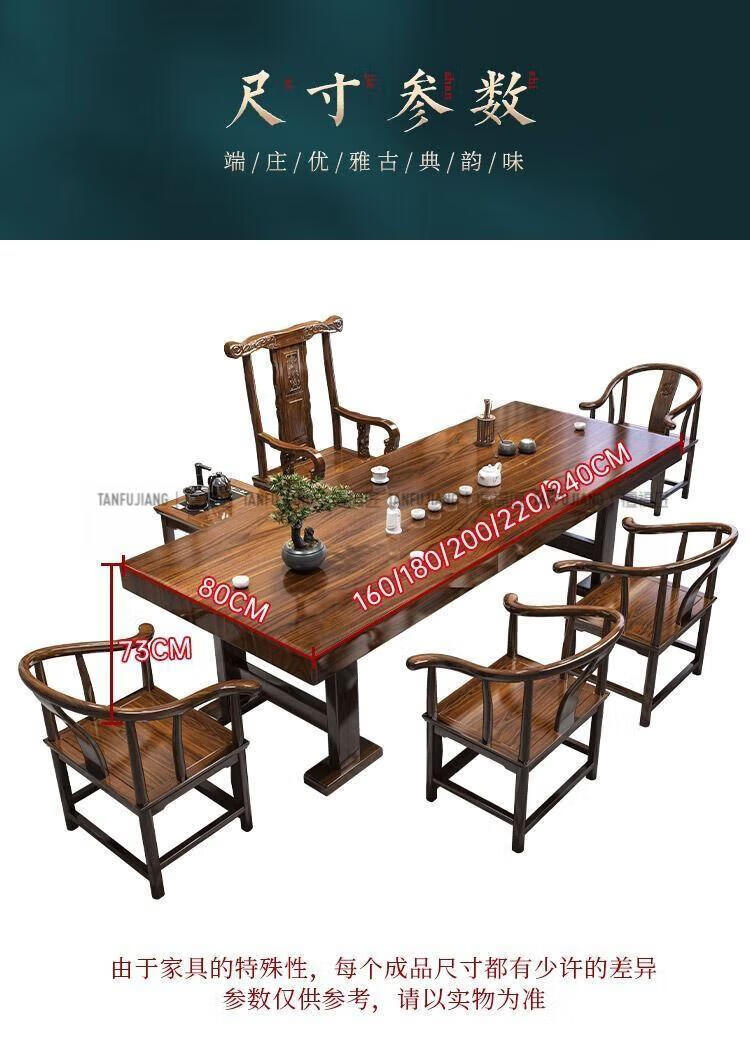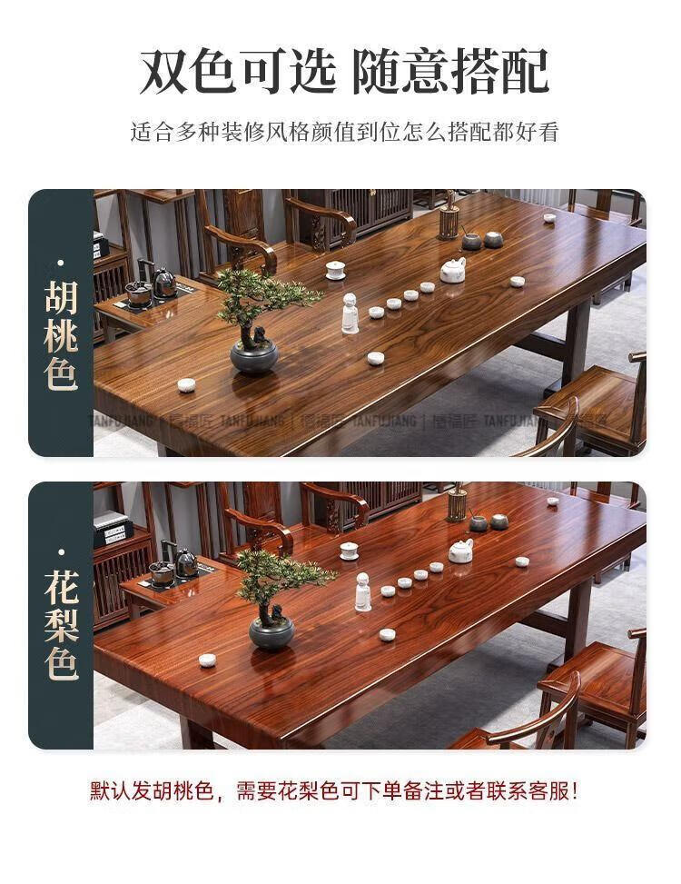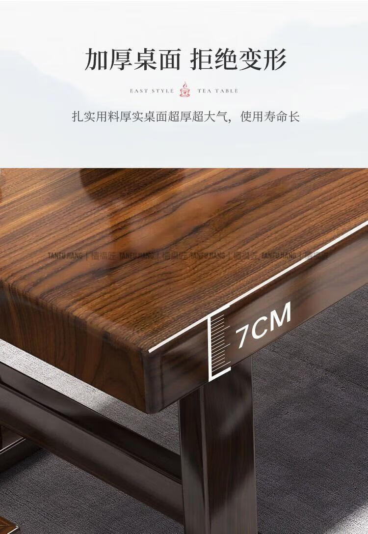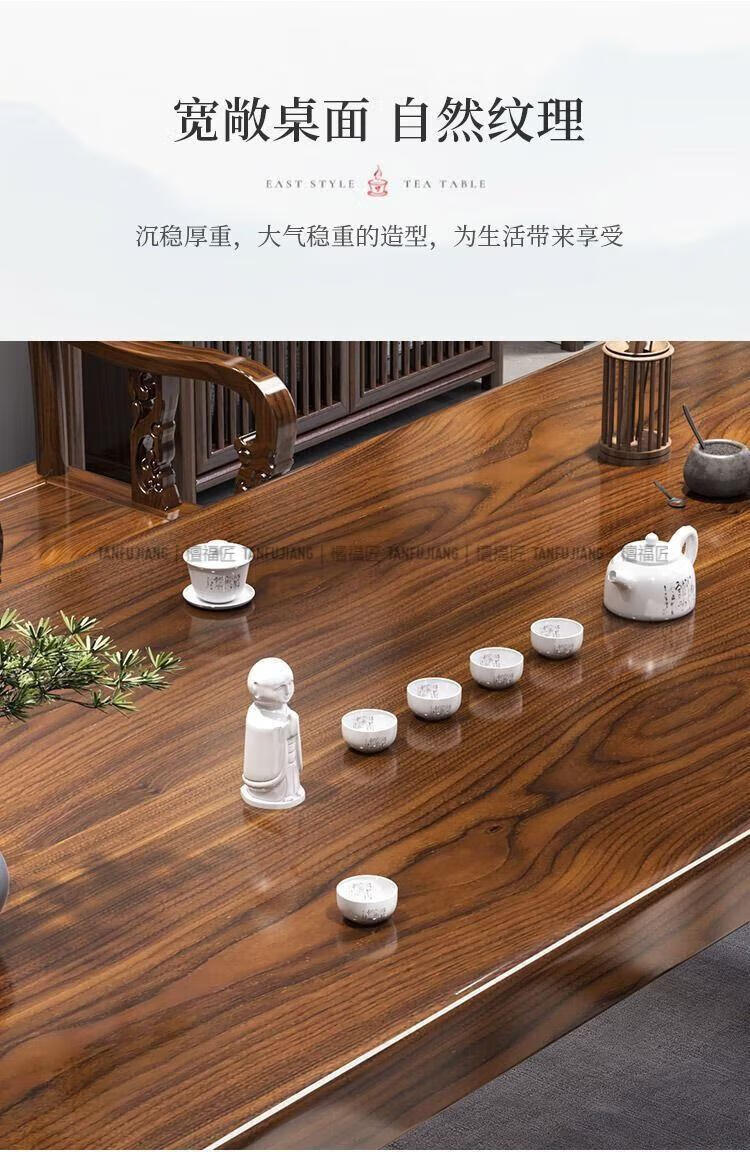 梵盛林2026新款实木茶桌大板茶桌椅组合一整套茶台一体全自动茶具接待室 石盘款+电磁炉 加厚1.6米桌+1围椅+4月牙椅