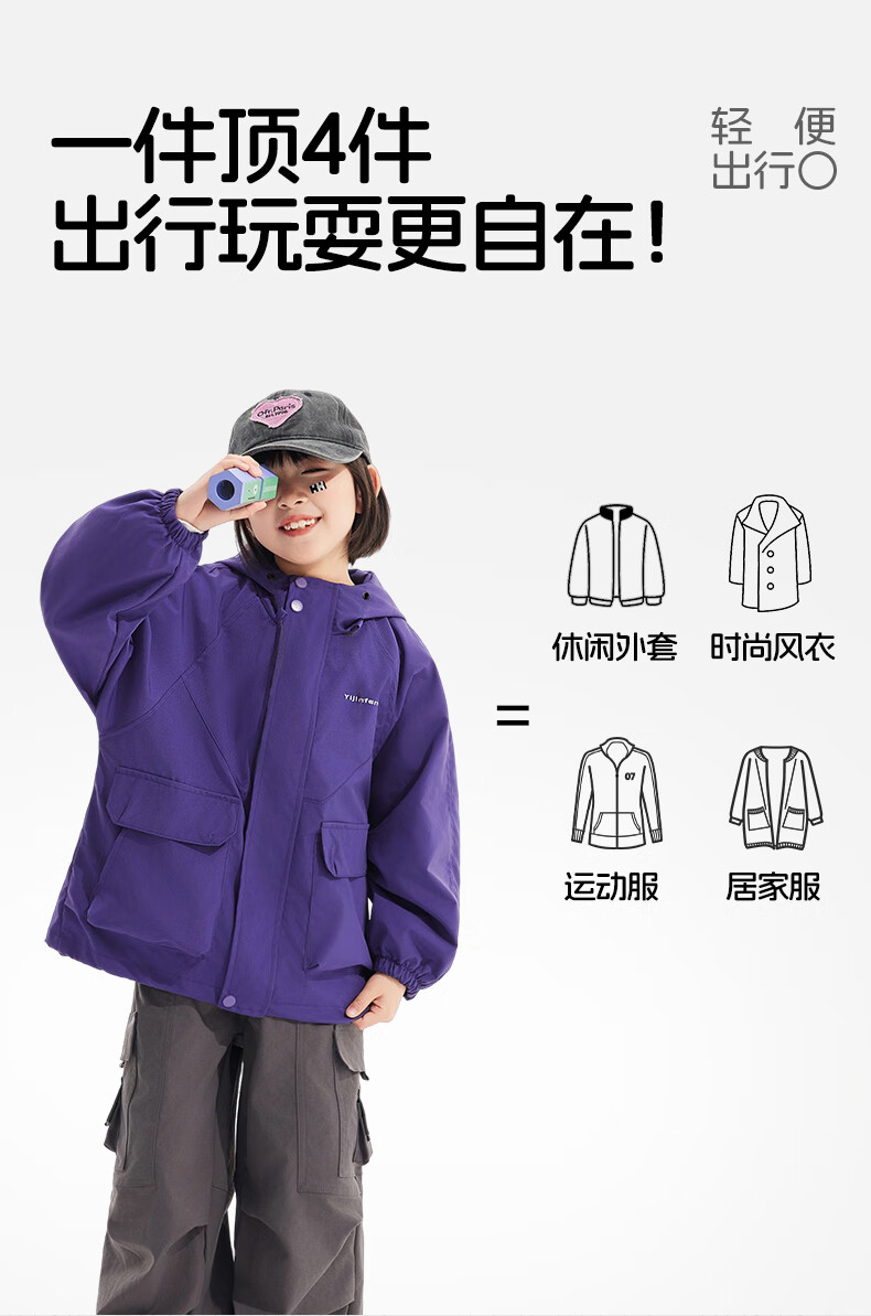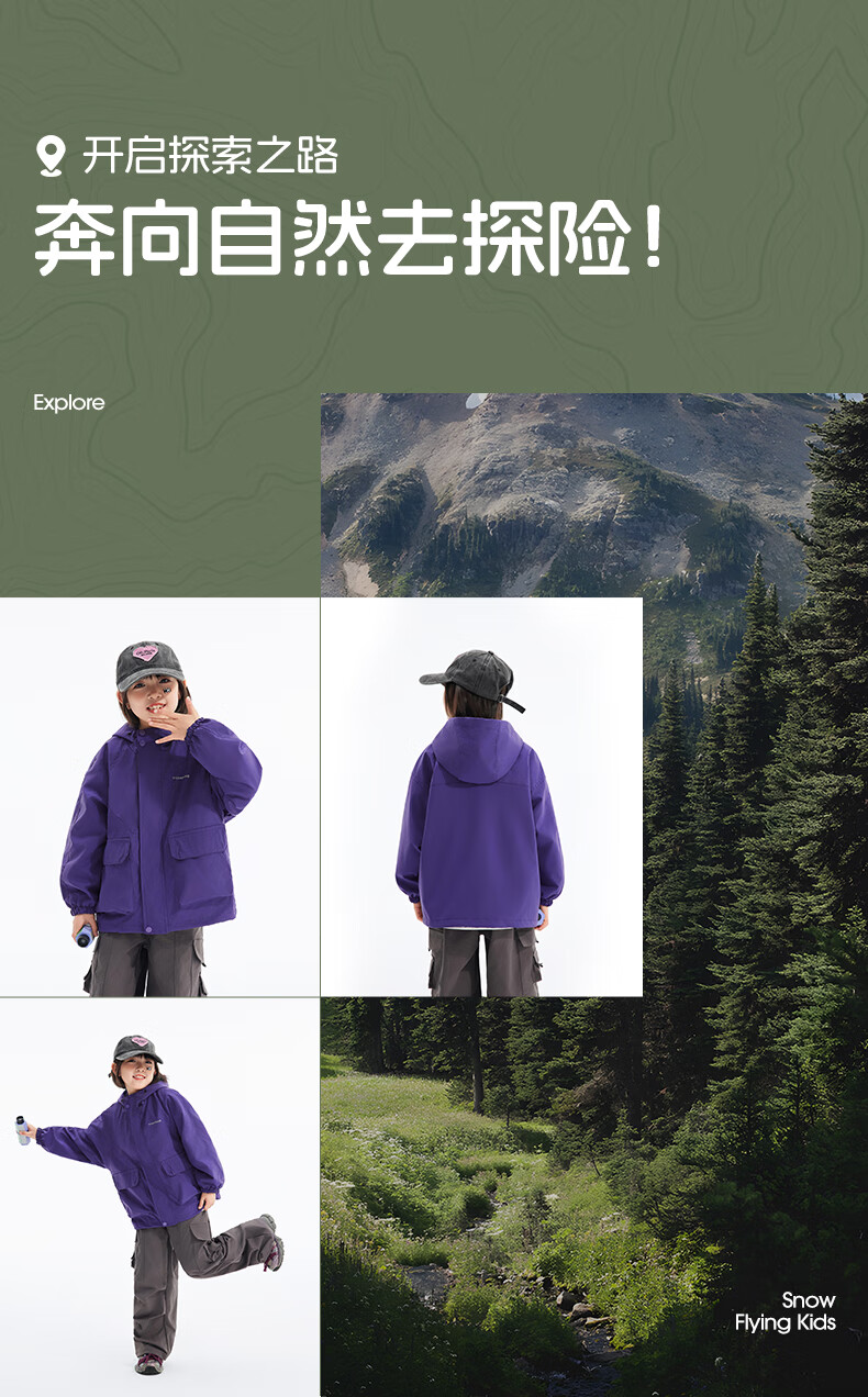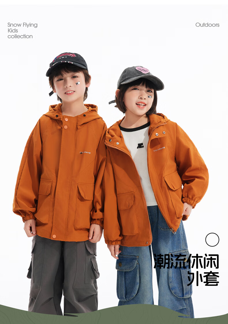 雪中飞2026春新童装外套中大童户外运动服女童外套防风男童夹克外套 棕褐色 160