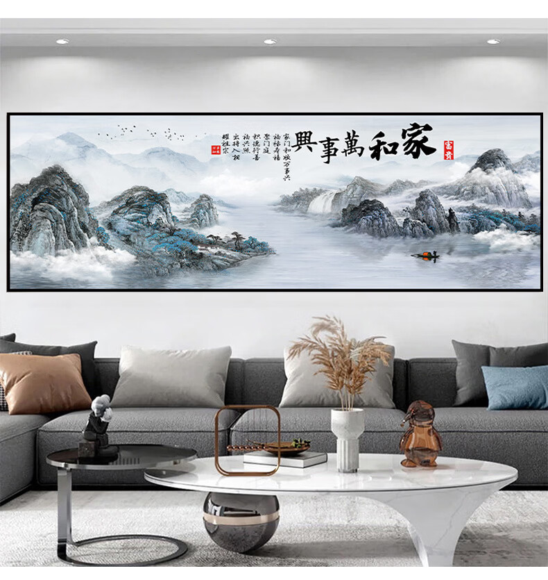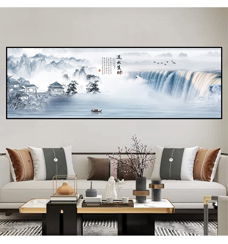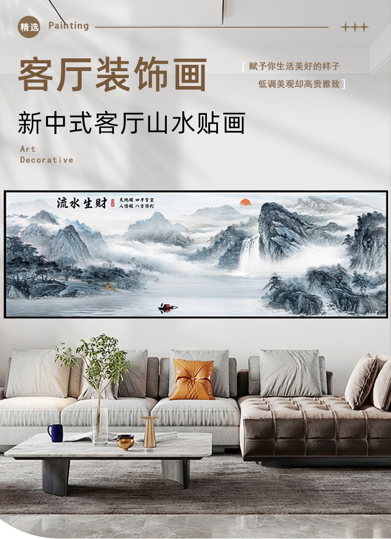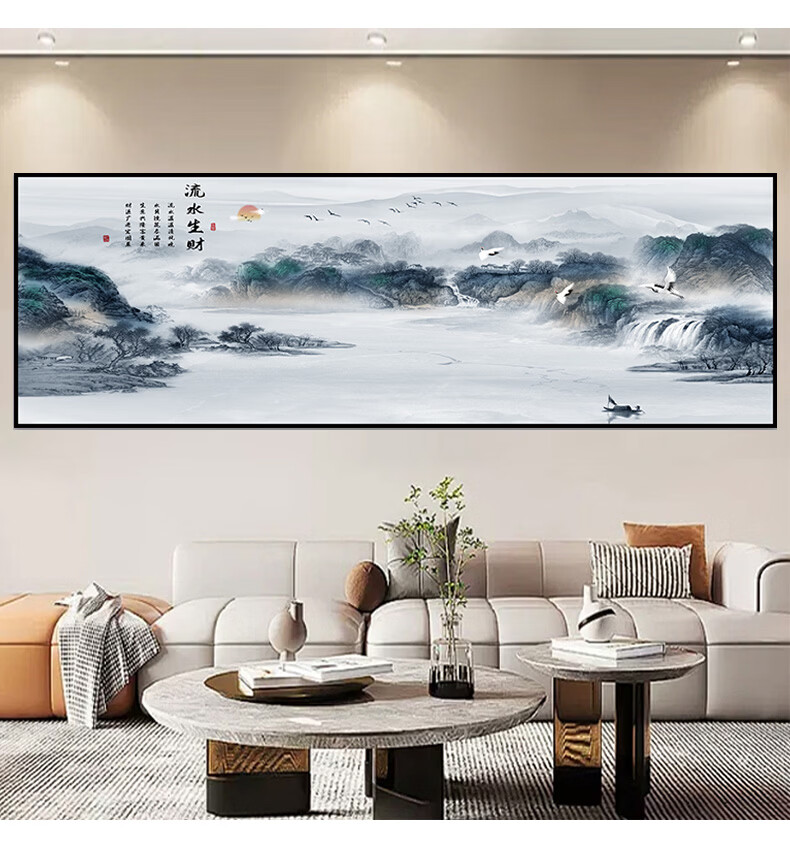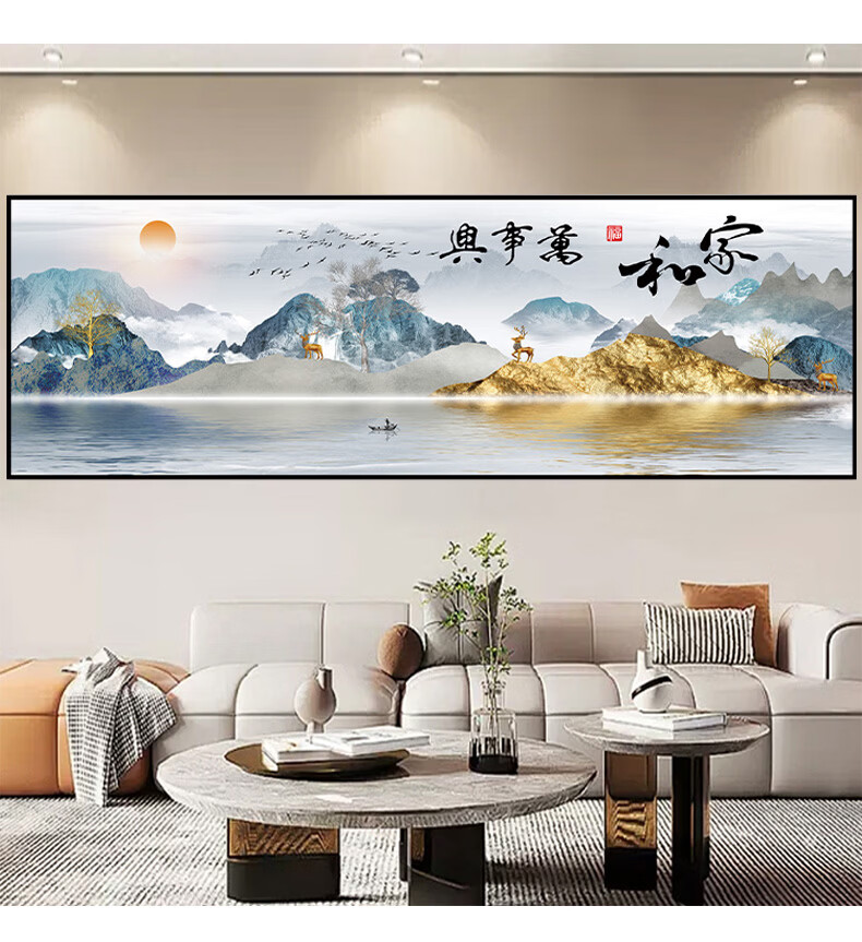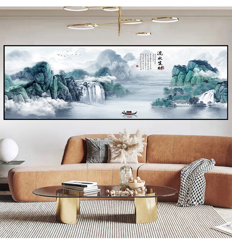 笔耕东哥同款靠山图办公室山水画画客厅装饰字画画风景挂画画沙发背景 旭日东升3 定制联系客服