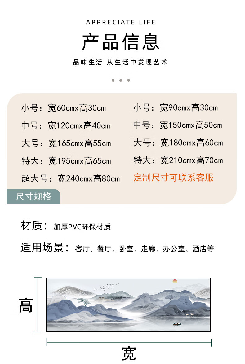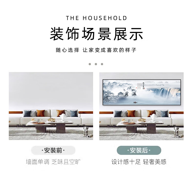 客厅装饰画沙发背景墙贴画现代简约风景山水画自粘壁画办公室贴纸 八骏全图 宽240cm-高80cm 打印边框