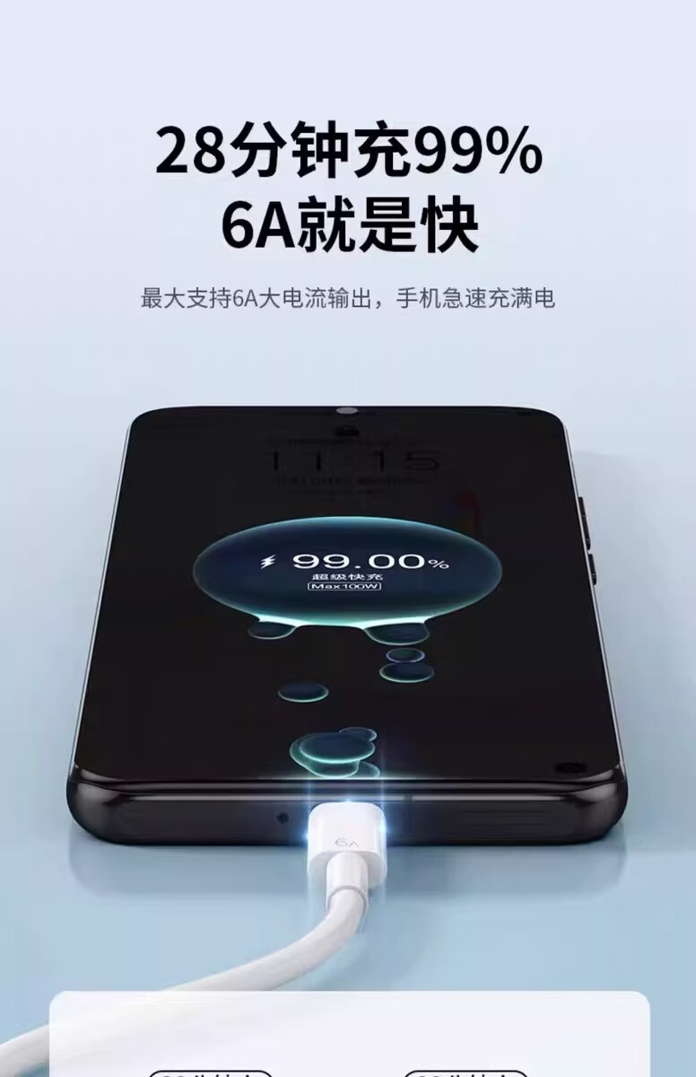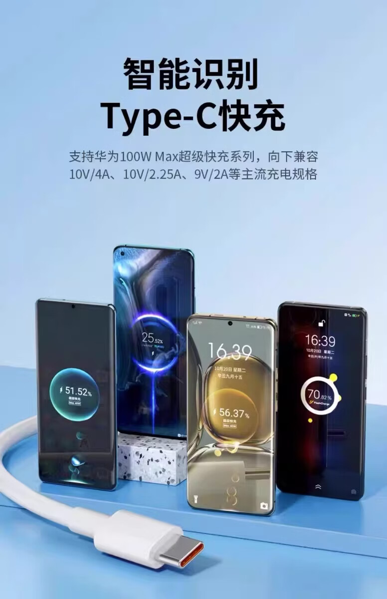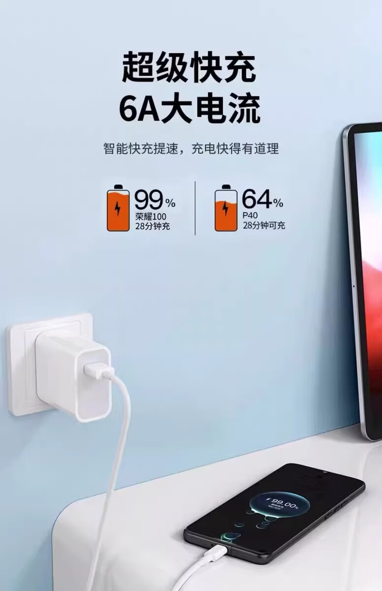 适用华为荣耀100W超级快充数据线mate40 50 60pro Pura70 80utra手机充电线闪充nova9 10 6A数据线 【2米线+2米线】 同长2条装 100W超级快充