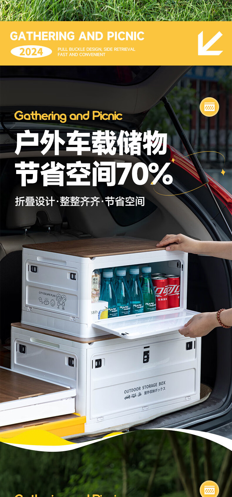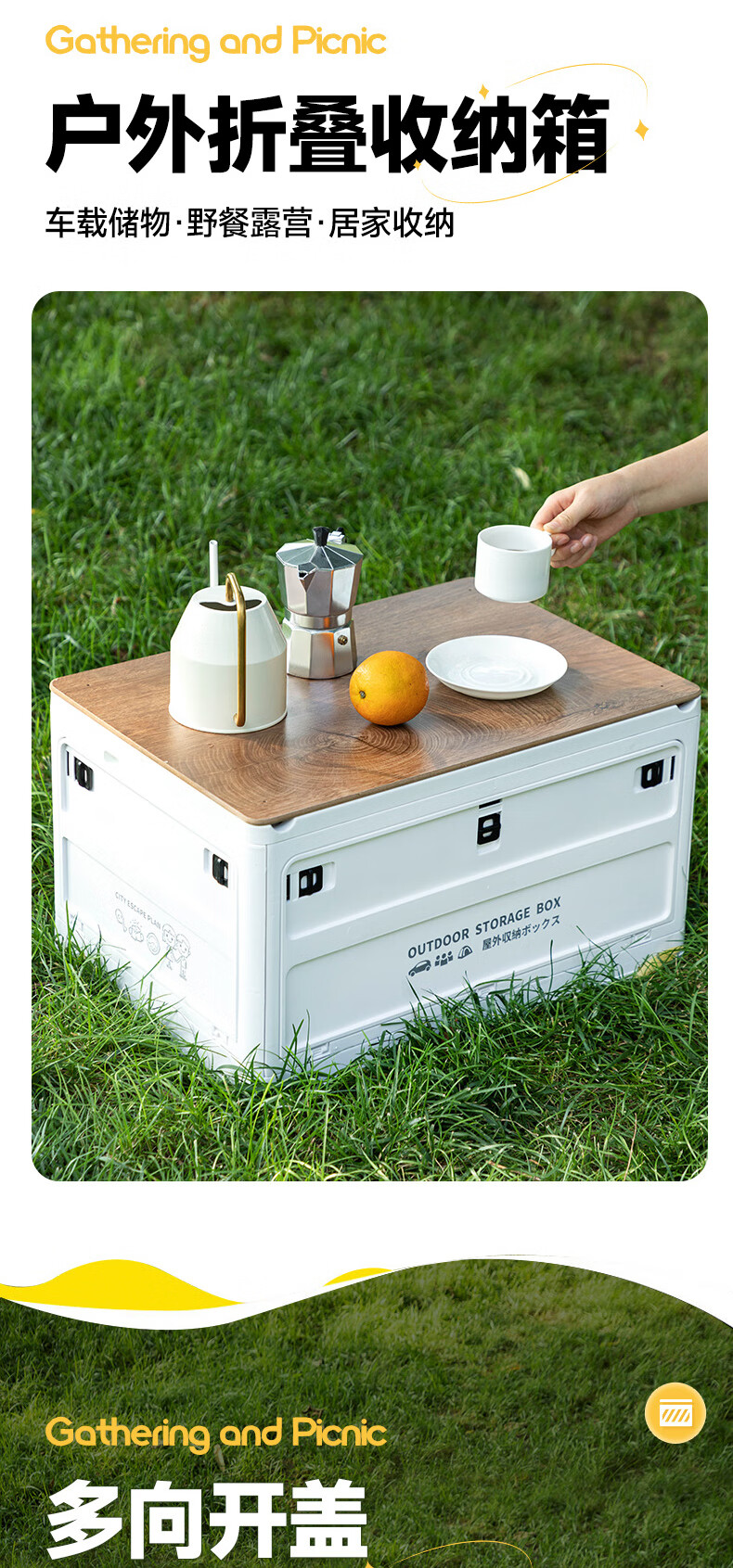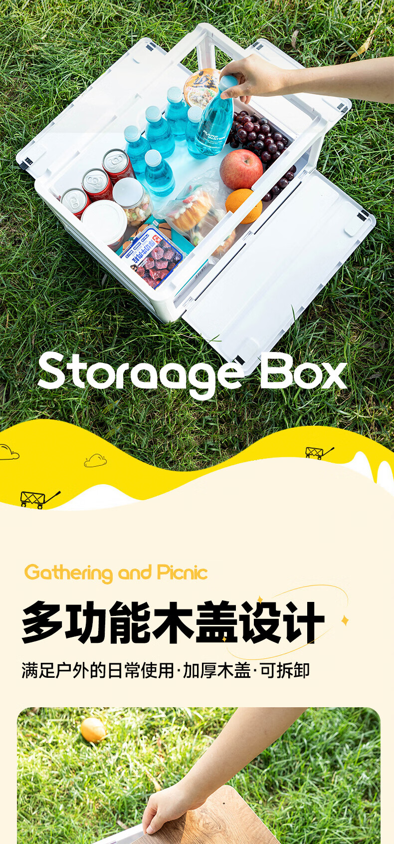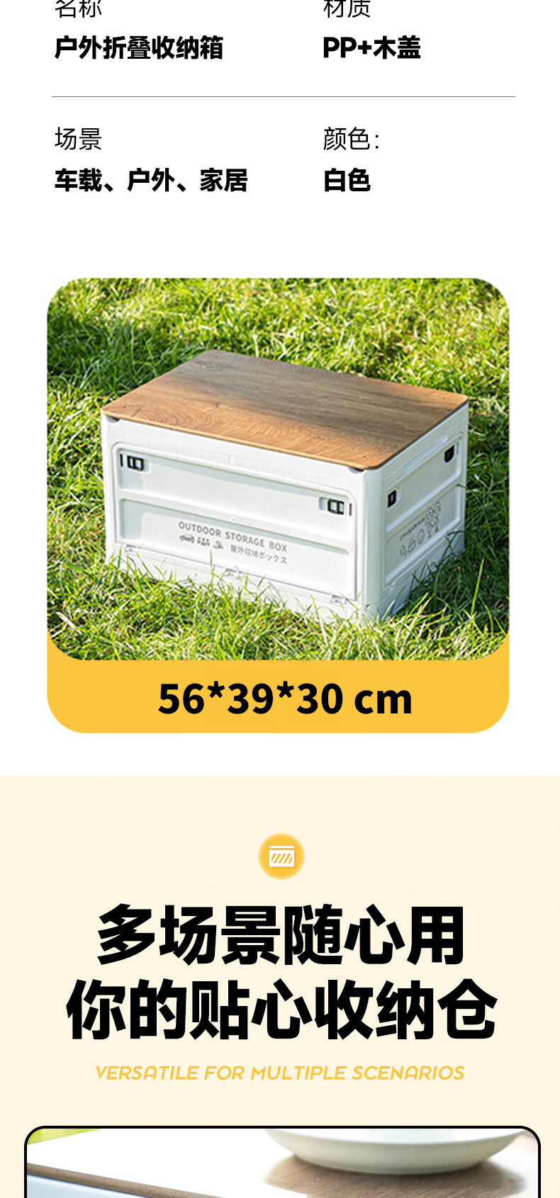 铂呐苓收纳箱露营后备箱储物箱户外折叠汽车载野餐整理床底木盖杂物箱 65L加厚大号 56*30*39cm 折叠带木板 户外折叠箱【大号-白色】 1个