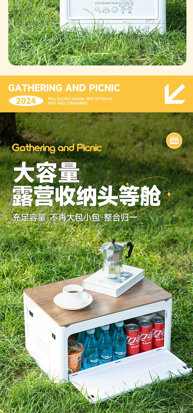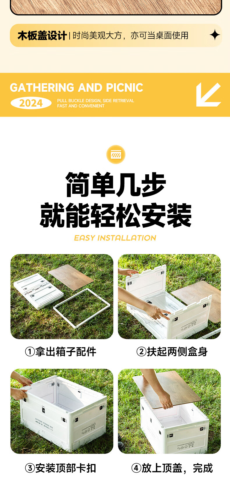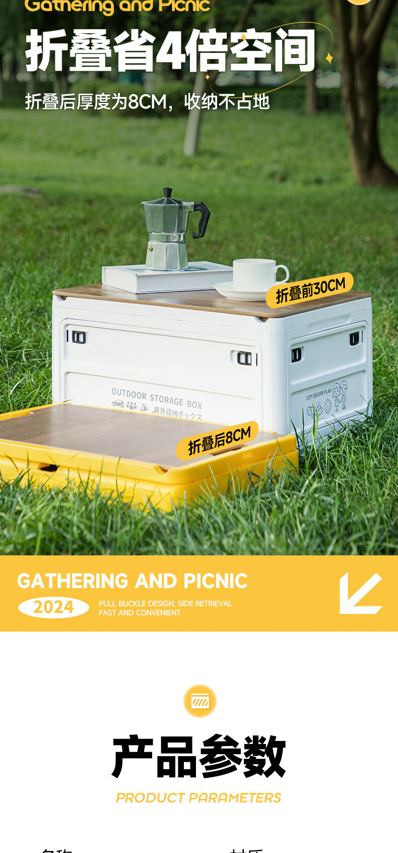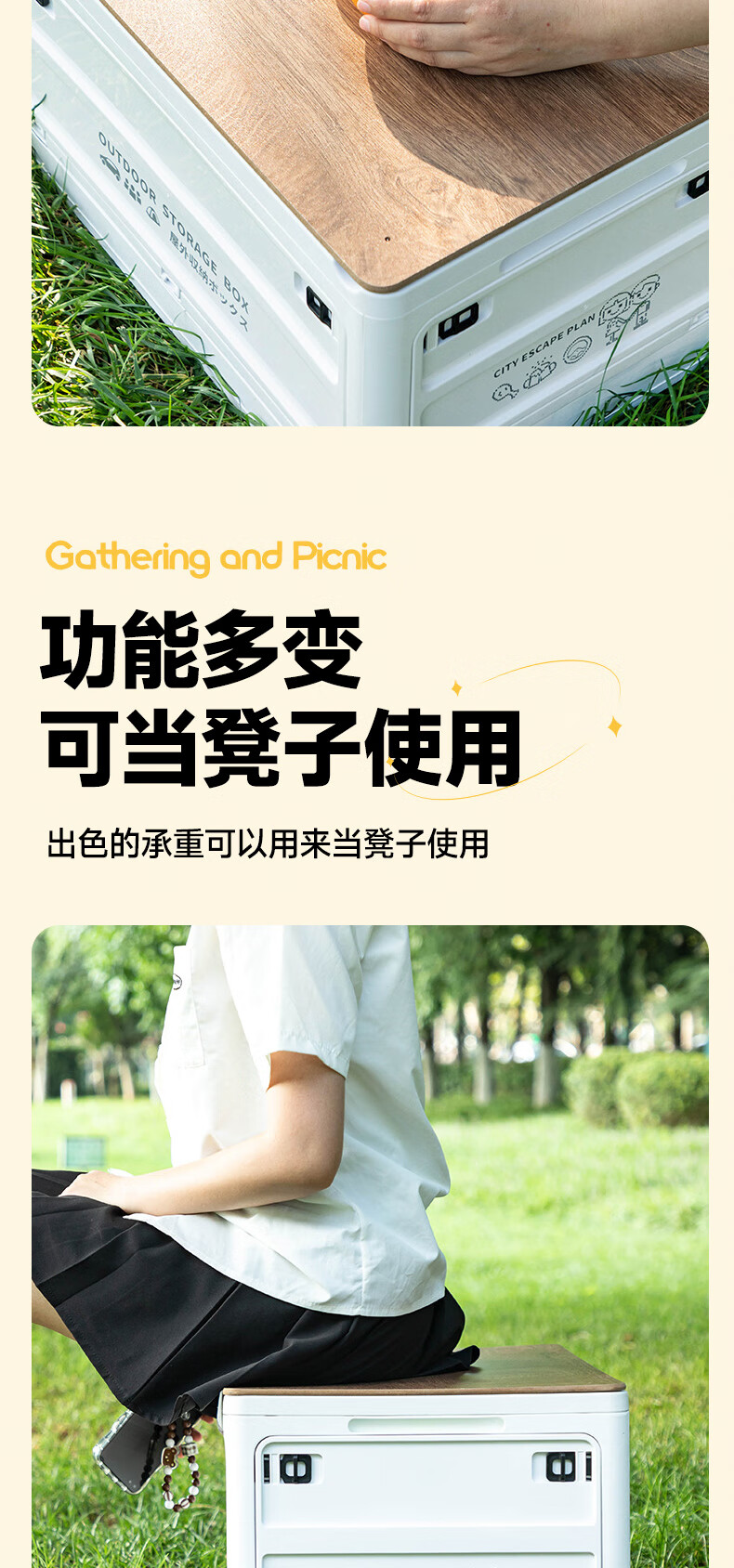 铂呐苓收纳箱露营后备箱储物箱户外折叠汽车载野餐整理床底木盖杂物箱 65L加厚大号 56*30*39cm 折叠带木板 户外折叠箱【大号-白色】 1个