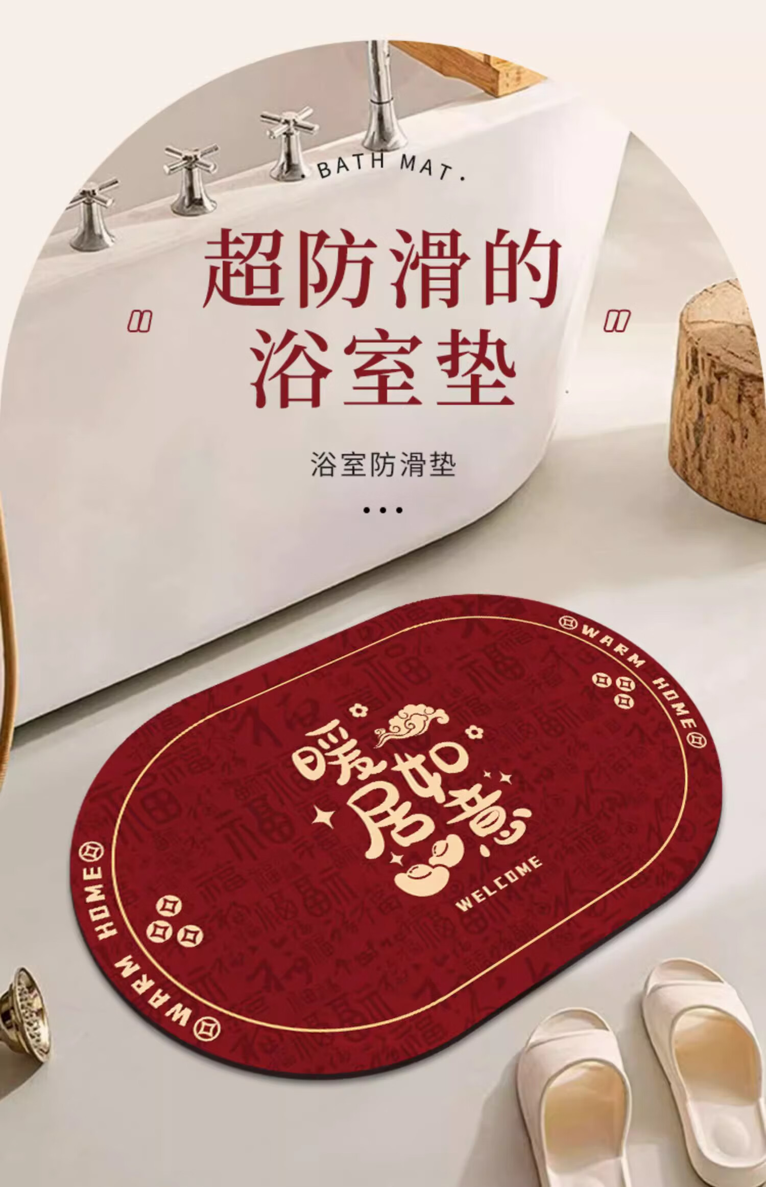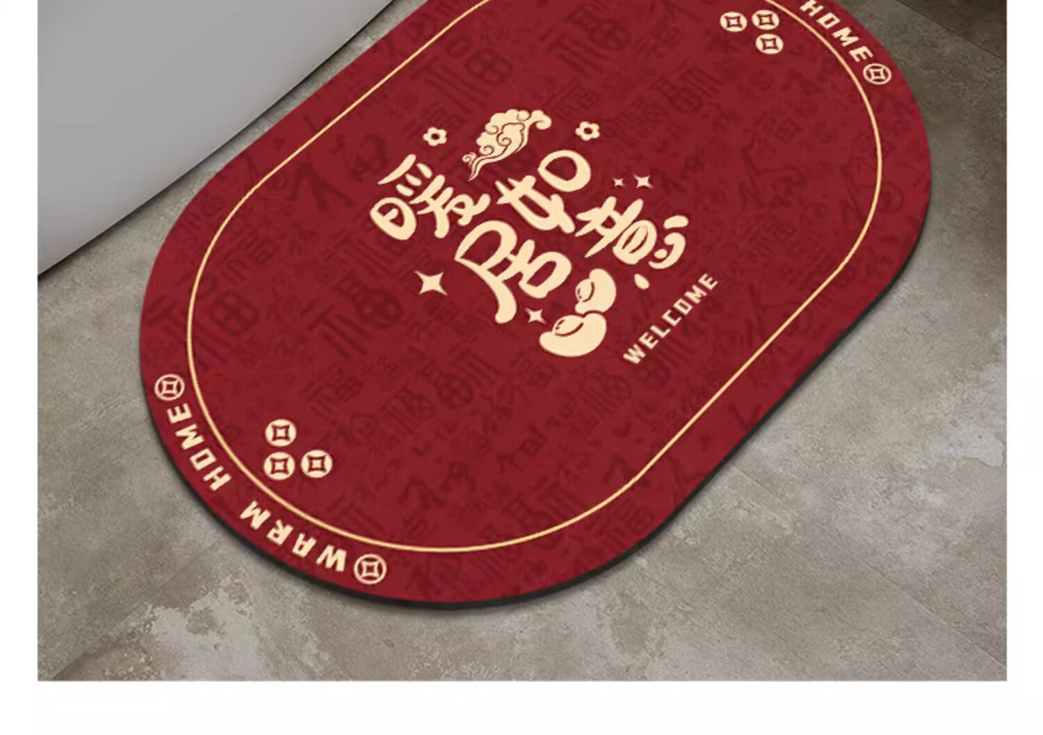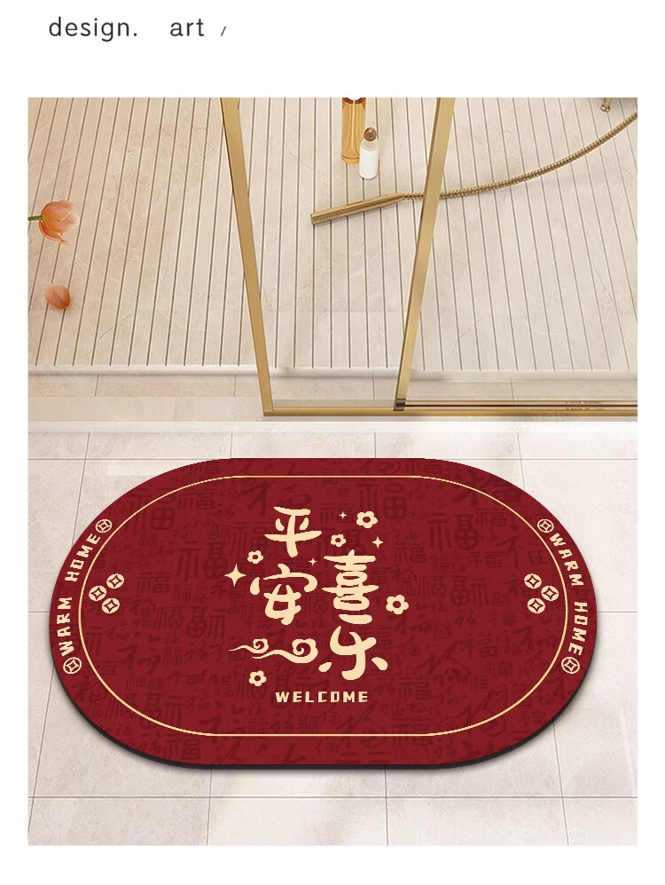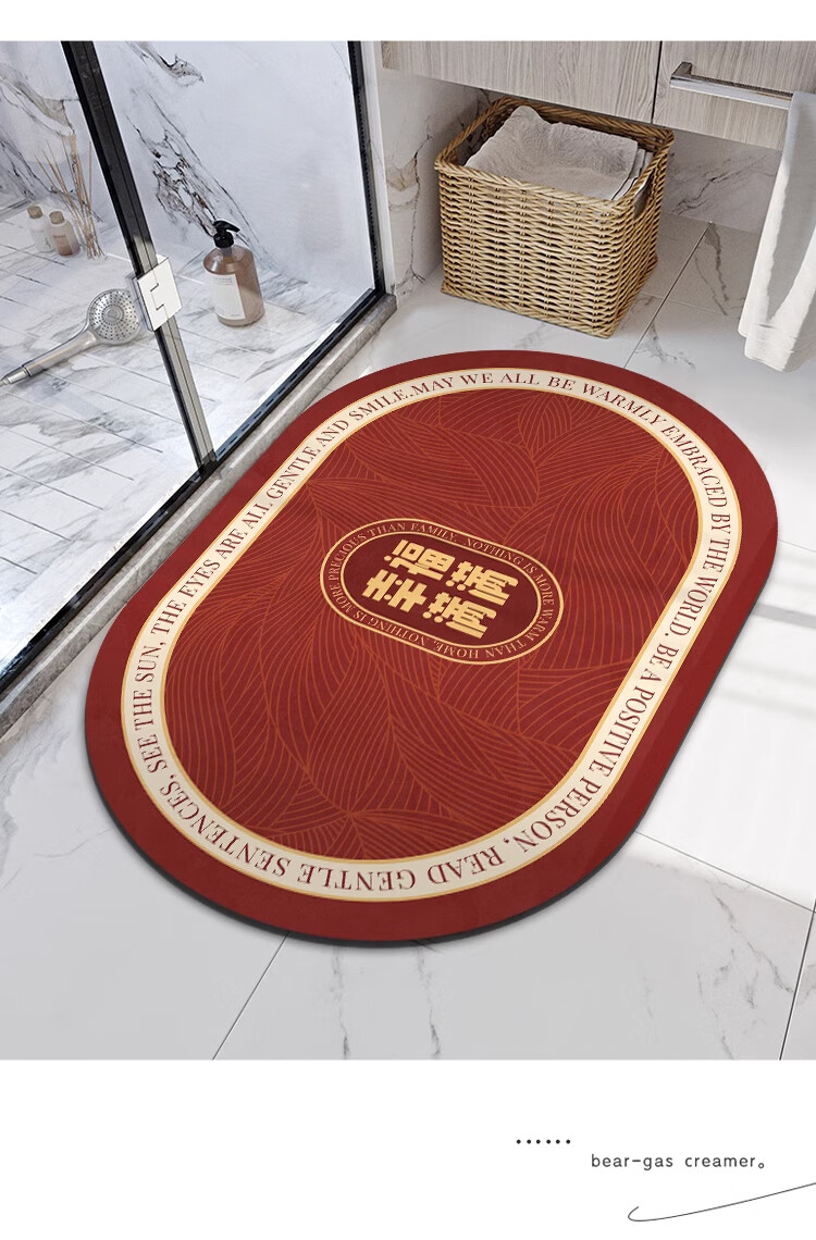 金玉铭川新年红色浴室地垫卫浴厕所洗手间吸水防滑垫家用卫生间进门脚垫子 GZN-暖居如意B 40X60cm【吸水速干防滑】