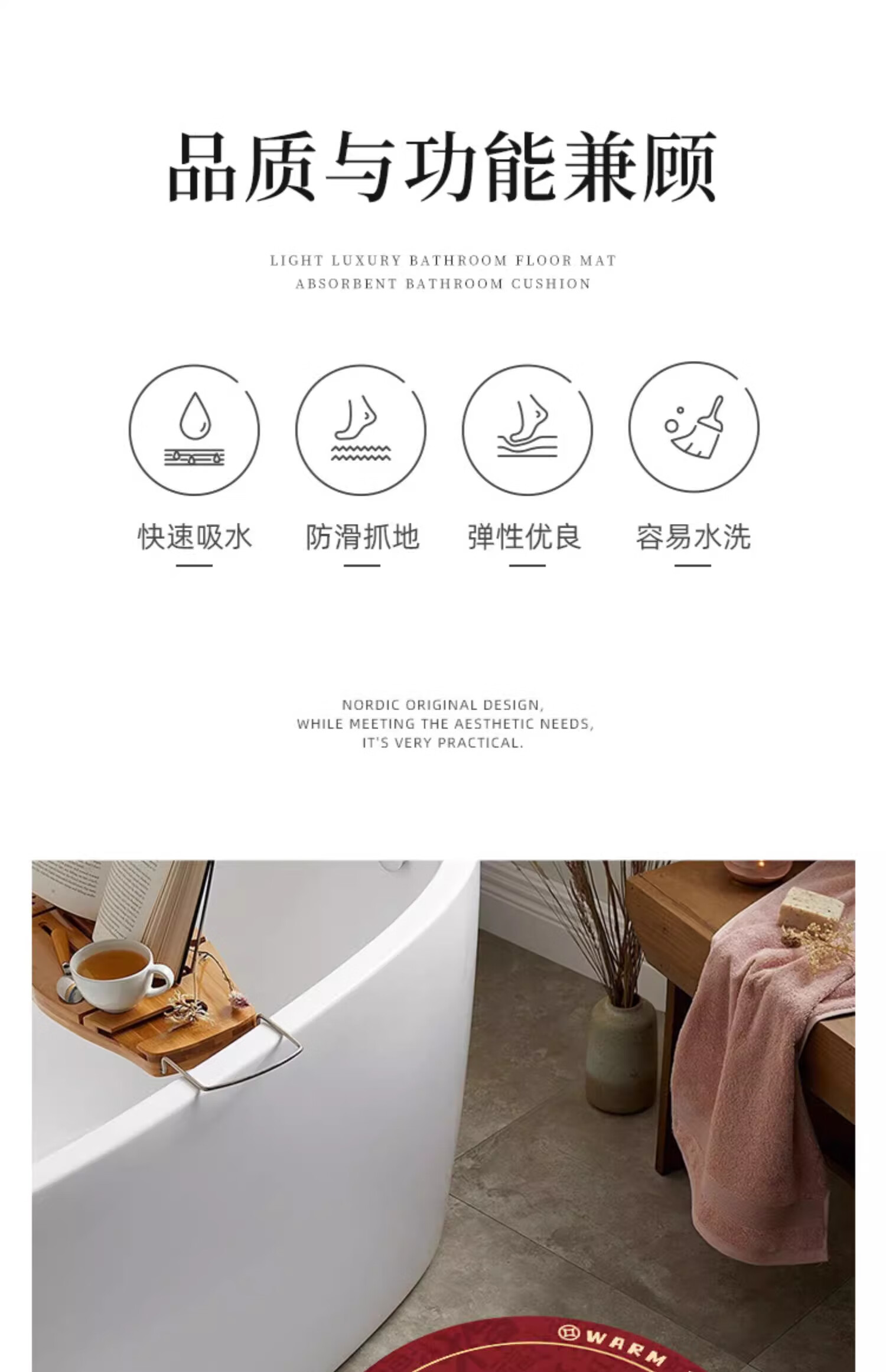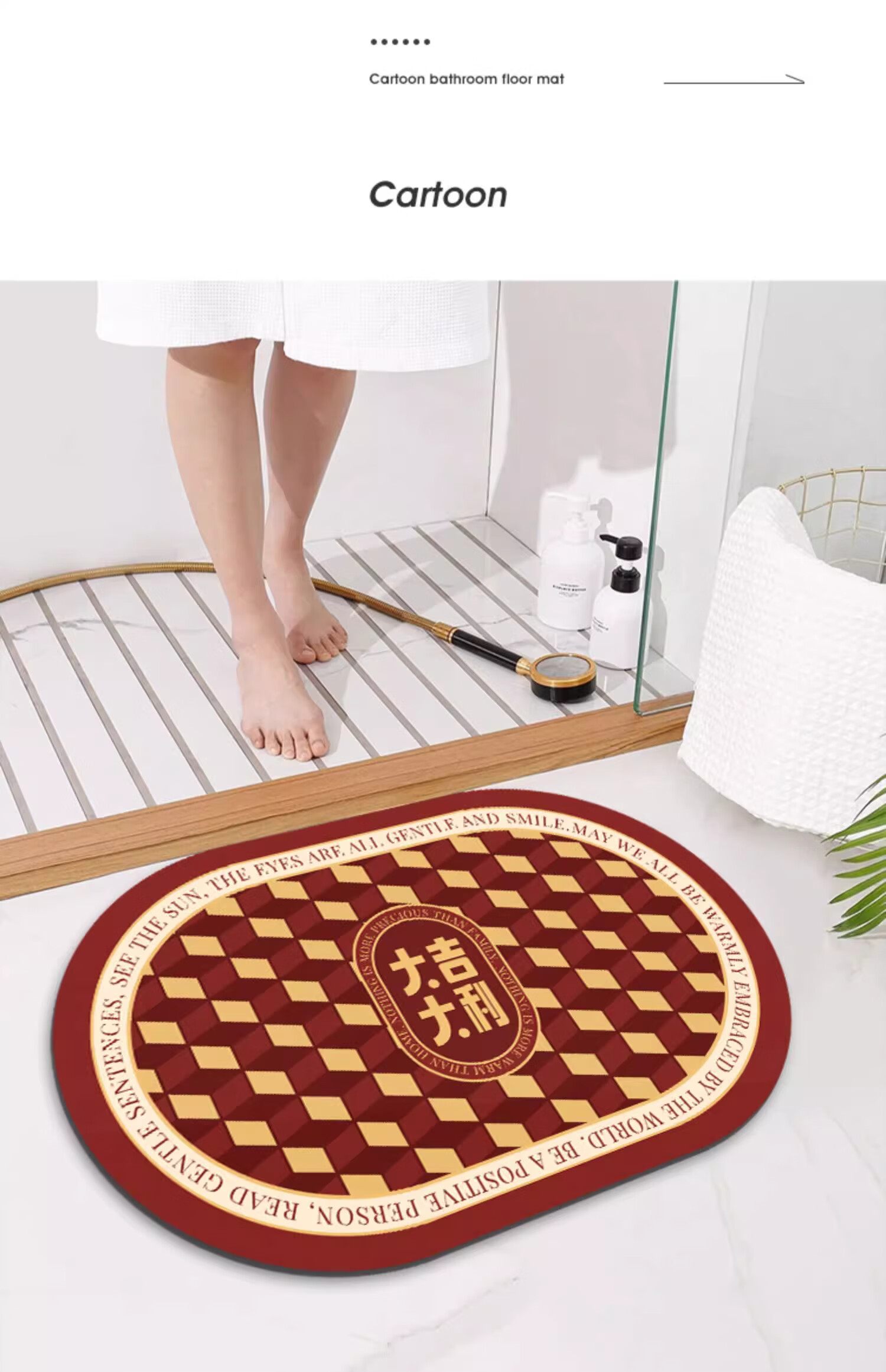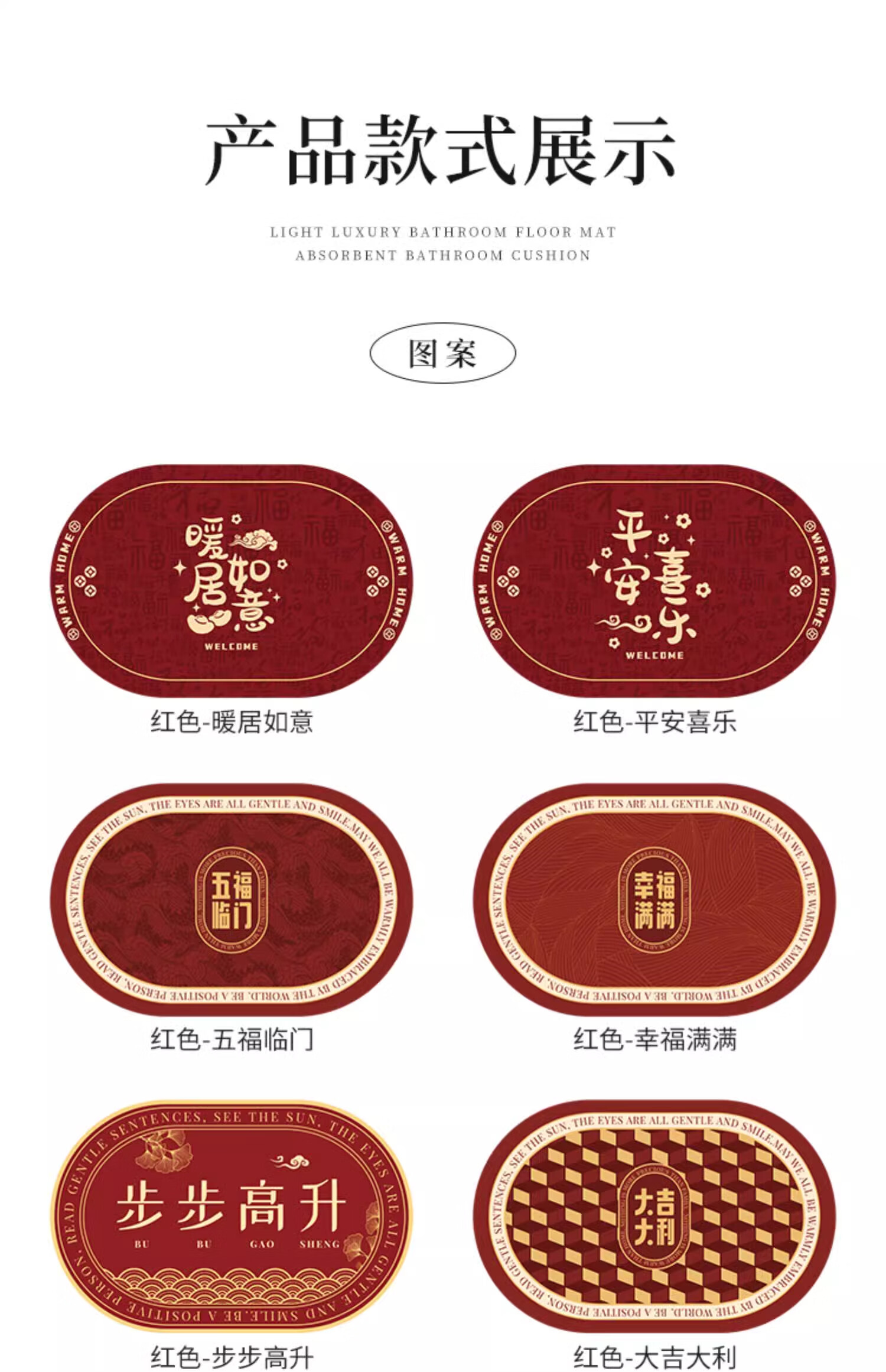 金玉铭川新年红色浴室地垫卫浴厕所洗手间吸水防滑垫家用卫生间进门脚垫子 GZN-暖居如意B 40X60cm【吸水速干防滑】