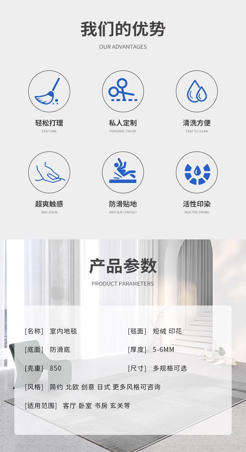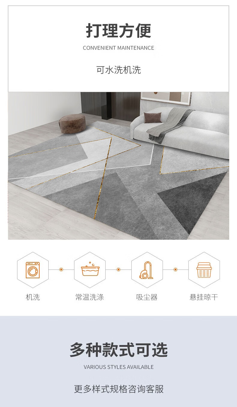 金玉铭川地毯客厅北欧轻奢现代简约卧室茶几沙发毯满铺加厚防滑垫子可定制 FS-T132 120X160 cm【超值床边毯】