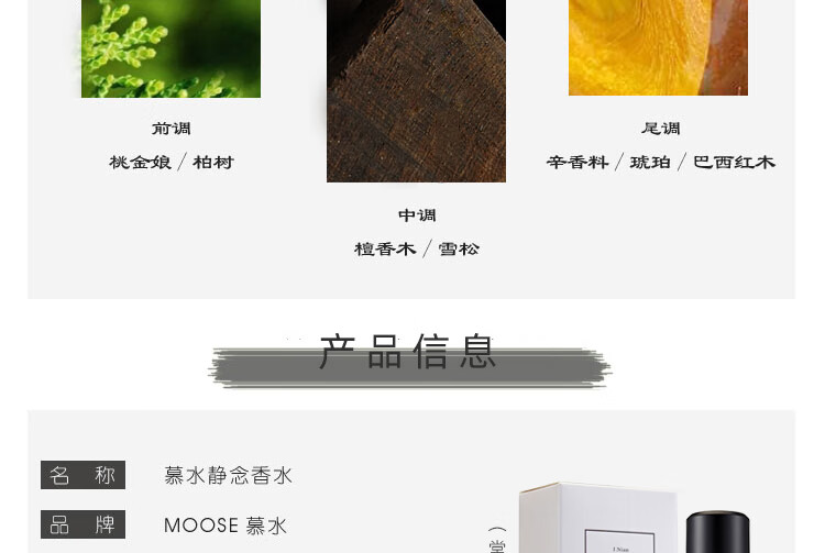 慕水(moose) 檀香味香水男士女士木质香调檀木味香水礼盒装60ml 静念-禅【礼盒装】 60ML