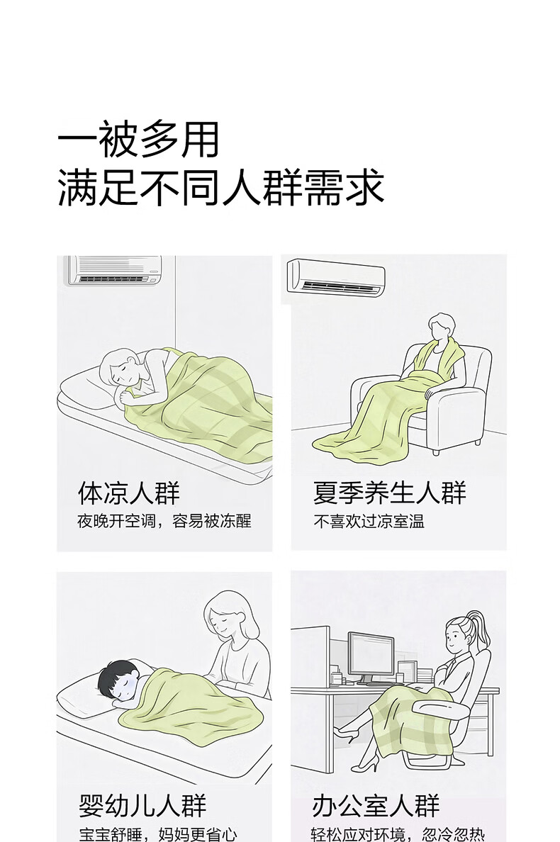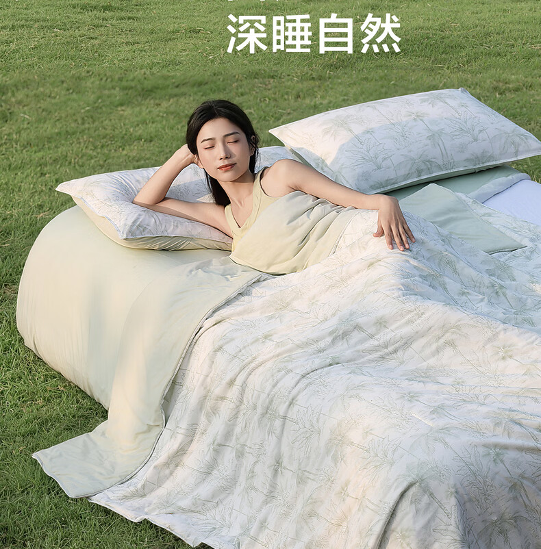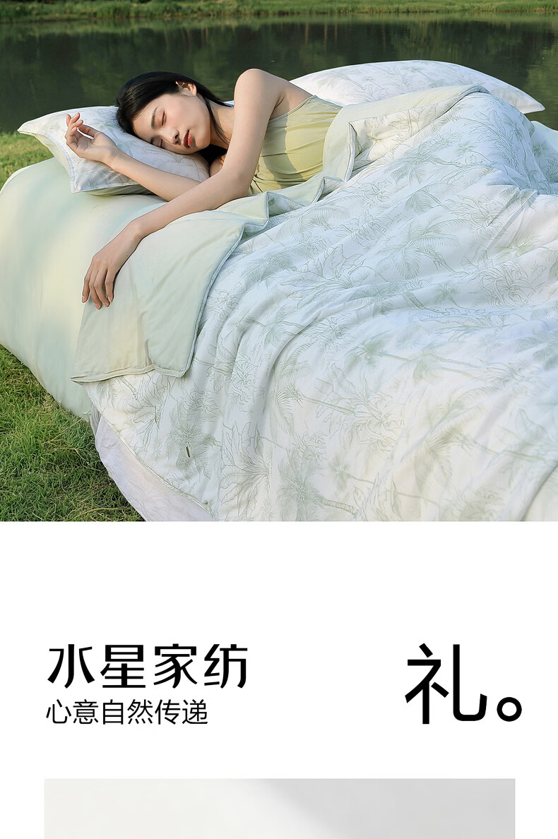 水星家纺被子夏凉被 空调被可机洗凉感天丝棉夏被 A类夏被 植愈舒爽【60S莱赛尔纤维/A类抑菌】绿 200cm*230cm