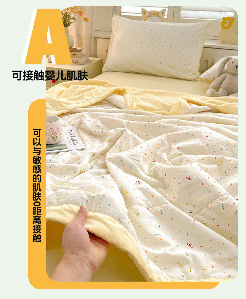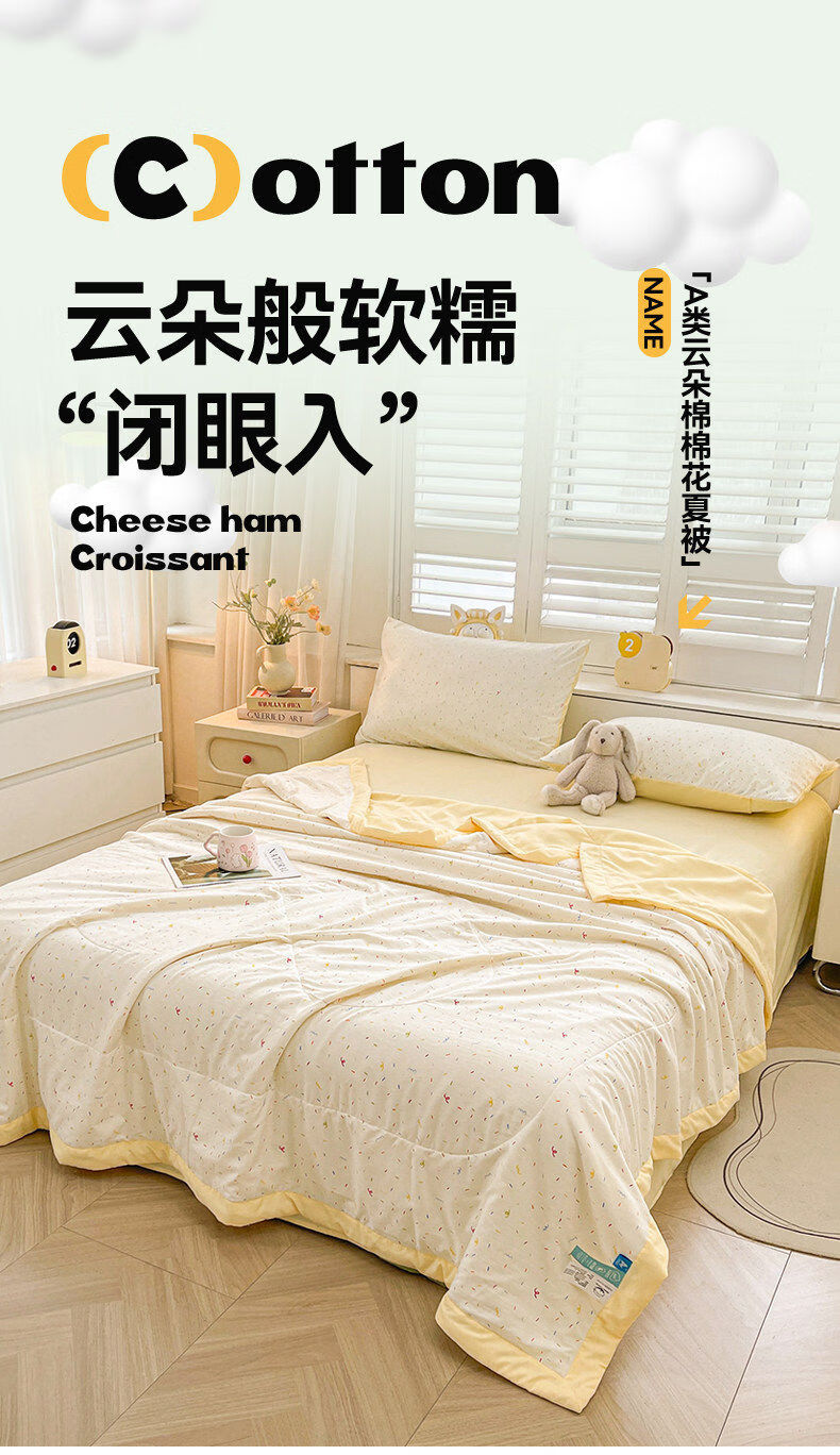 猫人(MiiOW)A类新疆棉花空调被夏凉被子夏季200x230cm双人可机洗裸睡薄款被子 芝士碎 【A类裸睡级+新疆棉填充】 150x200cm-单人夏被
