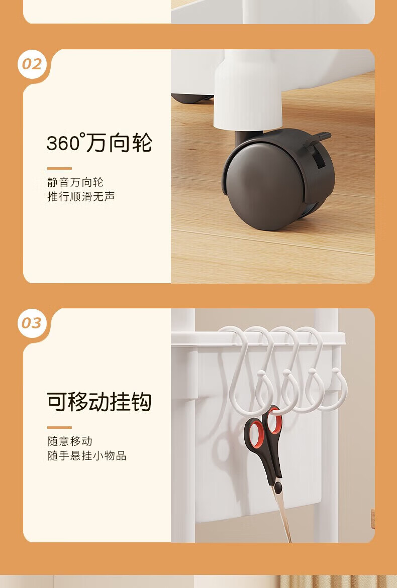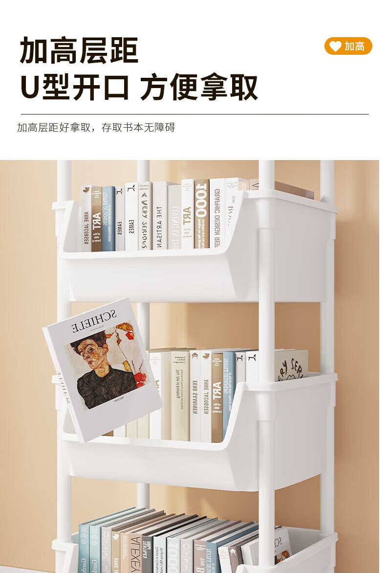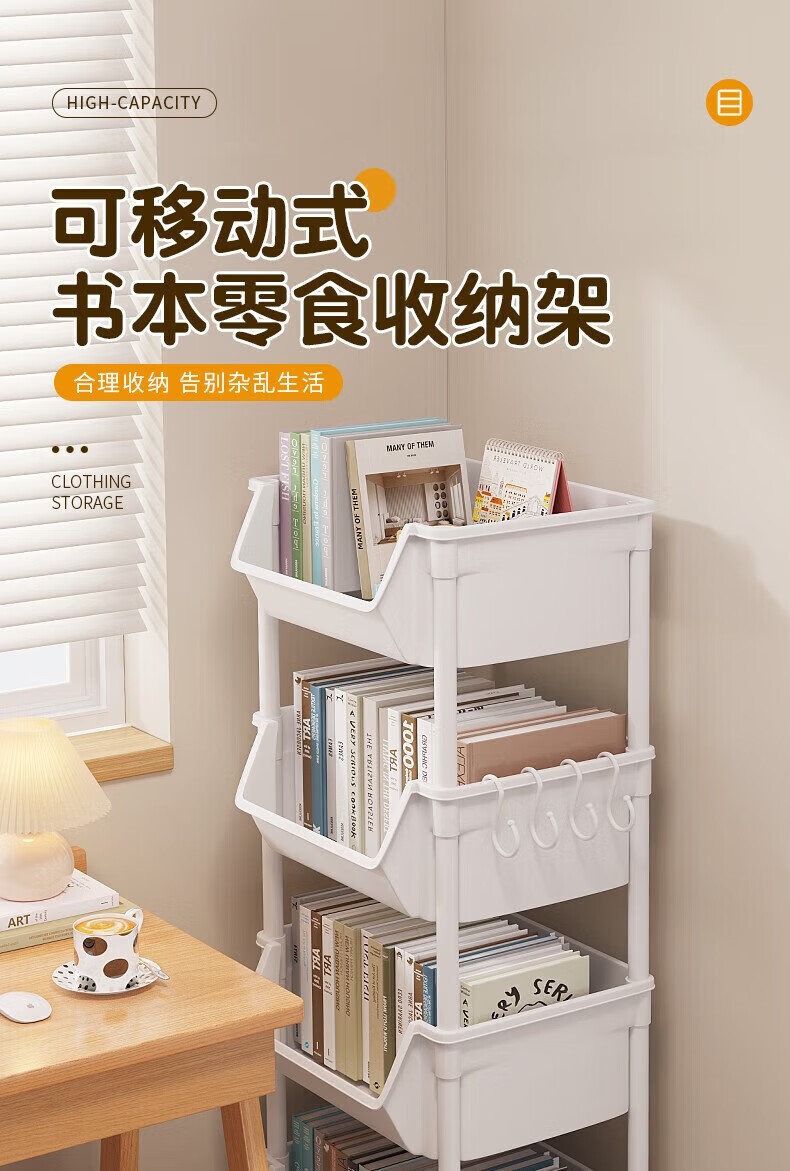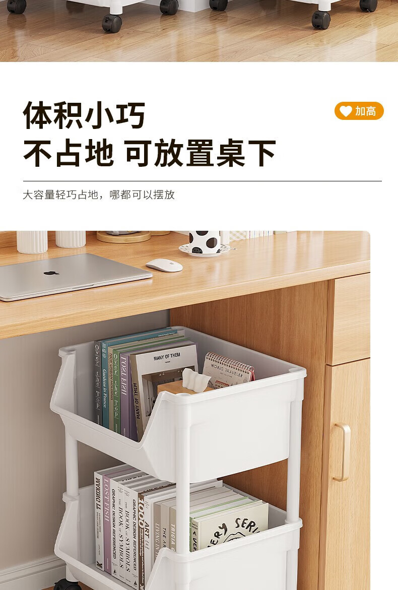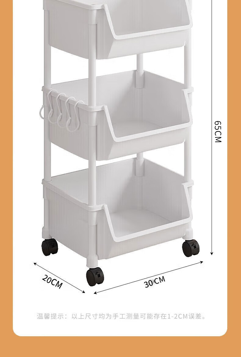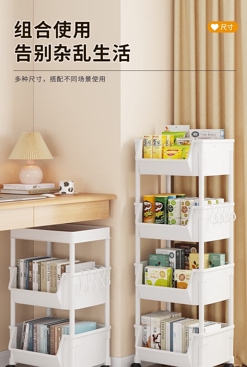 小推车置物架落地浴室移动零食卫生间多层卧室床头多层收纳储物架 3层白-开口【加大加厚款】