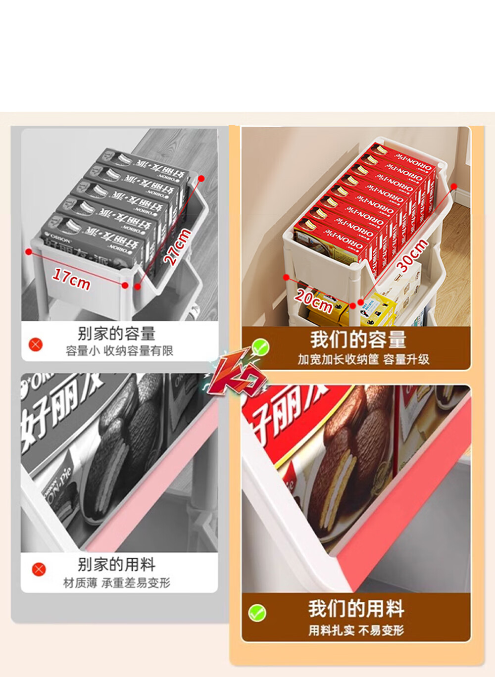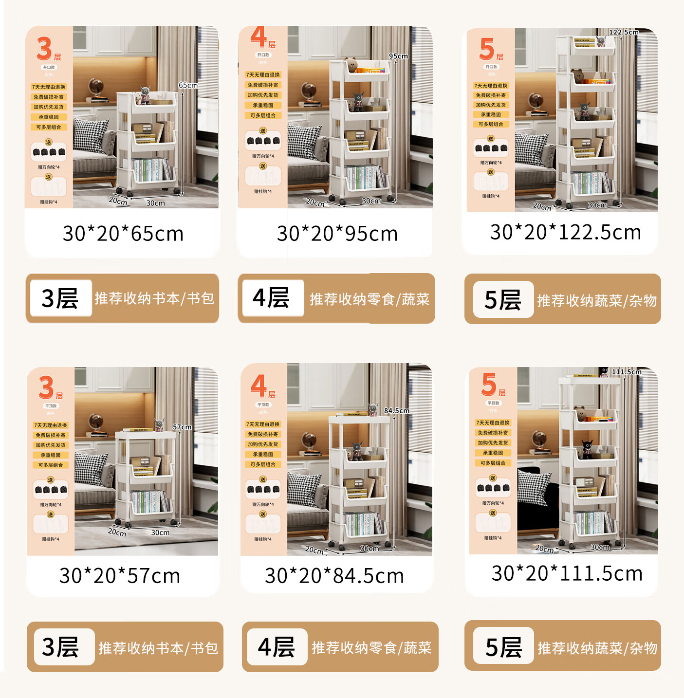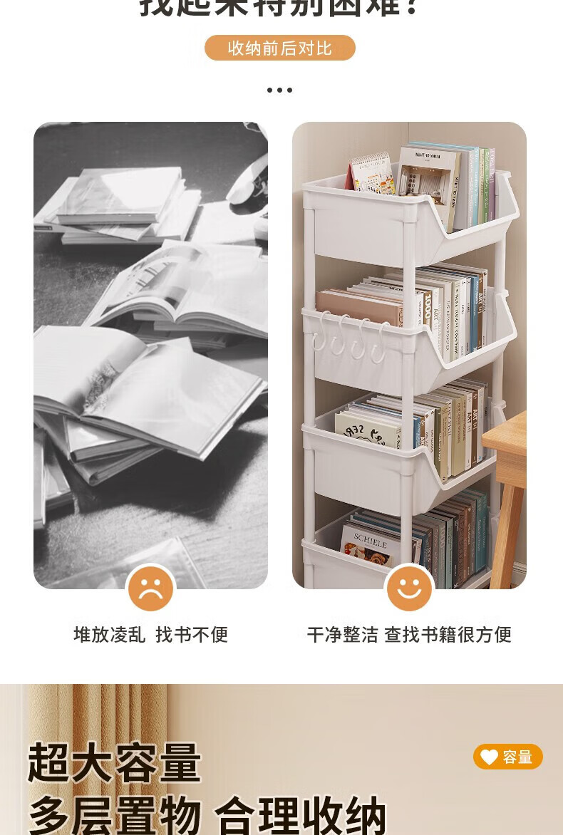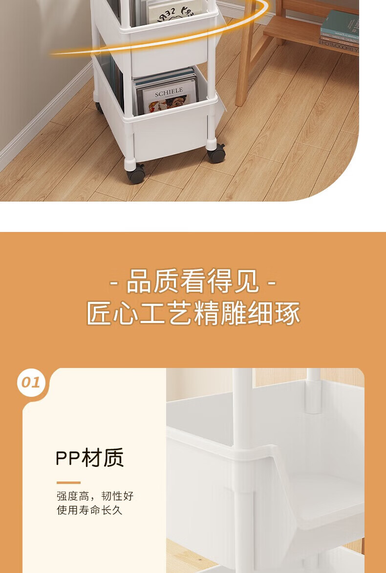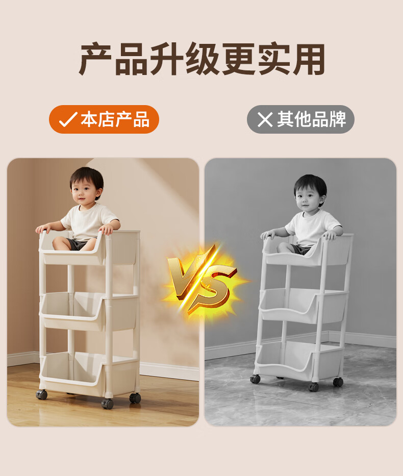 小推车置物架落地浴室移动零食卫生间多层卧室床头多层收纳储物架 3层白-开口【加大加厚款】