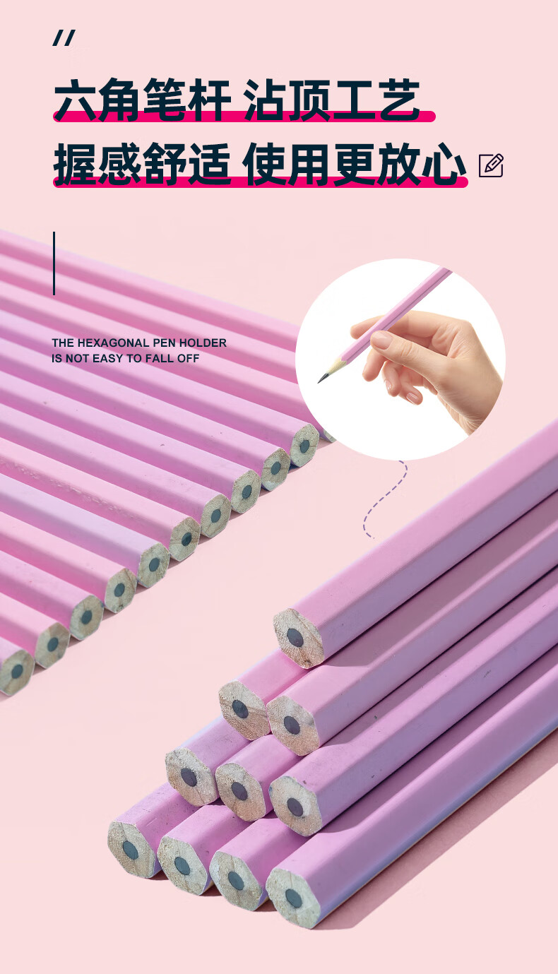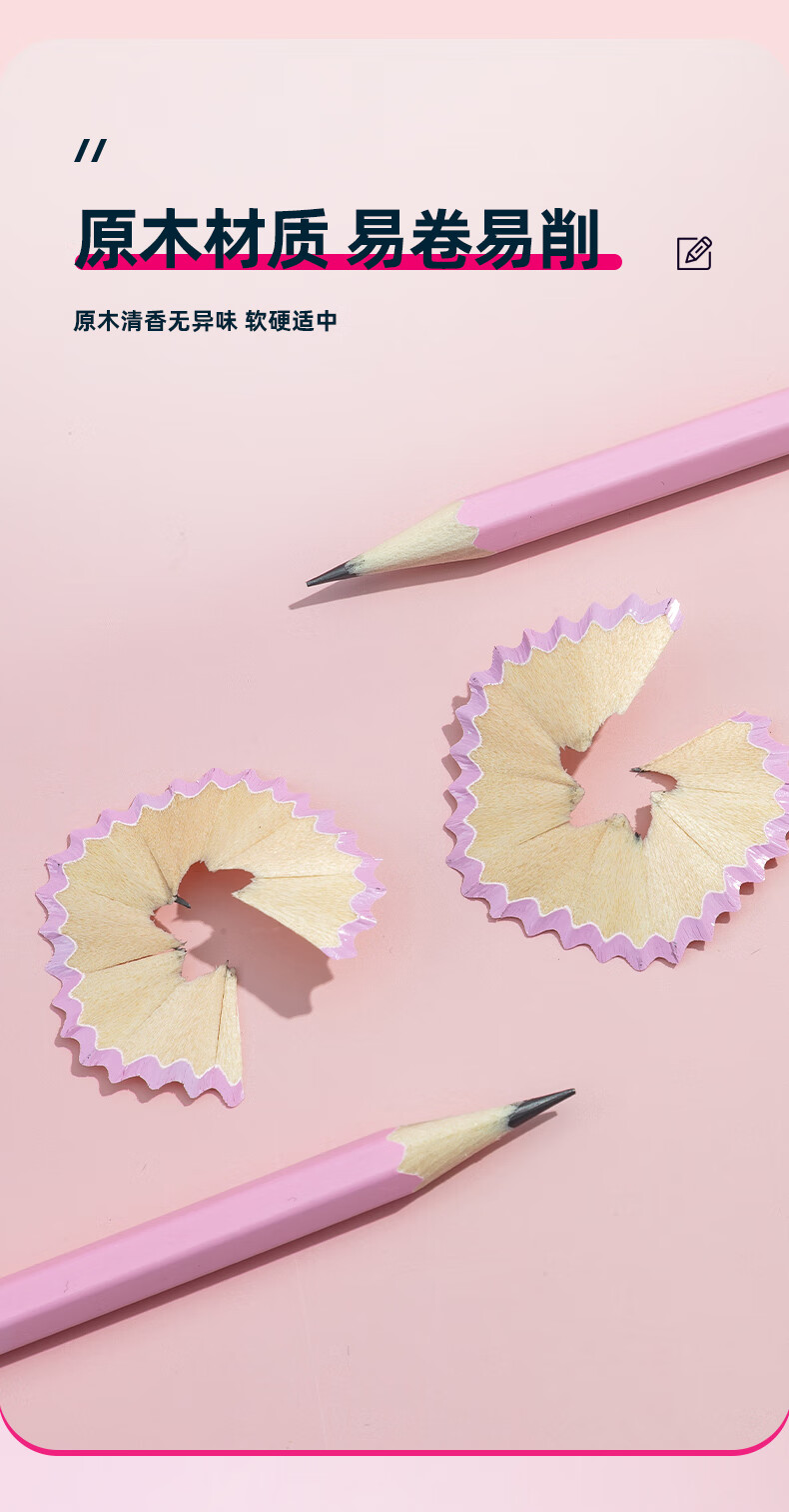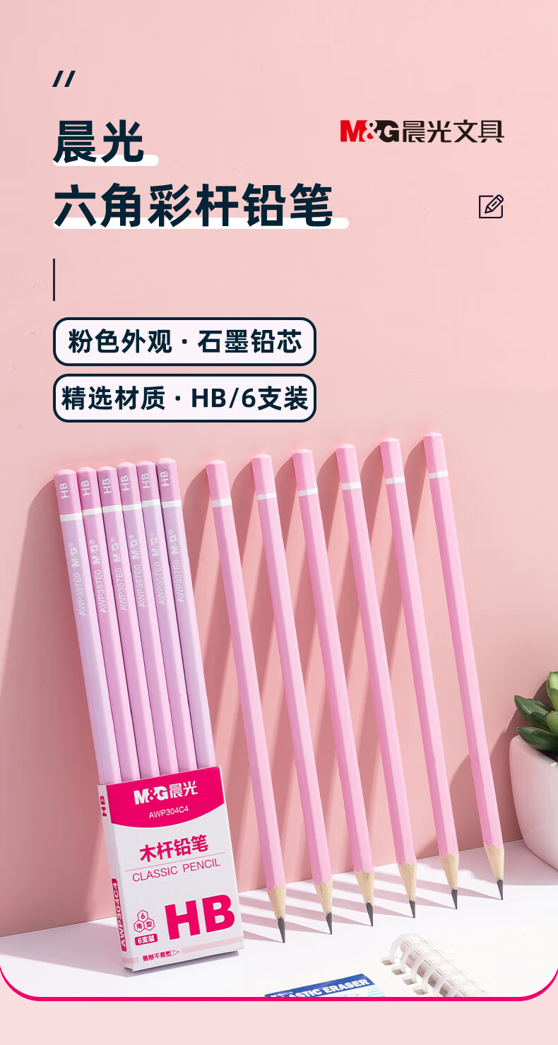 晨光(M&G)文具HB铅笔6支 粉杆六角木杆铅笔 学生开学涂卡书写美术素描绘图木质铅笔AWP304C4