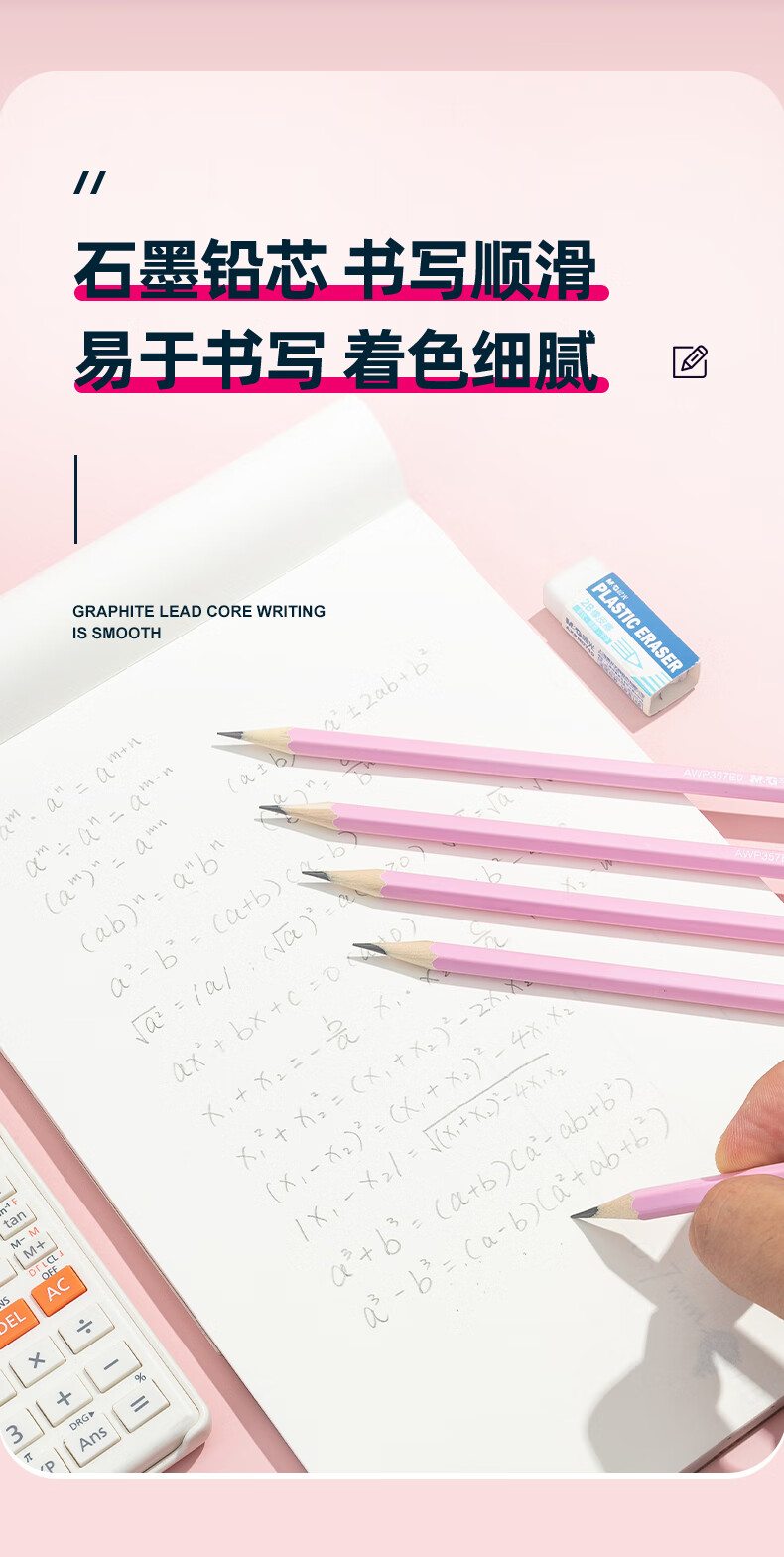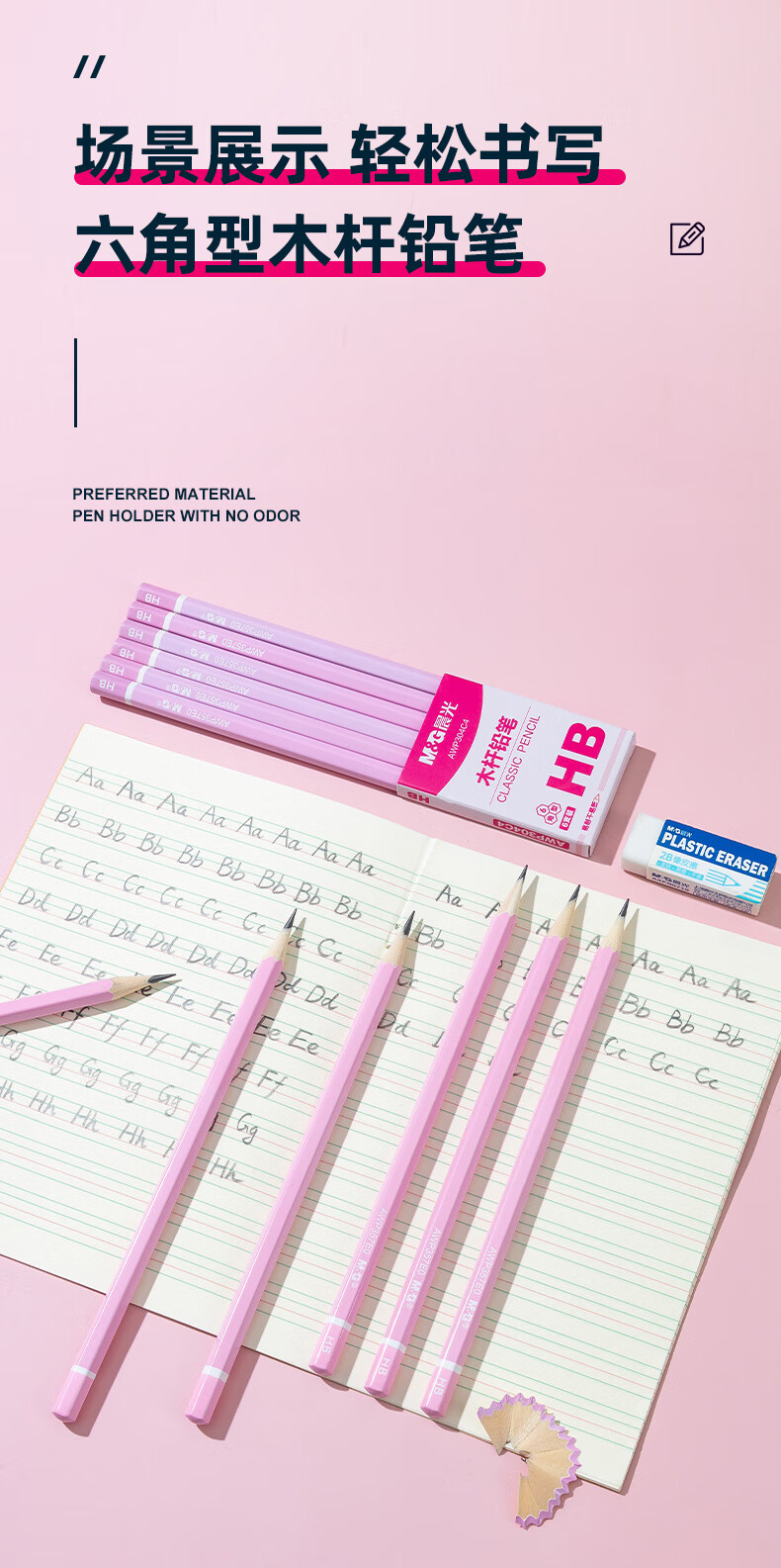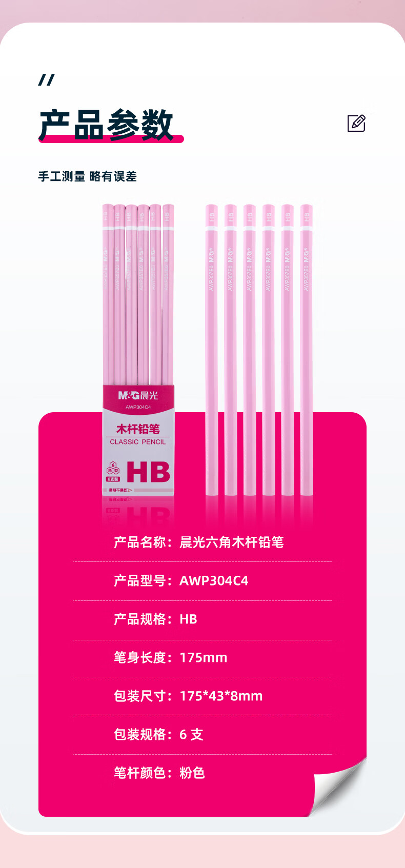 晨光(M&G)文具HB铅笔6支 粉杆六角木杆铅笔 学生开学涂卡书写美术素描绘图木质铅笔AWP304C4