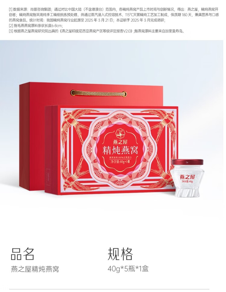 燕之屋精炖燕窝礼盒新年礼物年货送礼礼品40g*5瓶