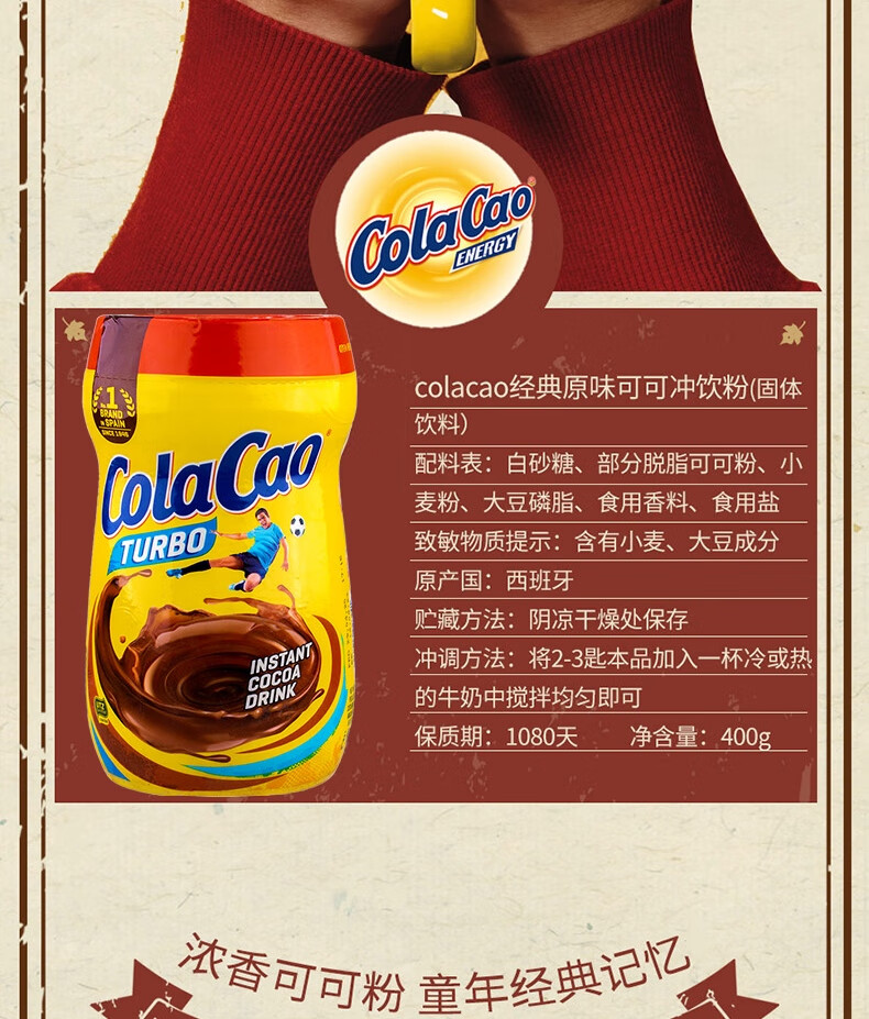ColaCao酷乐高固体饮料经典原味可可冲饮粉400g零食冲调 27年8月到期