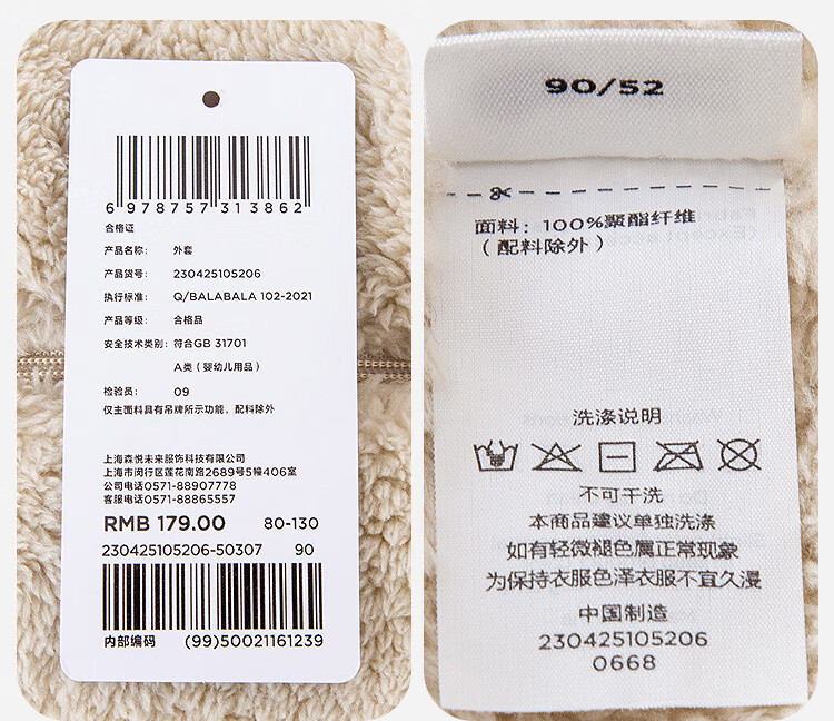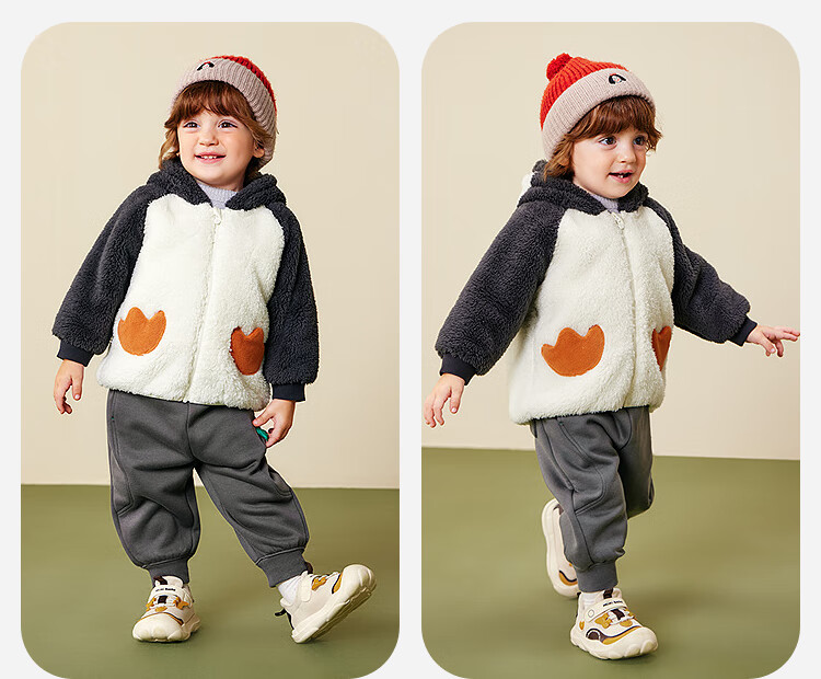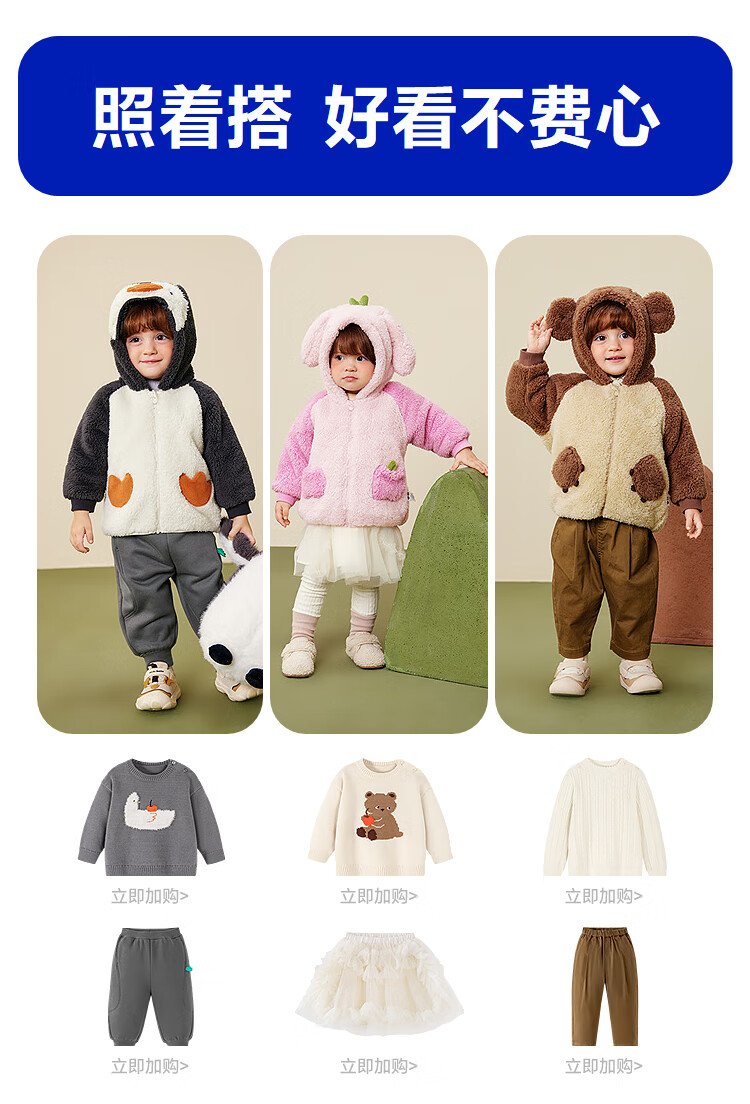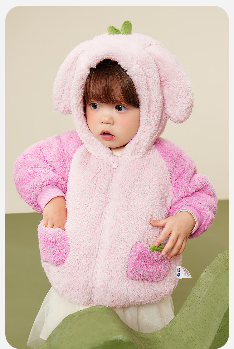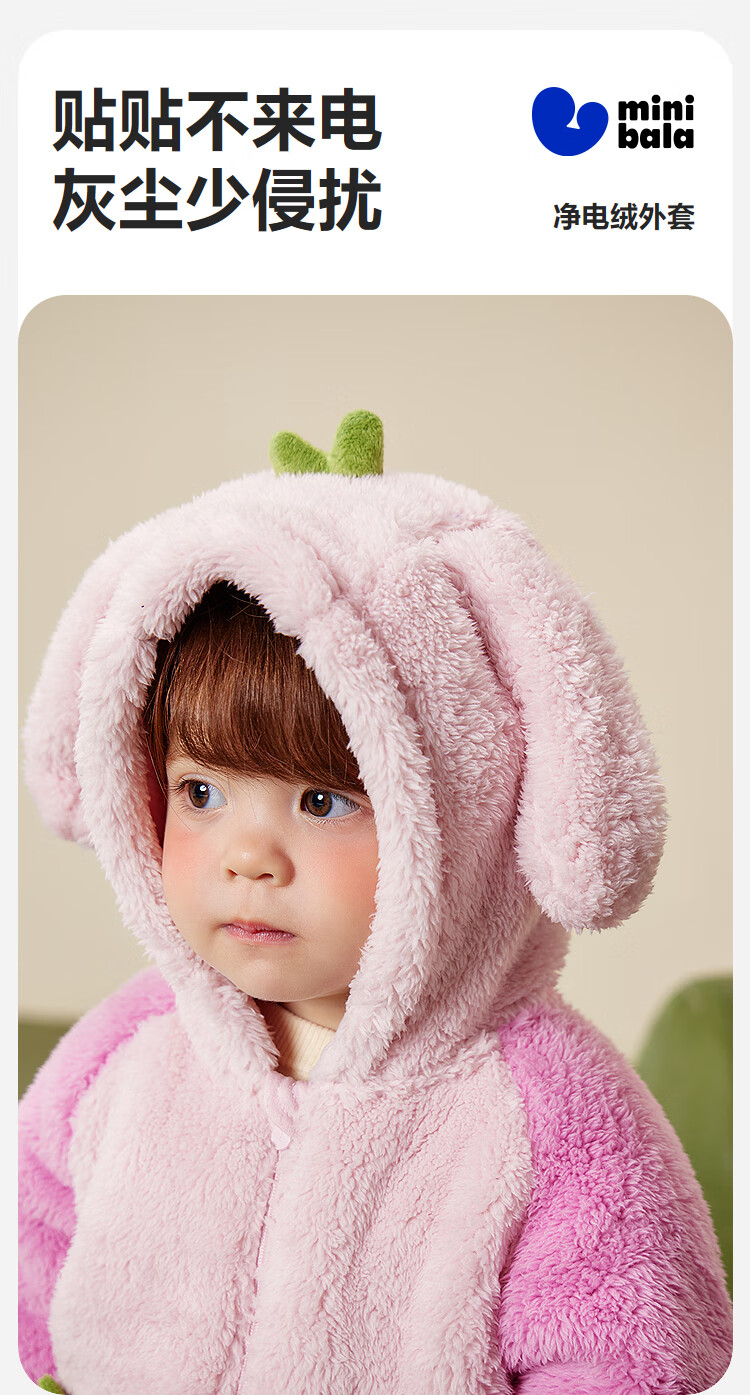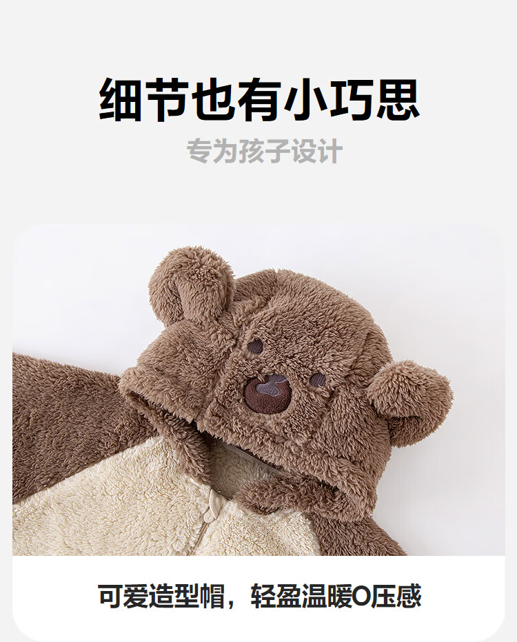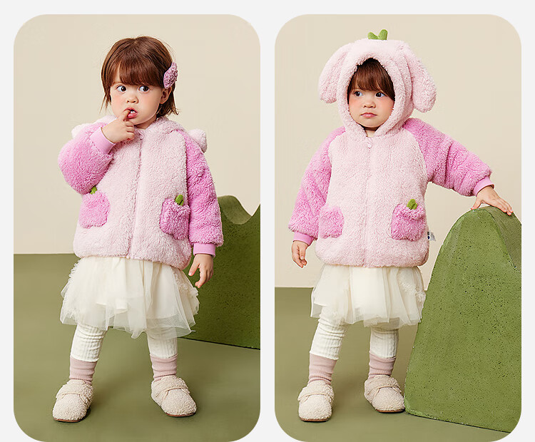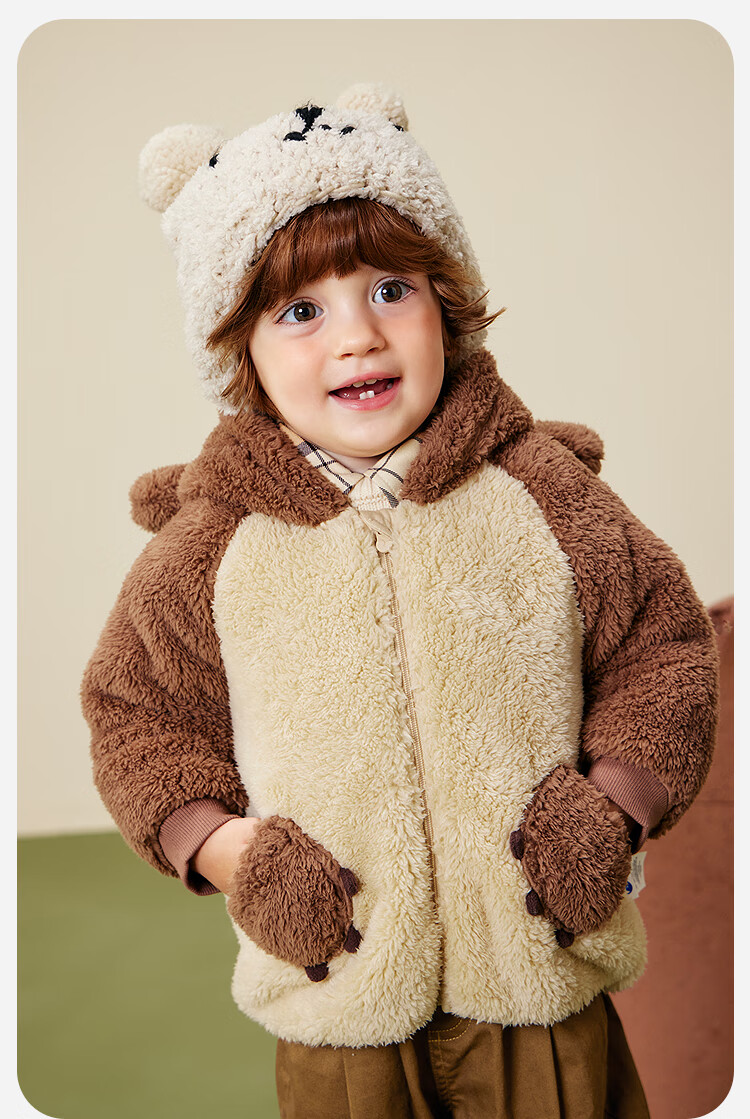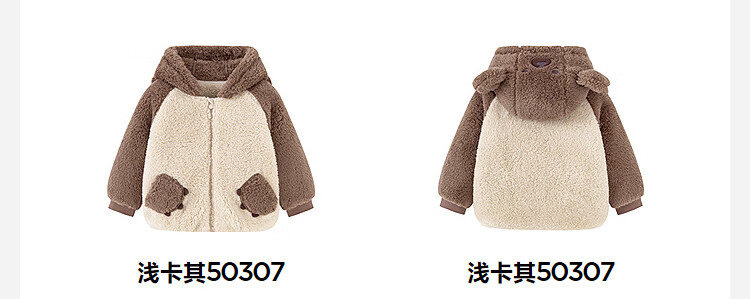 迷你巴拉【净电绒】男女童外套造型抗静电保暖宝宝外衣2025冬新款 浅卡其50307 90
