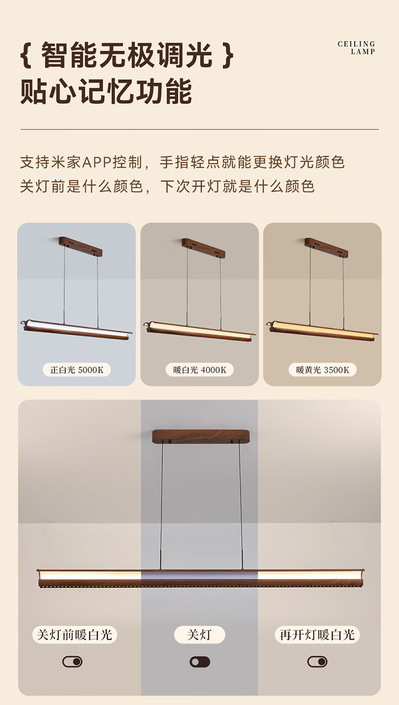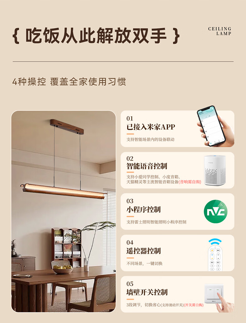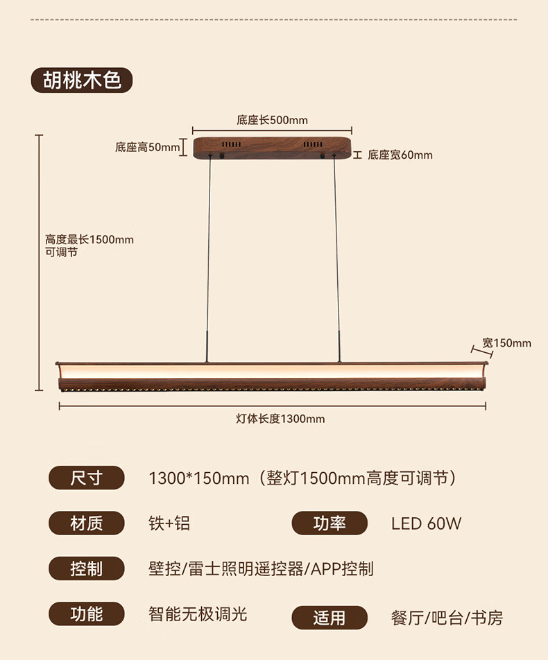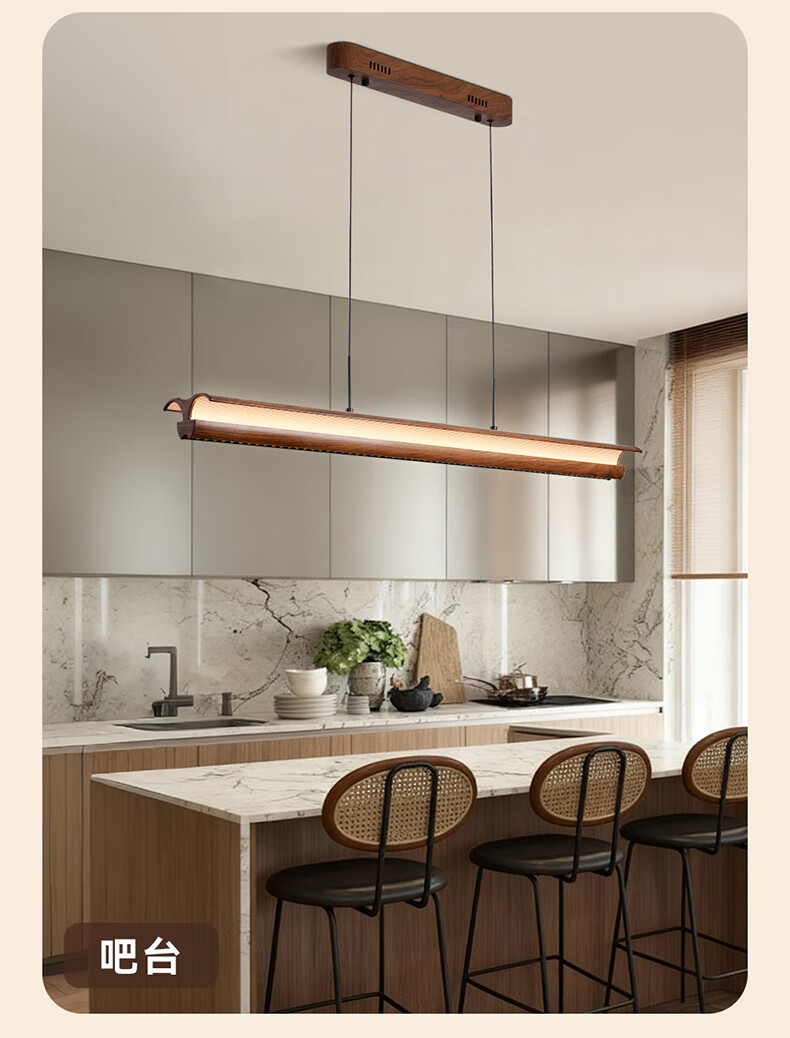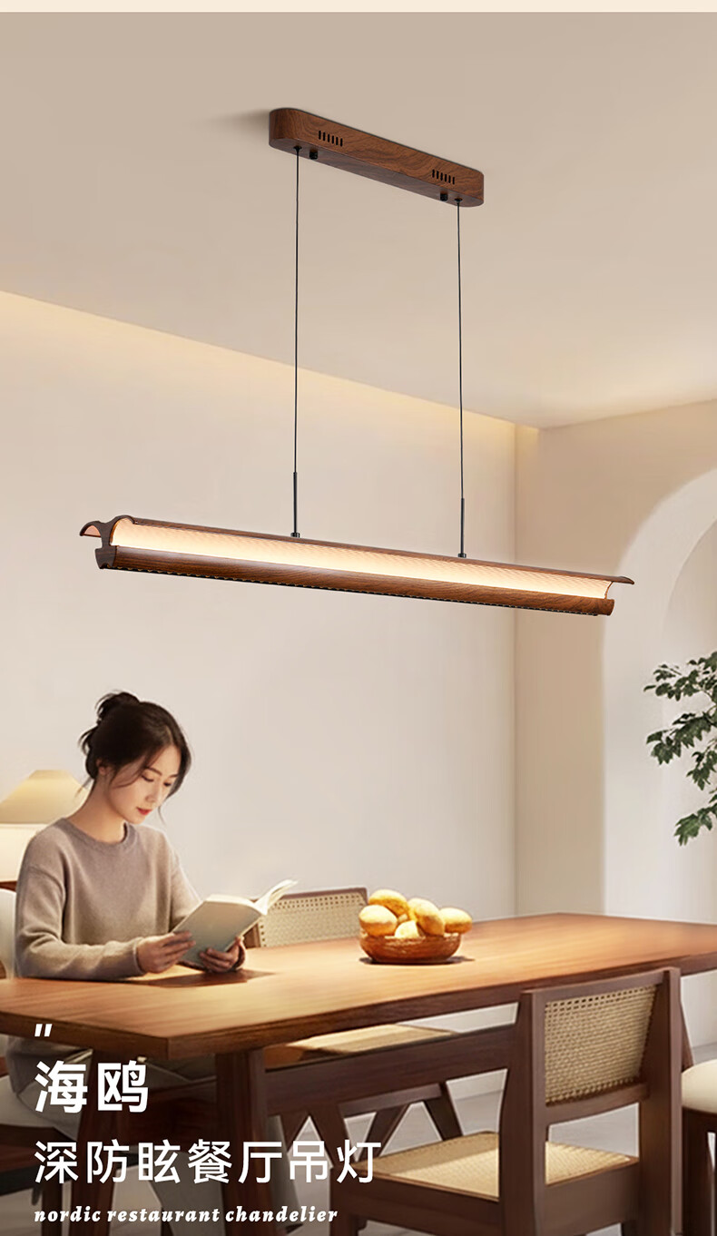 雷士(NVC)中古风胡桃木色智能餐厅吊灯现代简约护眼防眩岛台吧台灯 【海鸥胡桃木色】全光谱60W防眩智能1.3m