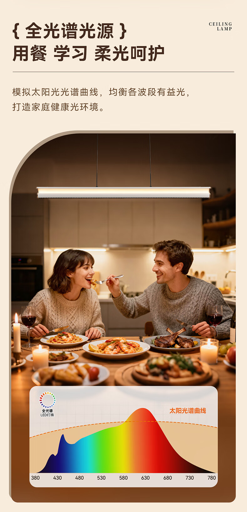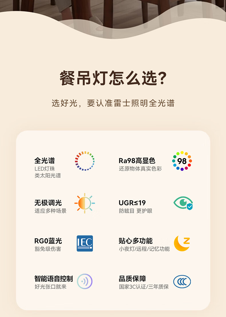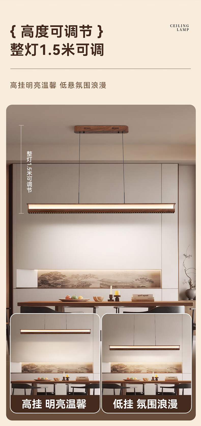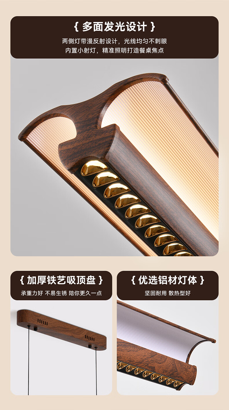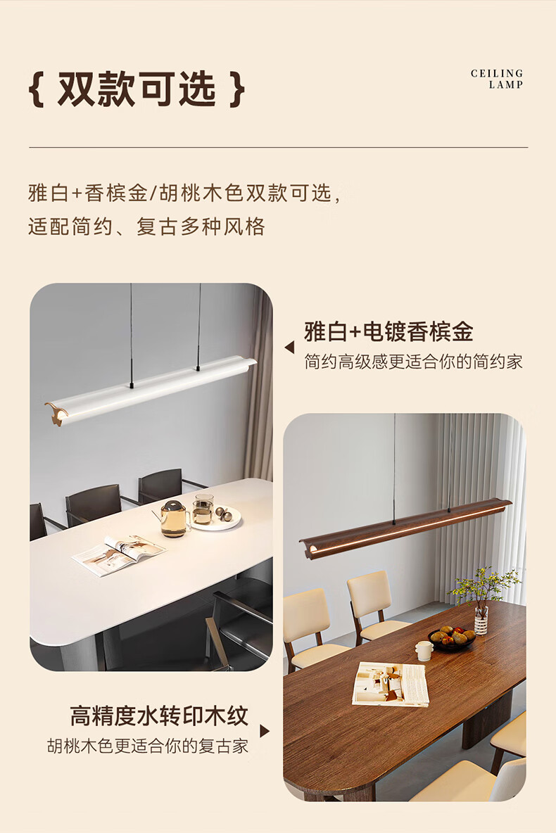 雷士(NVC)中古风胡桃木色智能餐厅吊灯现代简约护眼防眩岛台吧台灯 【海鸥胡桃木色】全光谱60W防眩智能1.3m