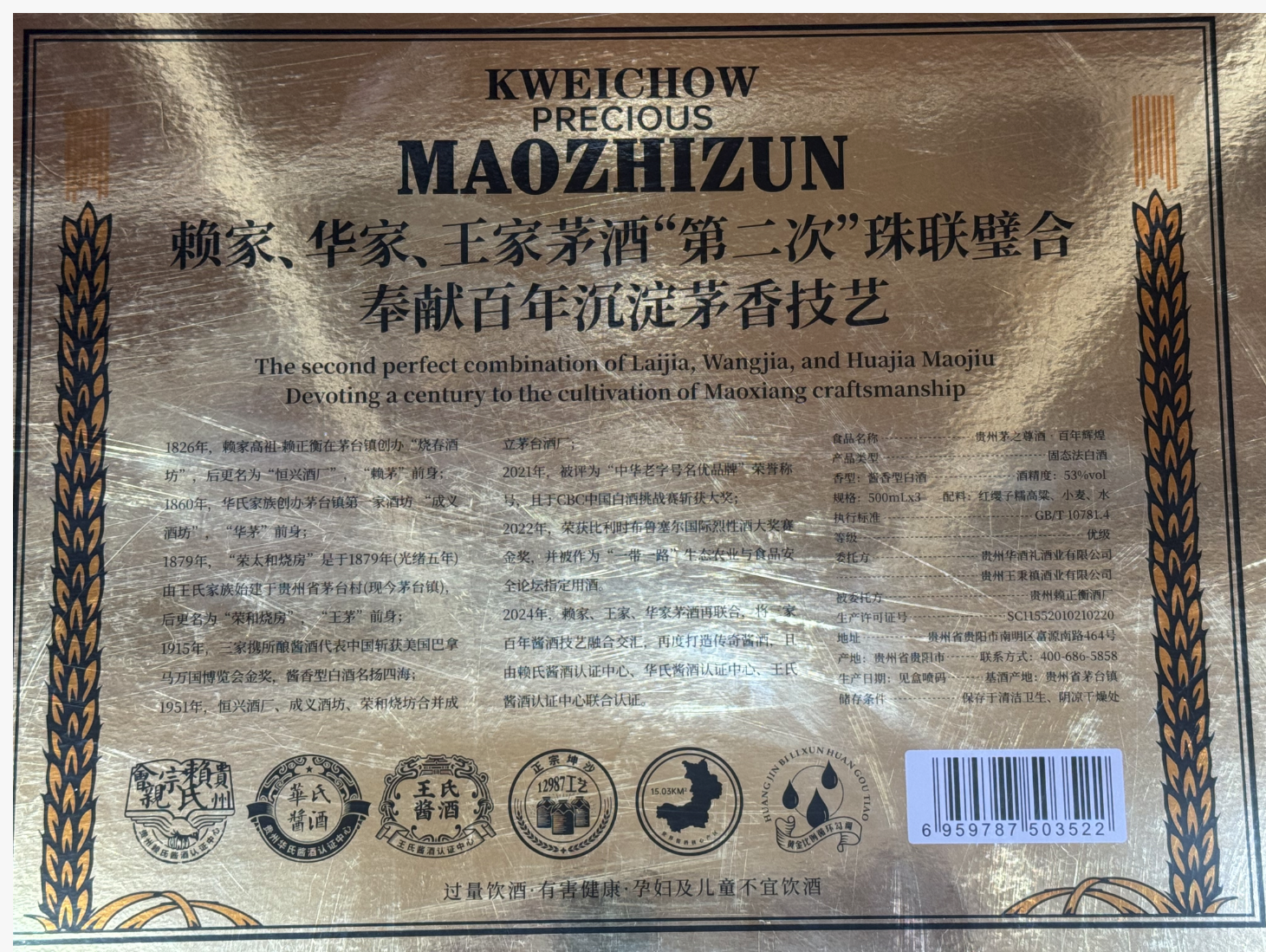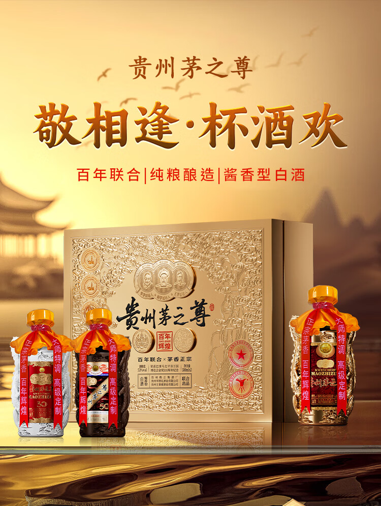 手酱师贵州茅之尊 百年辉煌 酱香型白酒 53度500ml 53度 500mL 3瓶 贵州茅之尊:百年辉煌
