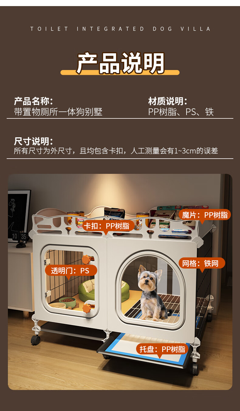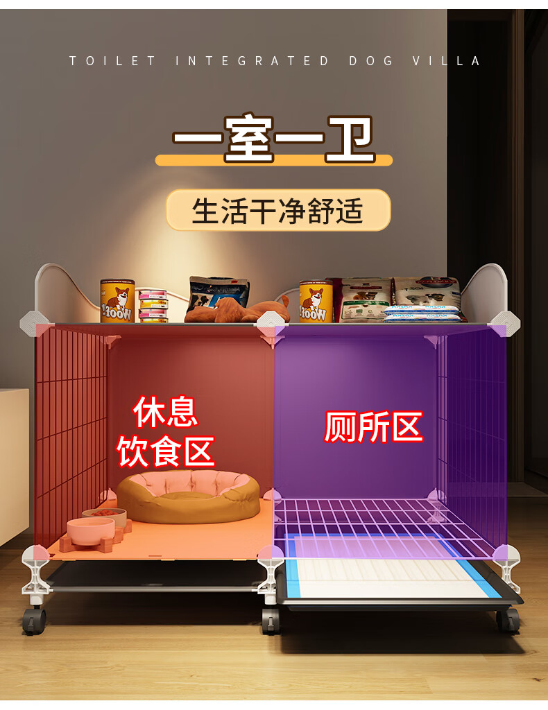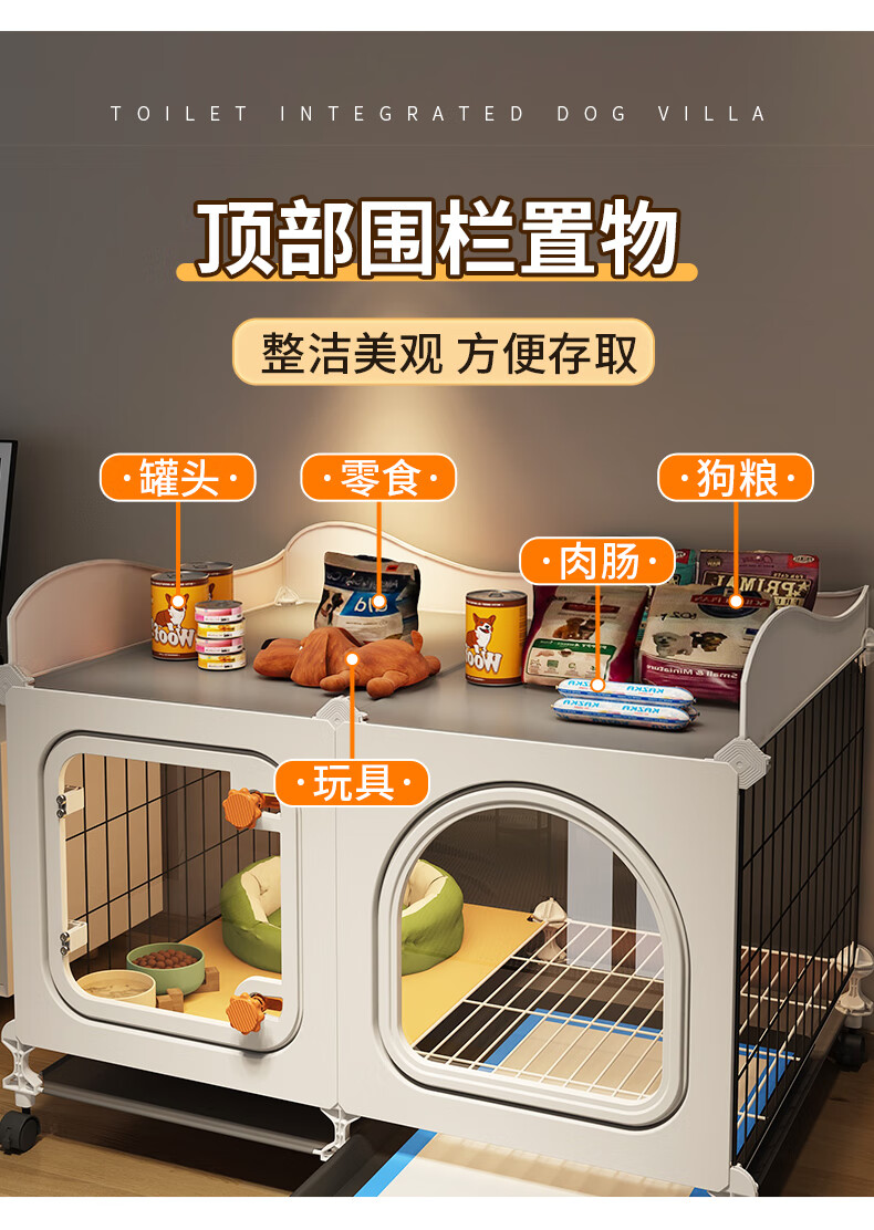 爱咪宠狗笼子带厕所分离小型犬栅栏泰迪博美比熊用狗窝狗屋一室一卫 大号-送保暖狗窝-带滑轮可推动-70*45*57 升级训厕置物款:训厕狗笼+托盘厕所