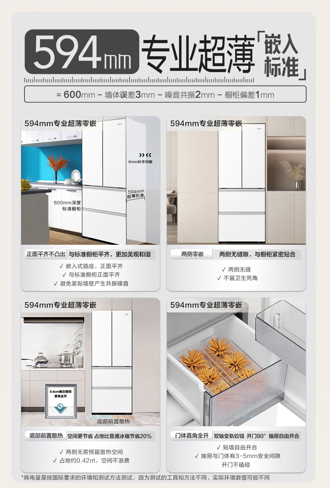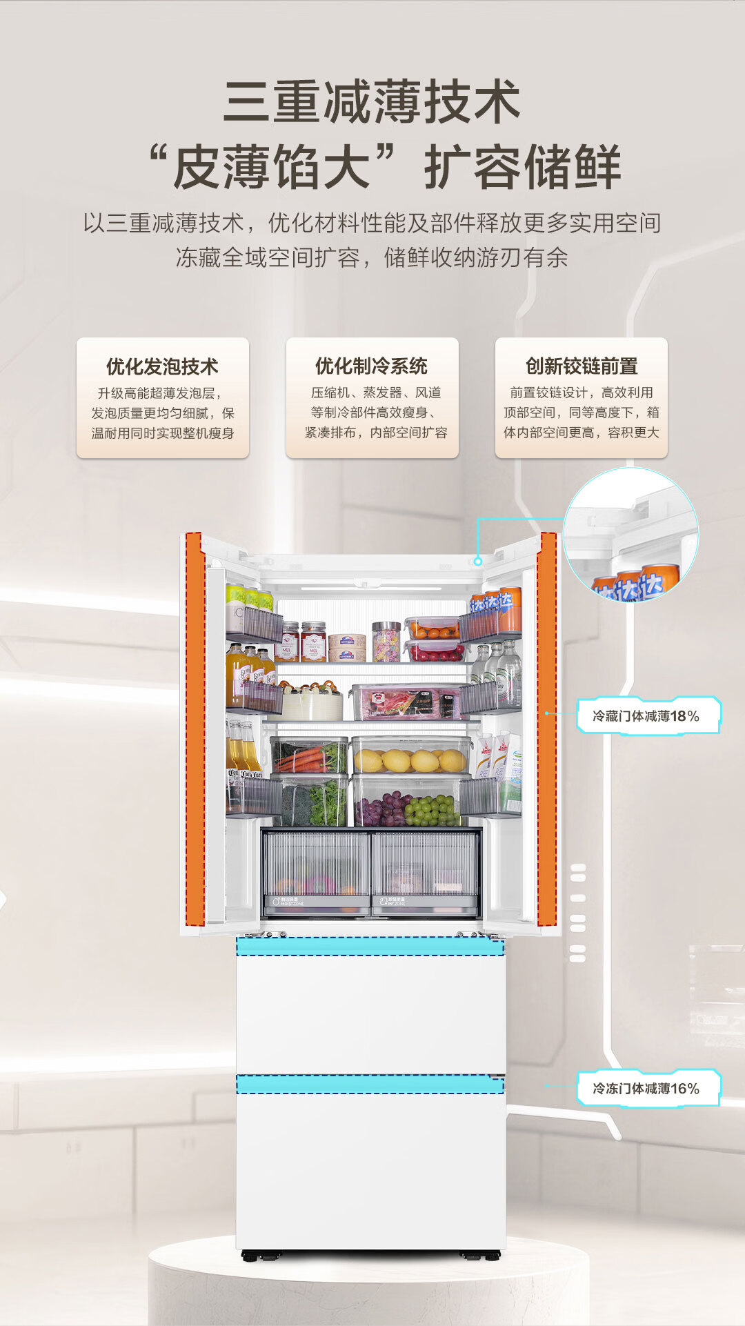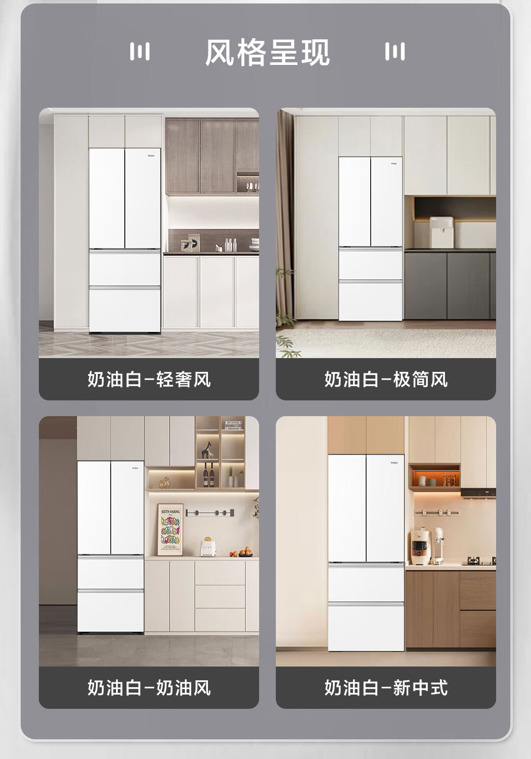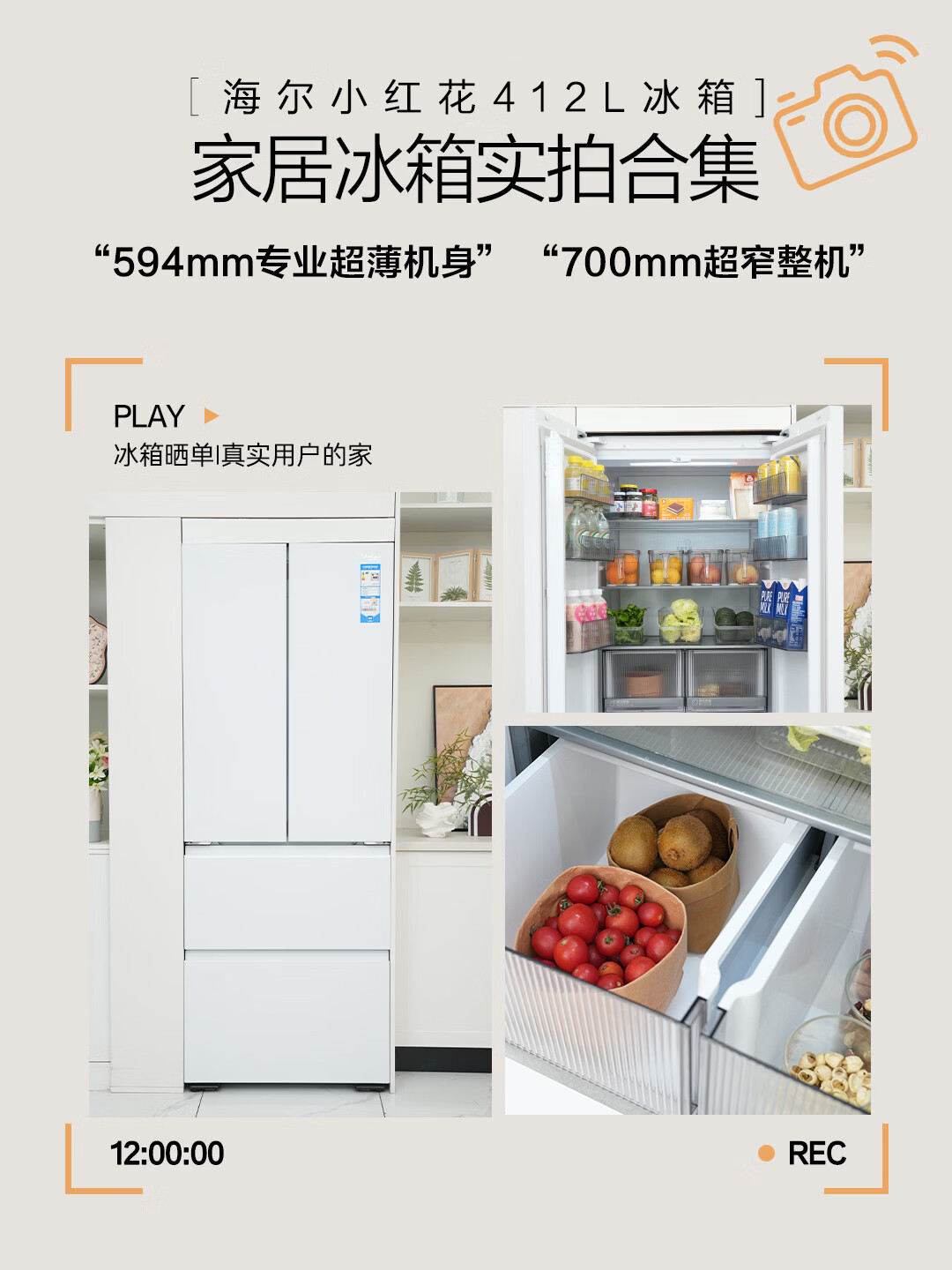 海尔(Haier)25新款小红花412升法式多门冰箱594mm超薄零嵌70超窄EPP超净阻氧干湿分储三档变温一级能效家用 BCD-412WGHFDB5WFU1咨询领政府补贴