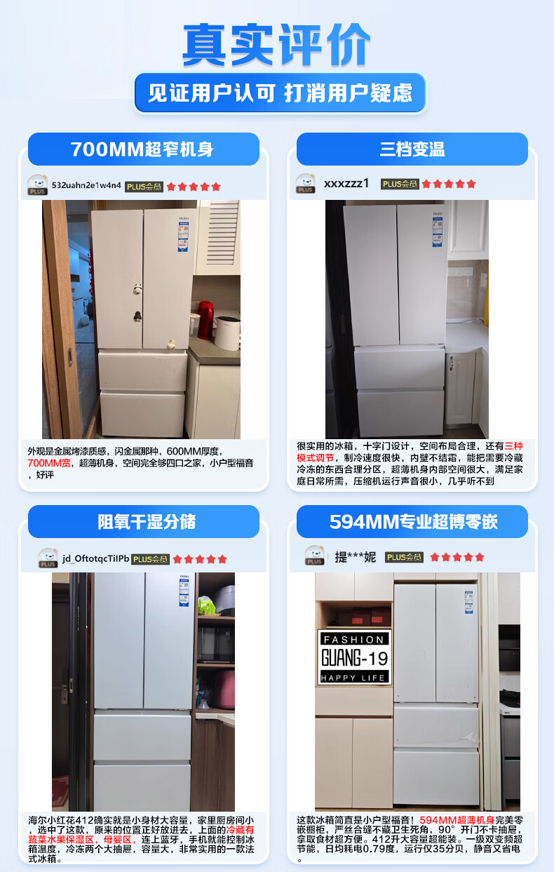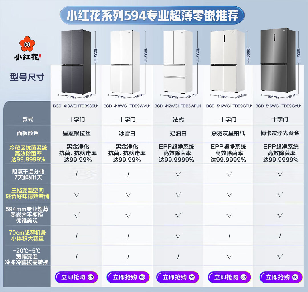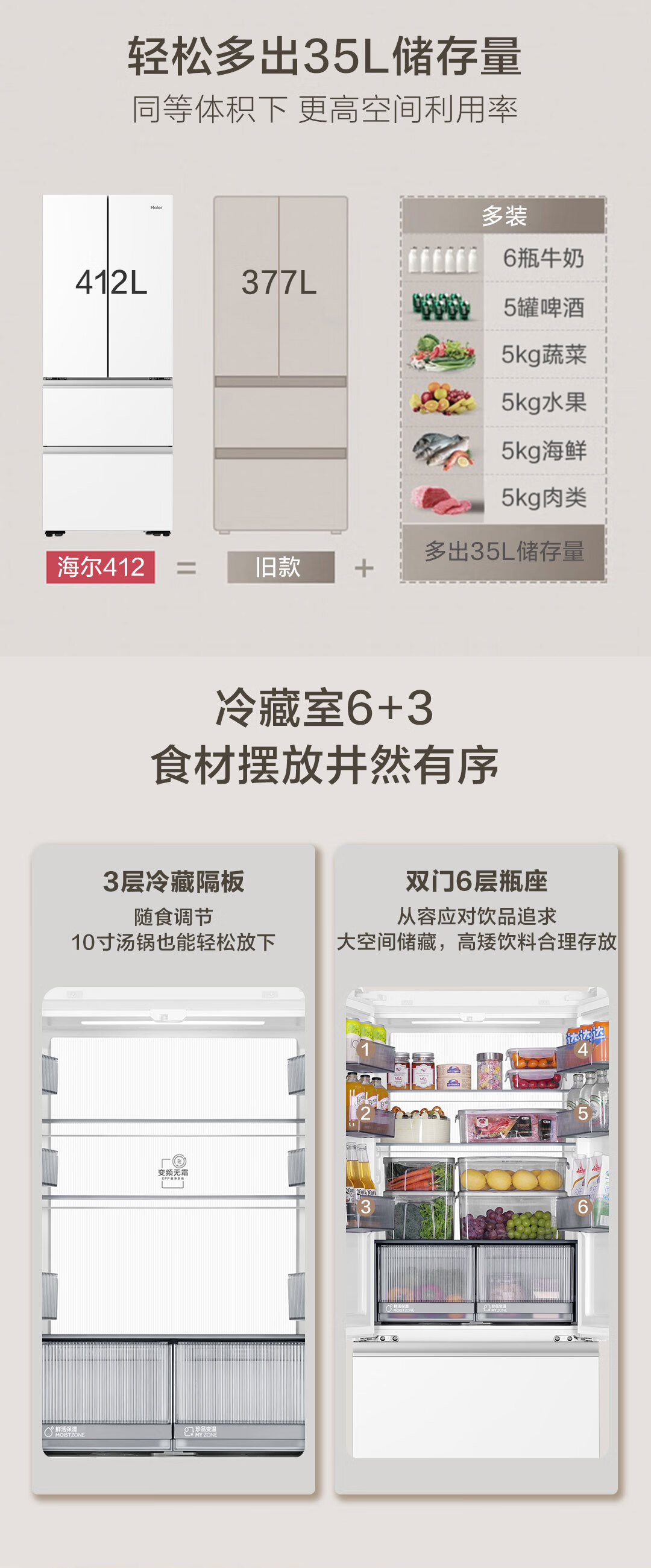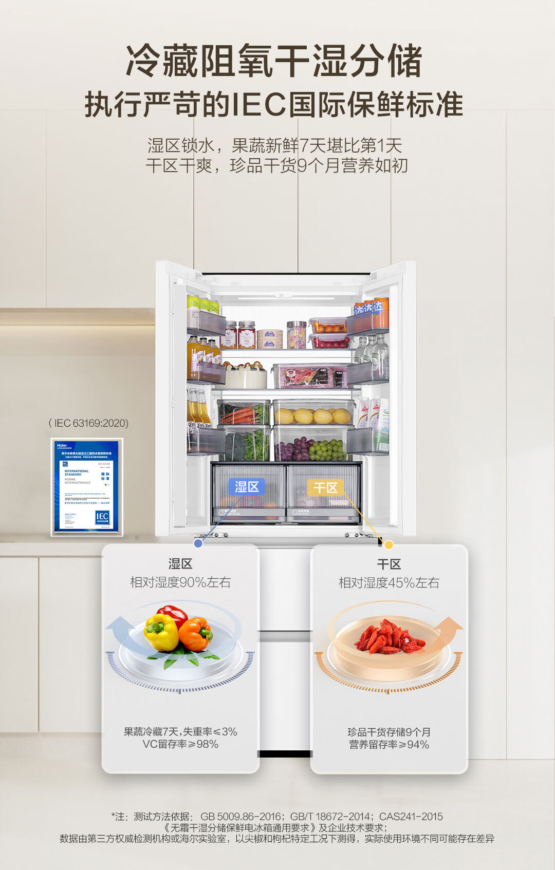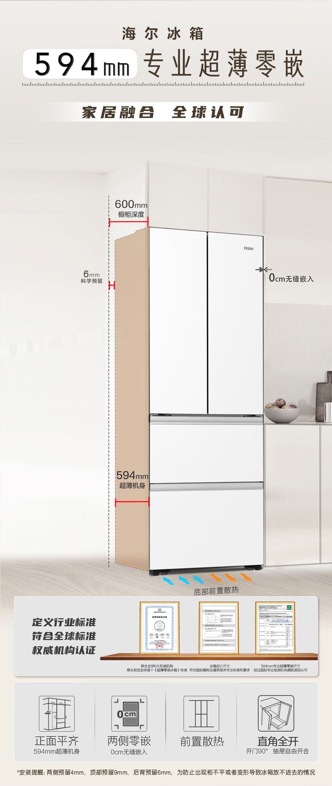 海尔(Haier)25新款小红花412升法式多门冰箱594mm超薄零嵌70超窄EPP超净阻氧干湿分储三档变温一级能效家用 BCD-412WGHFDB5WFU1咨询领政府补贴