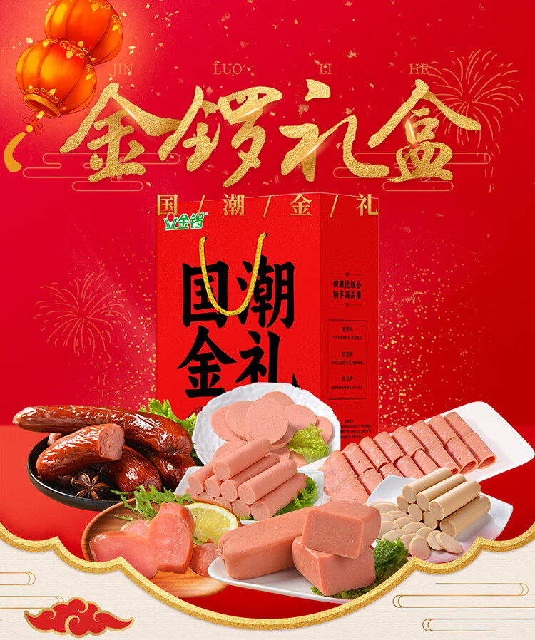 金锣国潮金礼礼盒火腿肠肉类大礼包7款1649g/盒员工福利送亲友