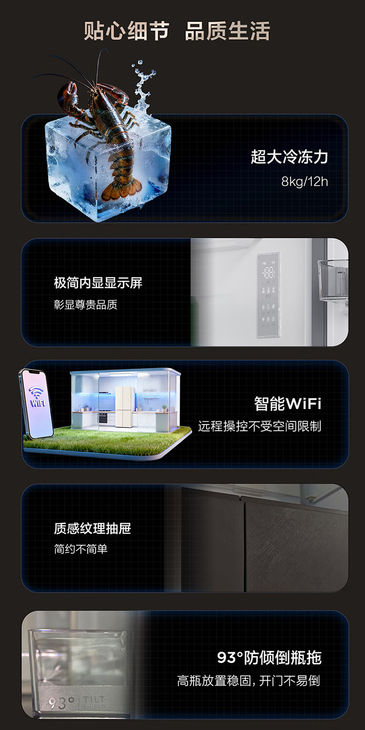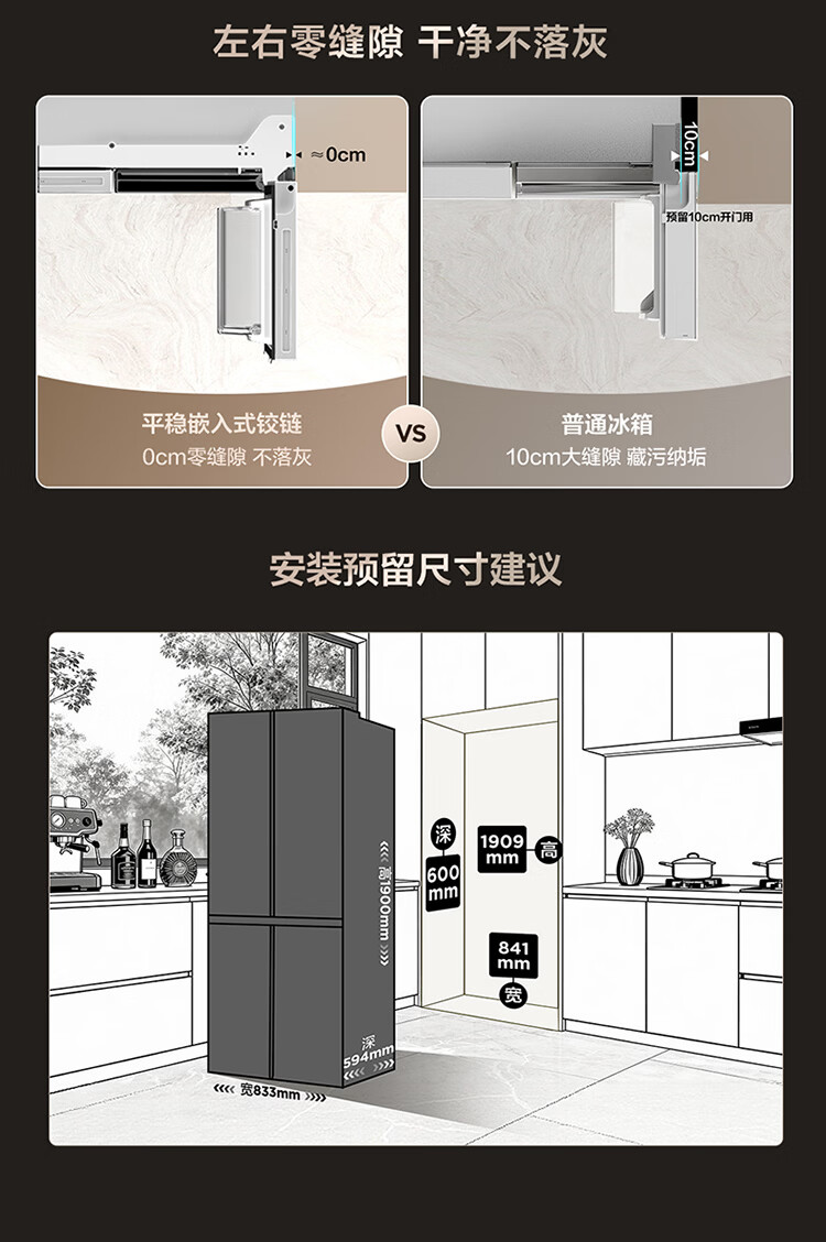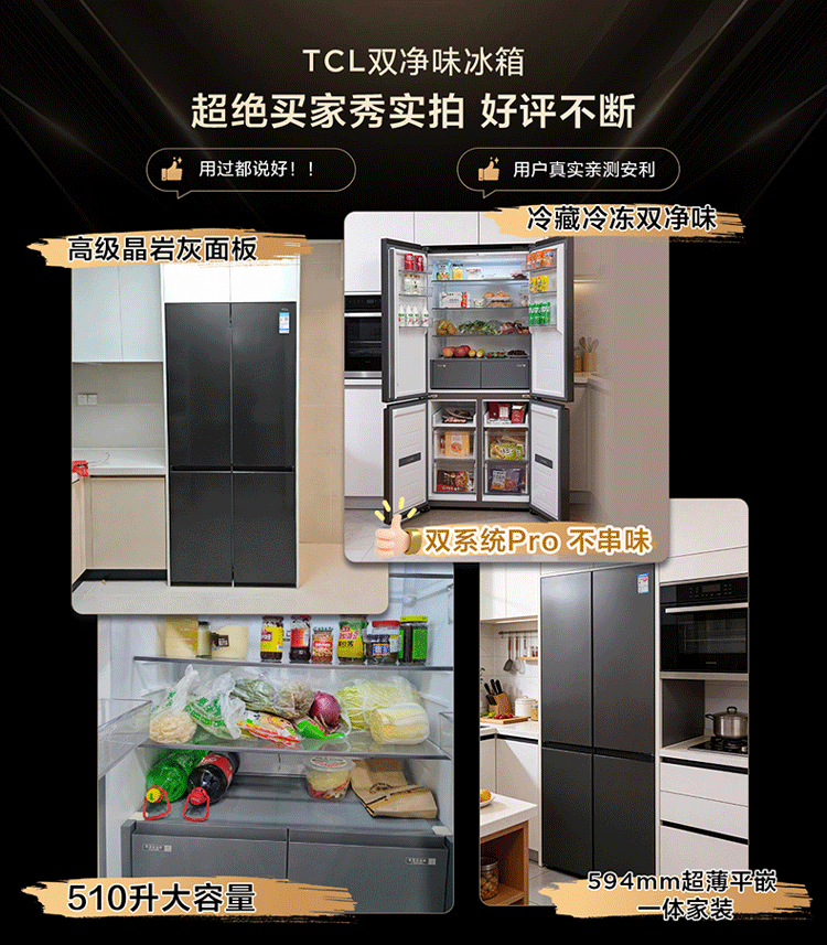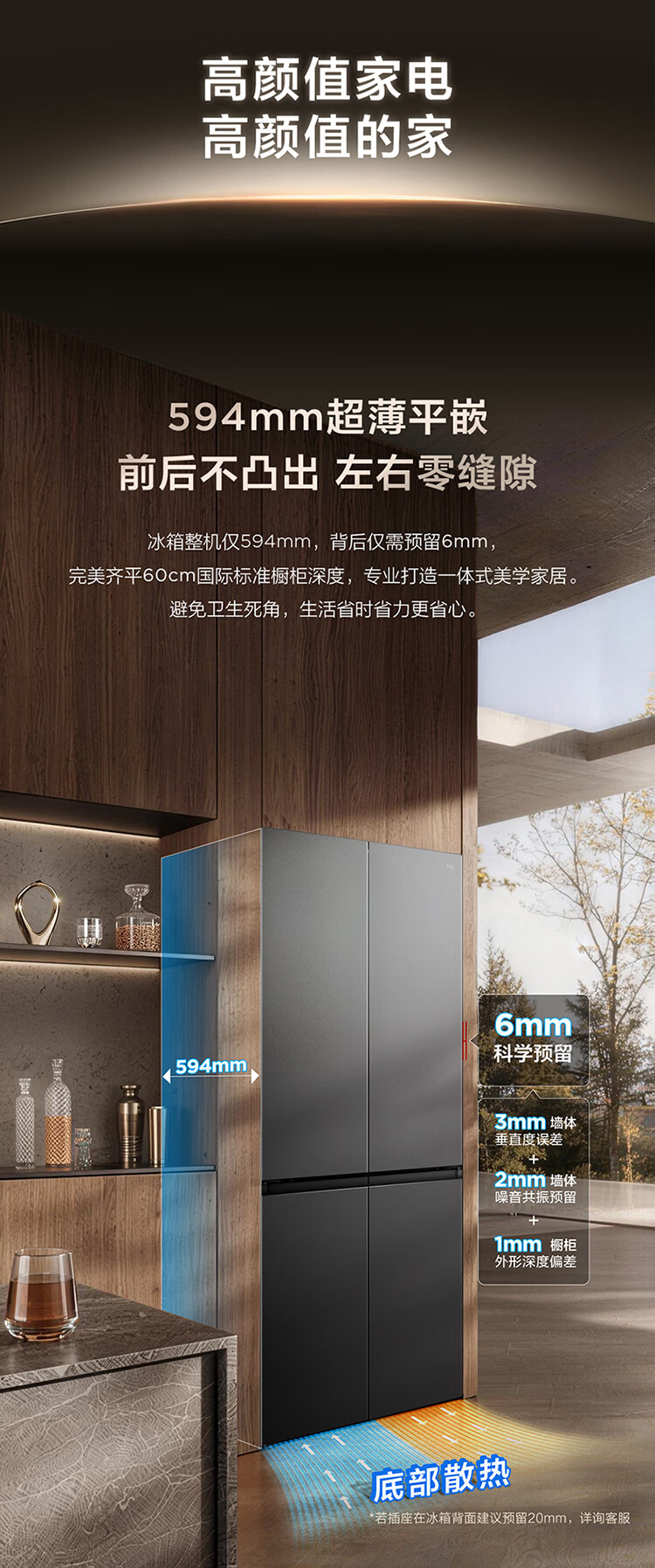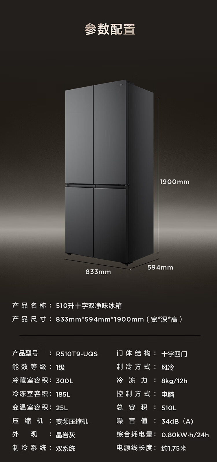 TCL510L十字门冰箱【508升级款】双系统超薄零嵌入式大容量冰箱一级能效以旧换新R510T9-UQS国家补贴