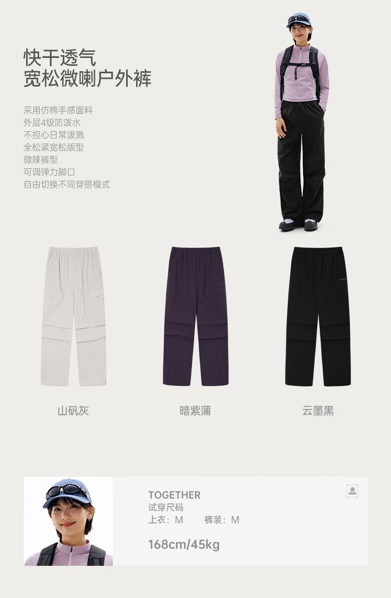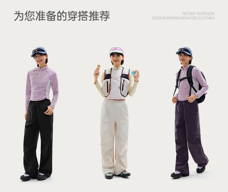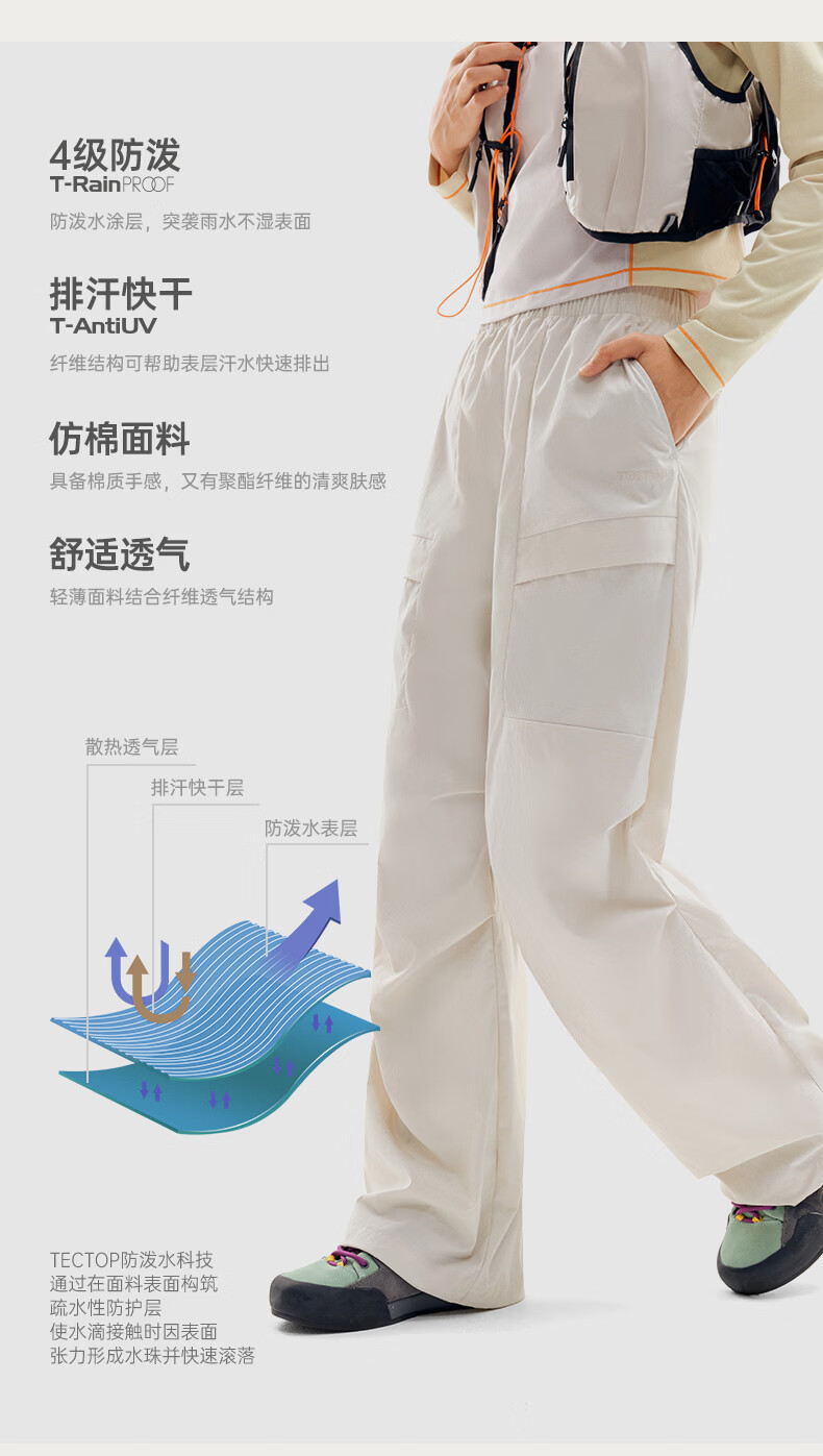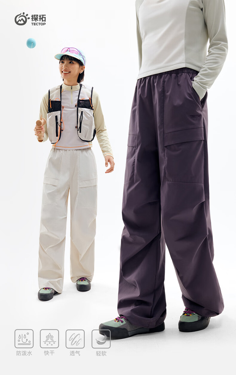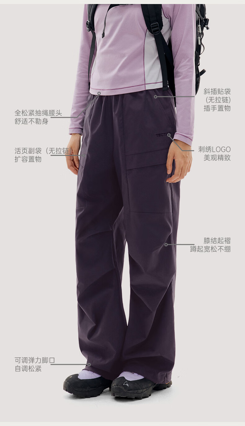 探拓(TECTOP)26新款女士速干裤运动大码登山裤工装裤休闲直筒裤 云墨黑 L