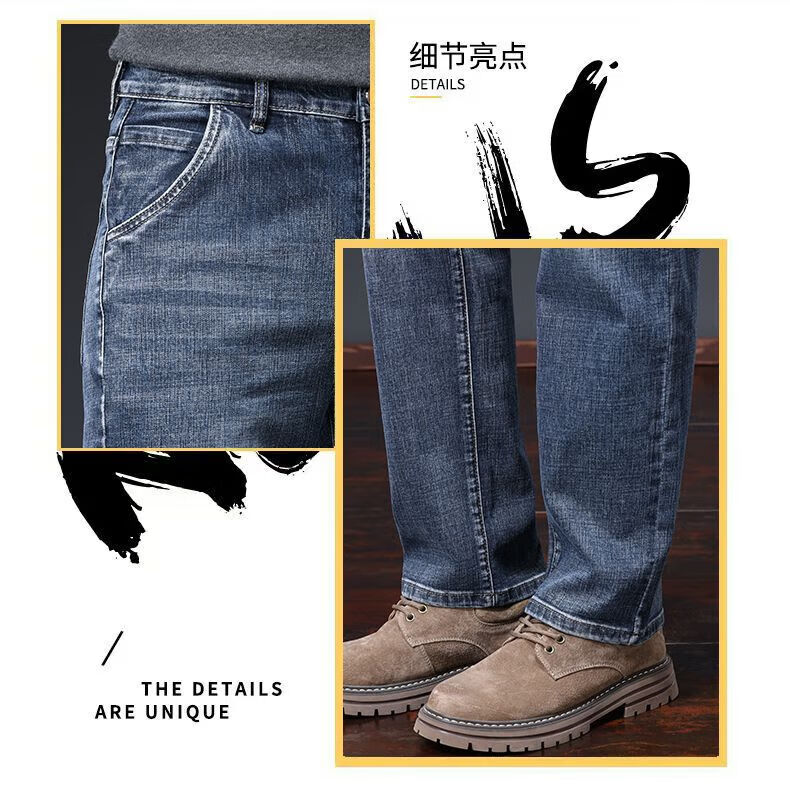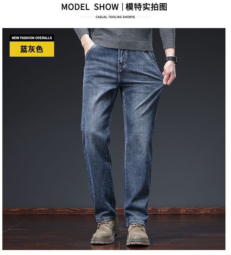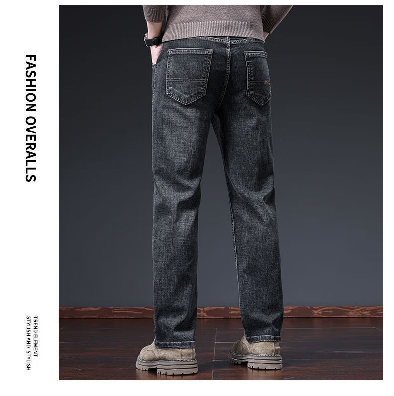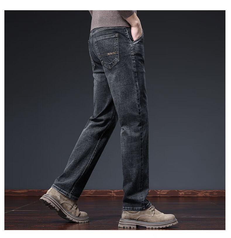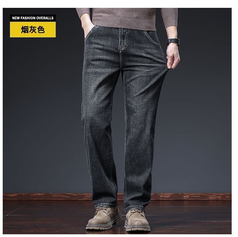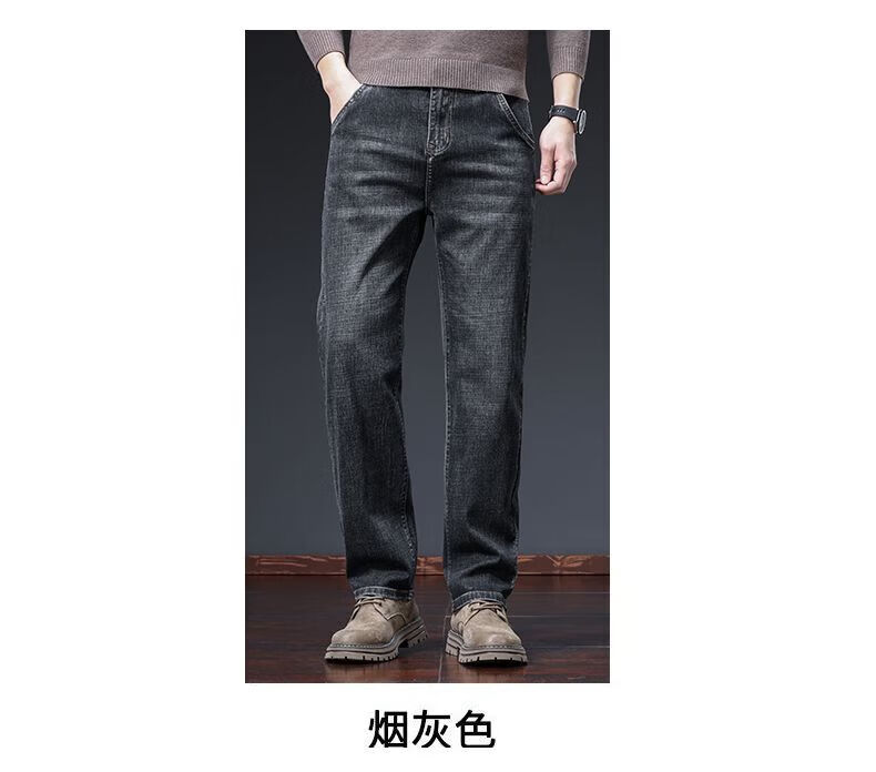 真维斯(Jeanswest)牛仔裤男春秋季高端宽松大码休闲直筒裤男新款百搭弹力舒适长裤男 烟灰色加绒 28