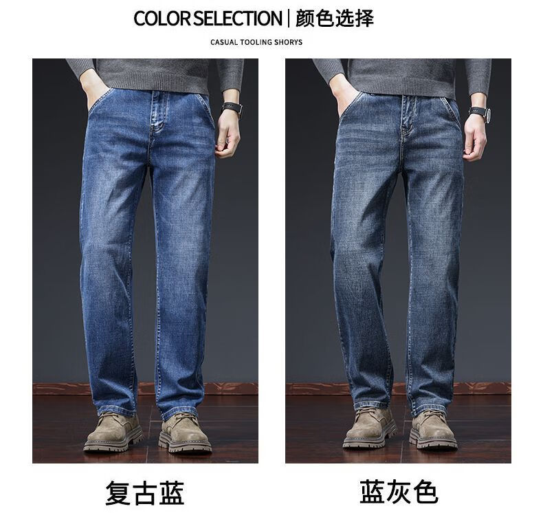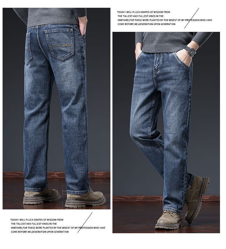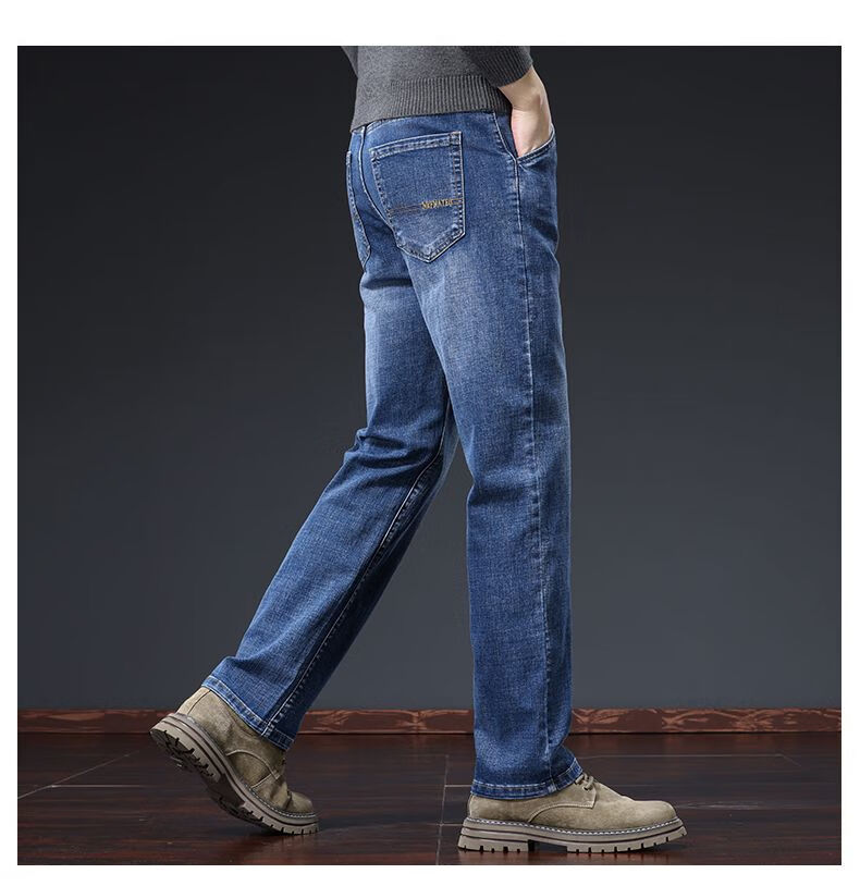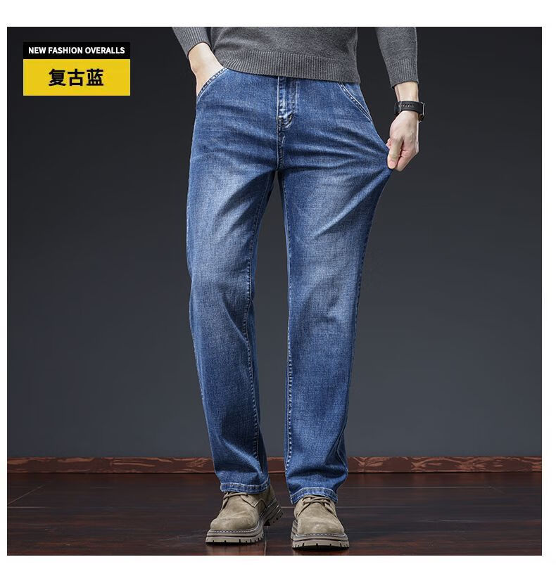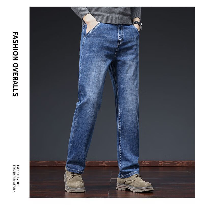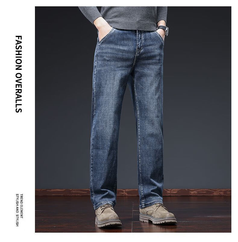 真维斯(Jeanswest)牛仔裤男春秋季高端宽松大码休闲直筒裤男新款百搭弹力舒适长裤男 烟灰色加绒 28