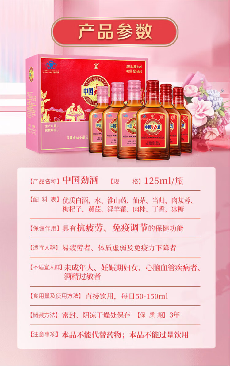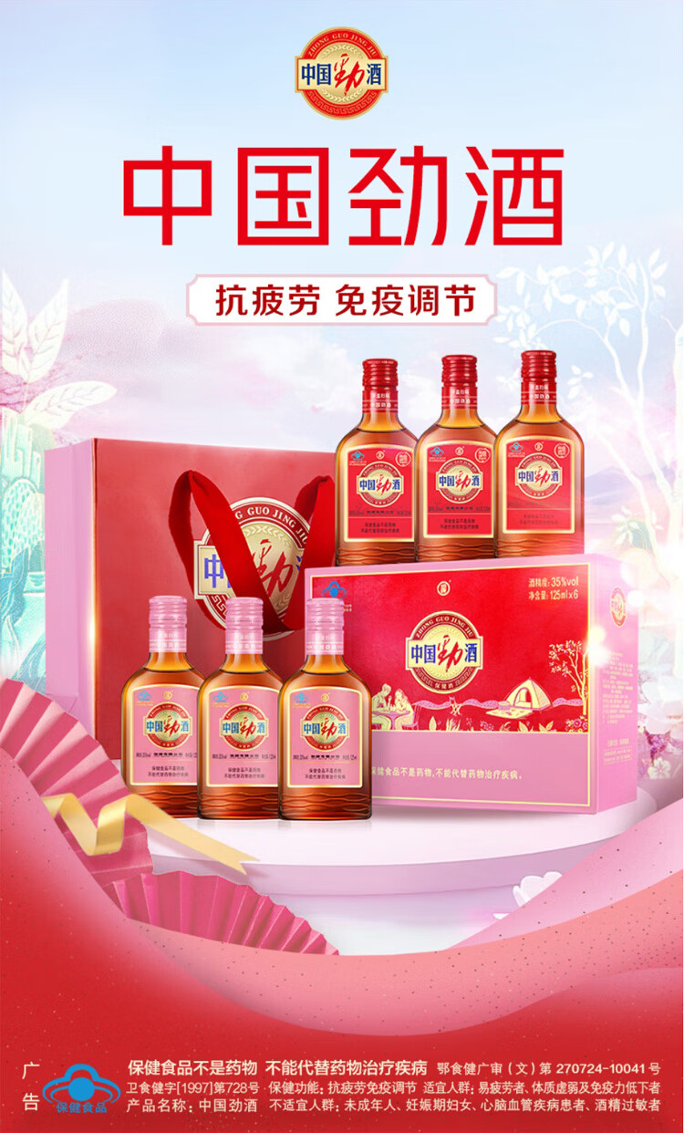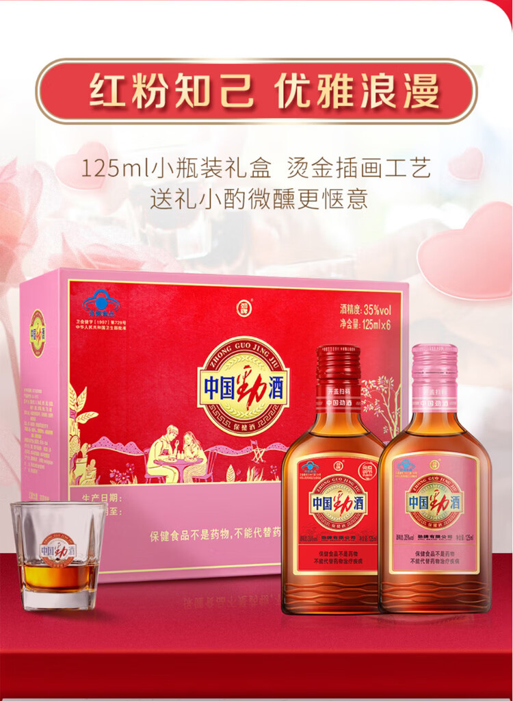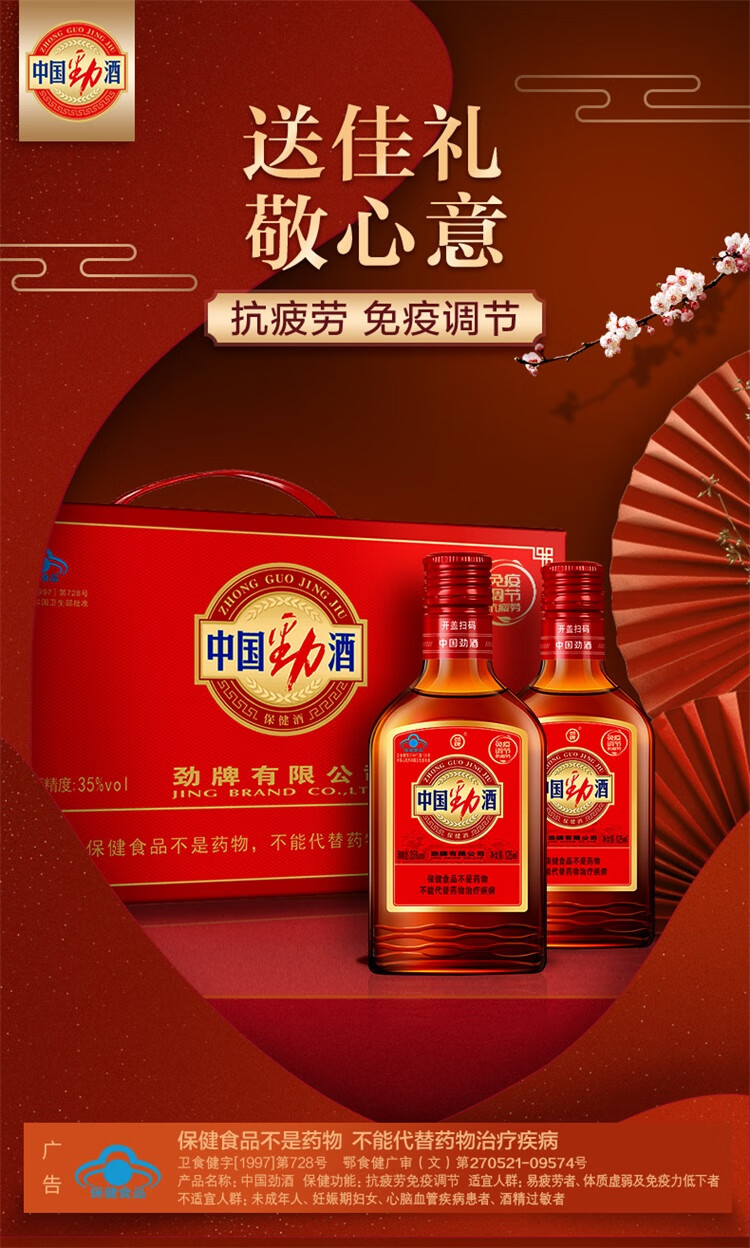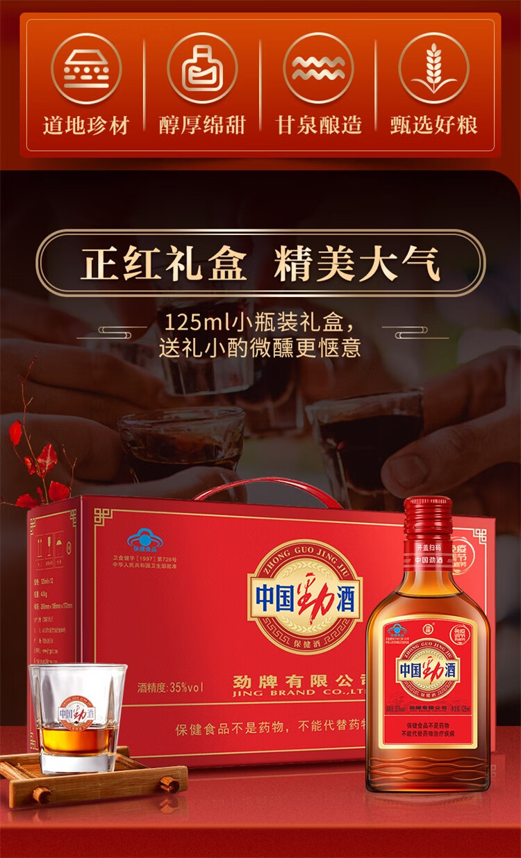 劲牌中国劲酒 35度 春季送礼 送长辈父母 礼盒装 35度 125mL 12瓶 劲酒礼盒