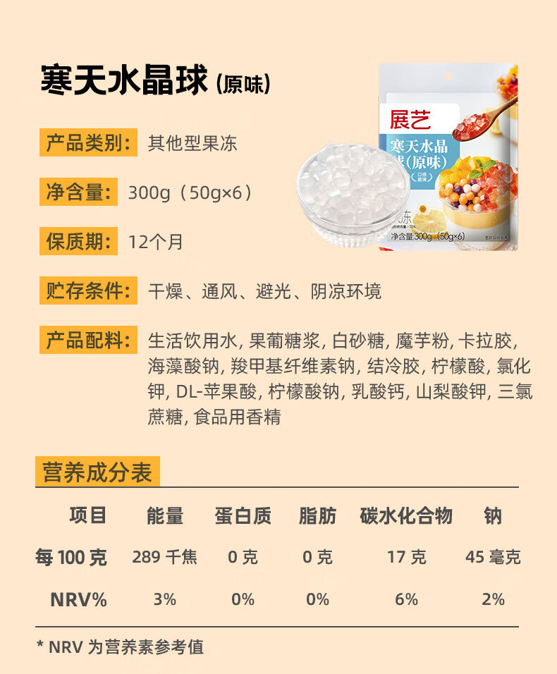 展艺脆啵啵50g*6包 寒天水晶球奶茶小料清补凉甜品烧仙草烘焙原料