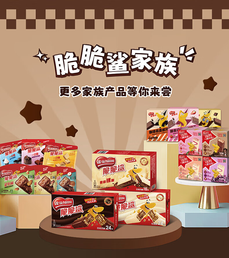 雀巢脆脆鲨威化饼干巧克力味分享装休闲零食办公充饥休闲零食 裸威化涂层32条混合装约387.2g散装