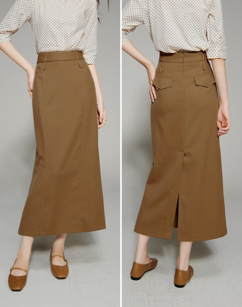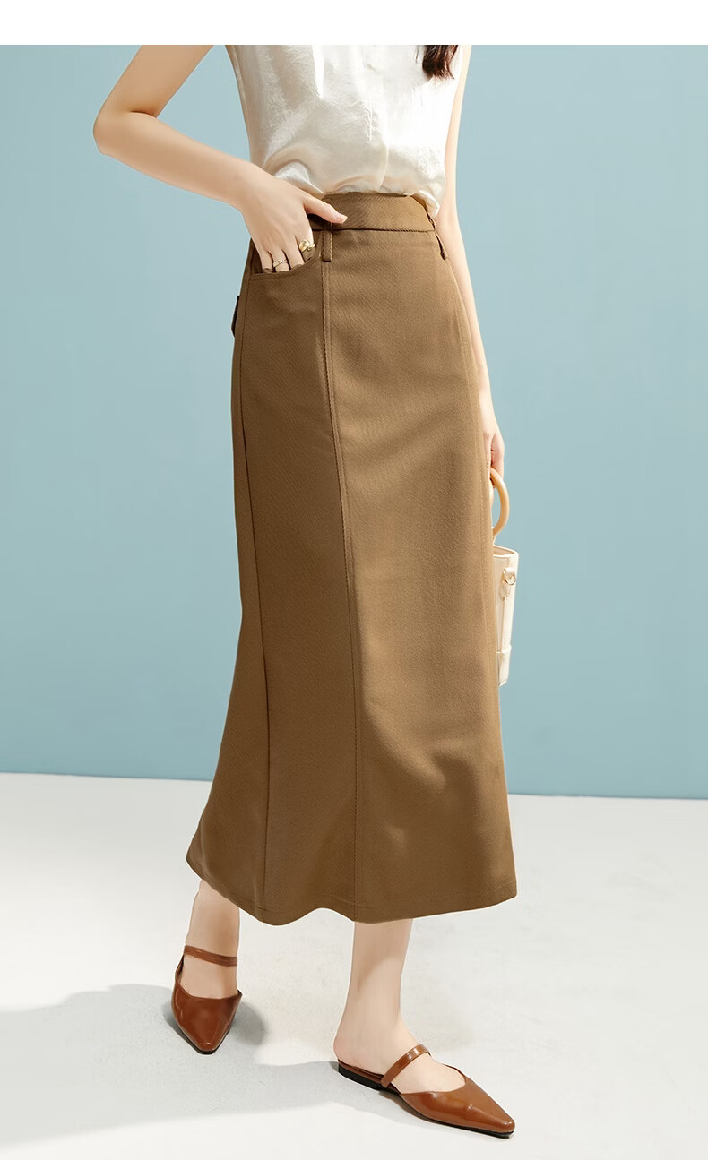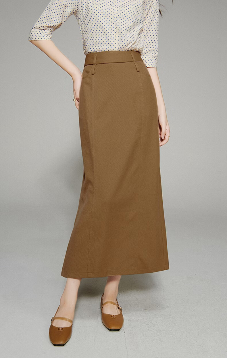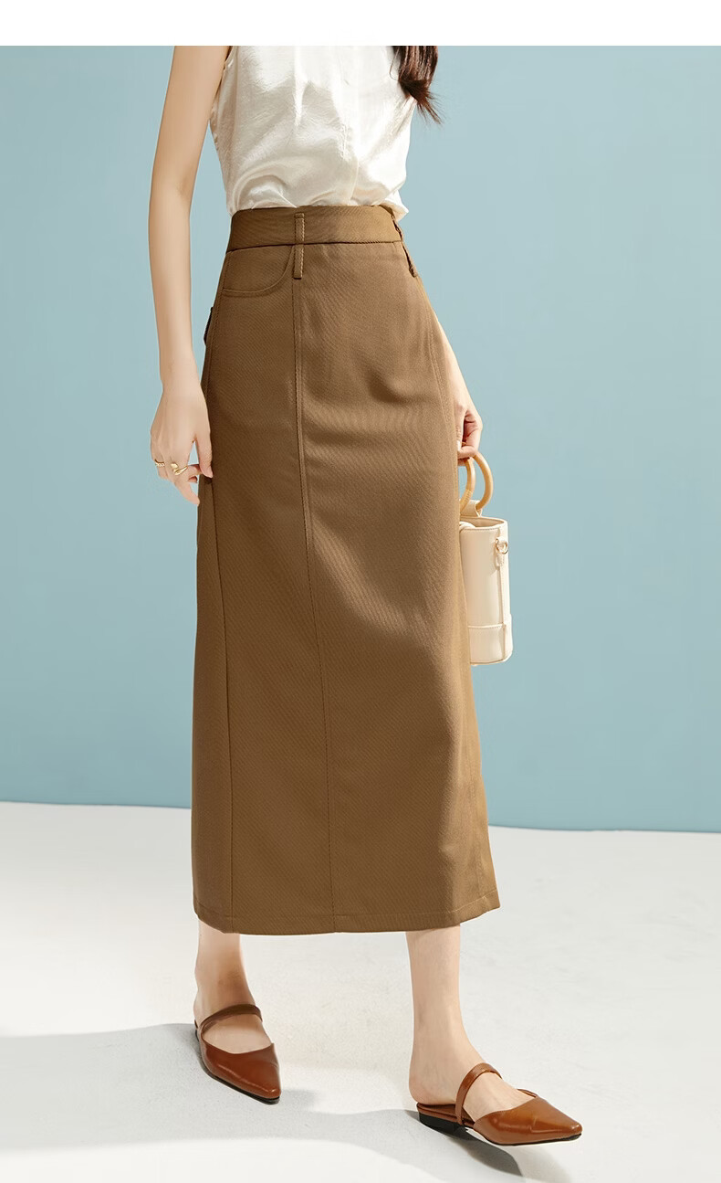 晚白【新品】2026春款经典直筒裙高腰修身气质干练通勤半身裙 驼色 M