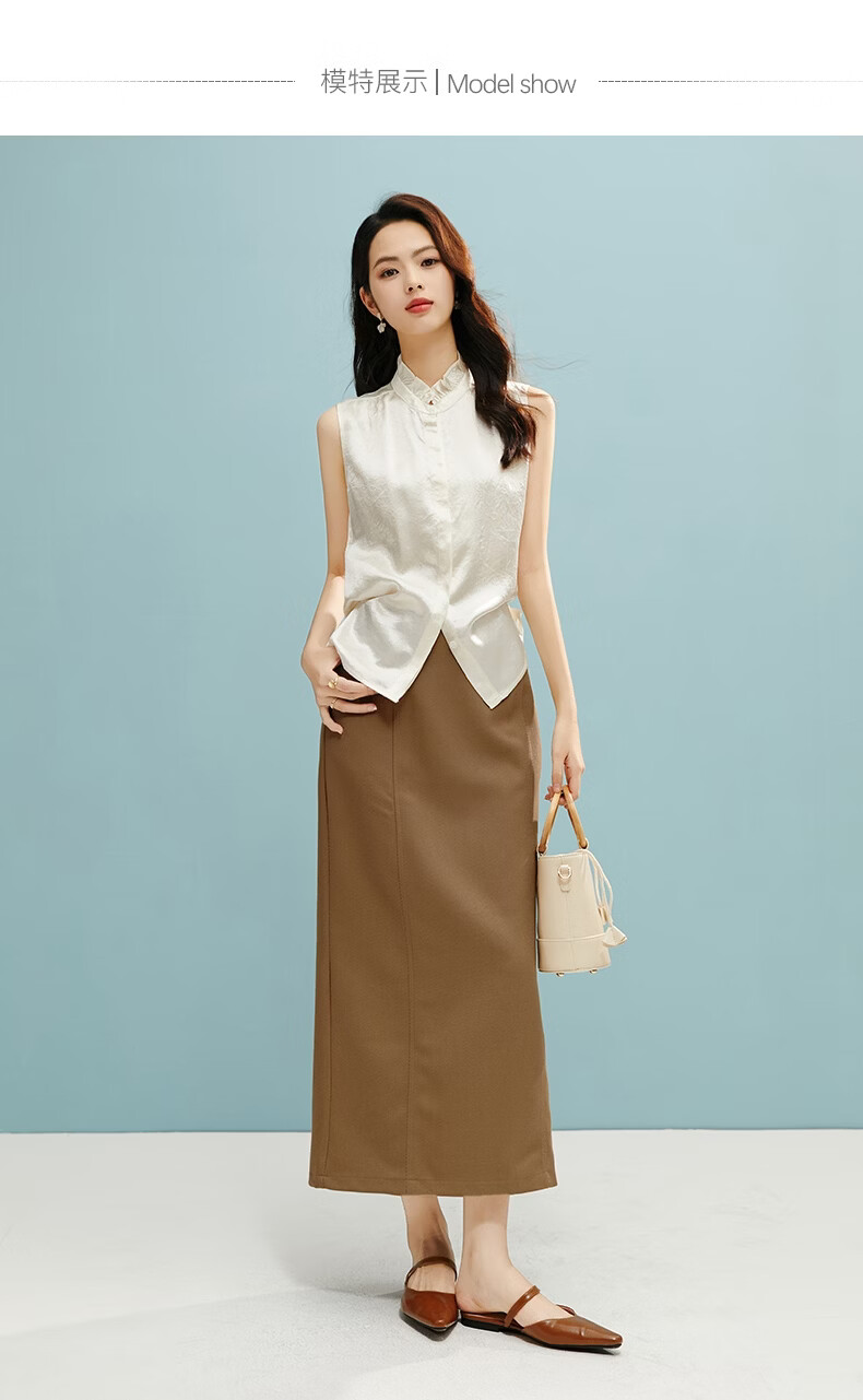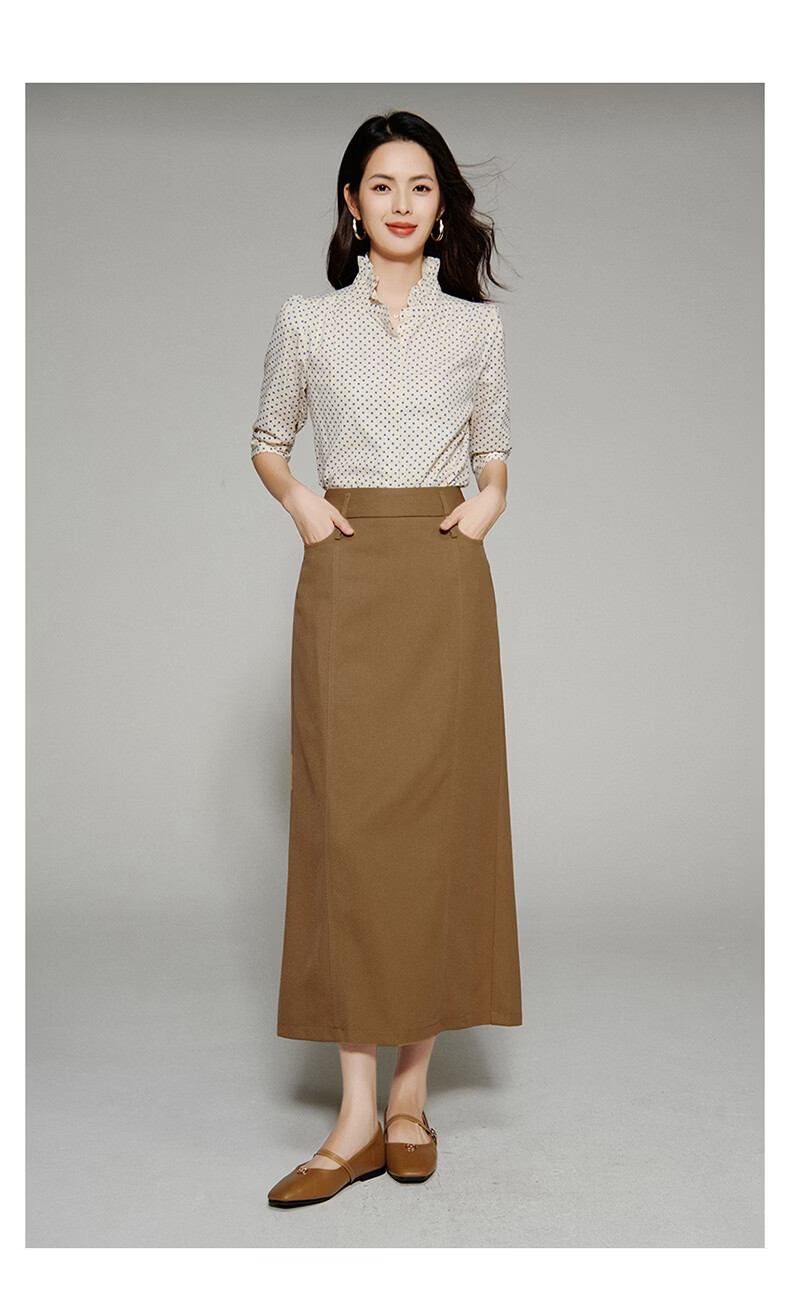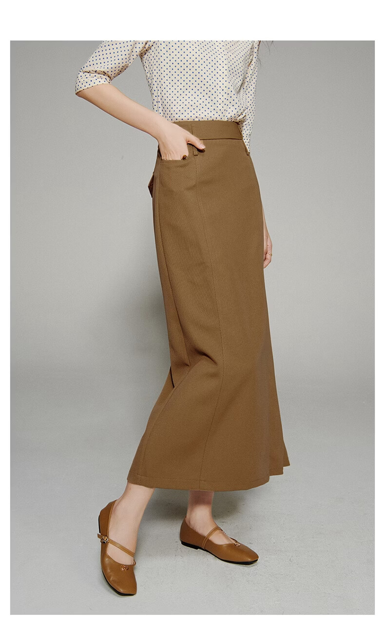 晚白【新品】2026春款经典直筒裙高腰修身气质干练通勤半身裙 驼色 M