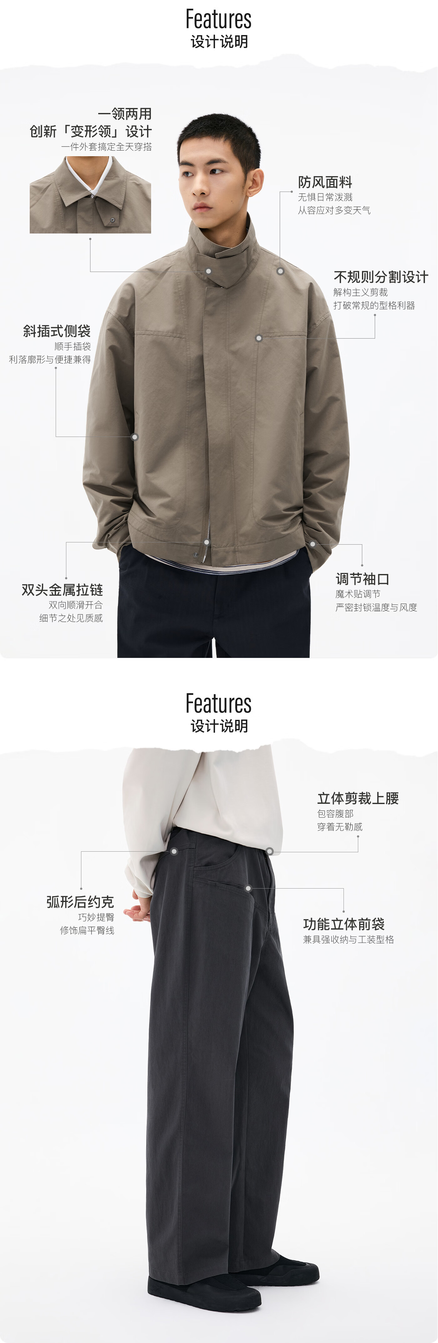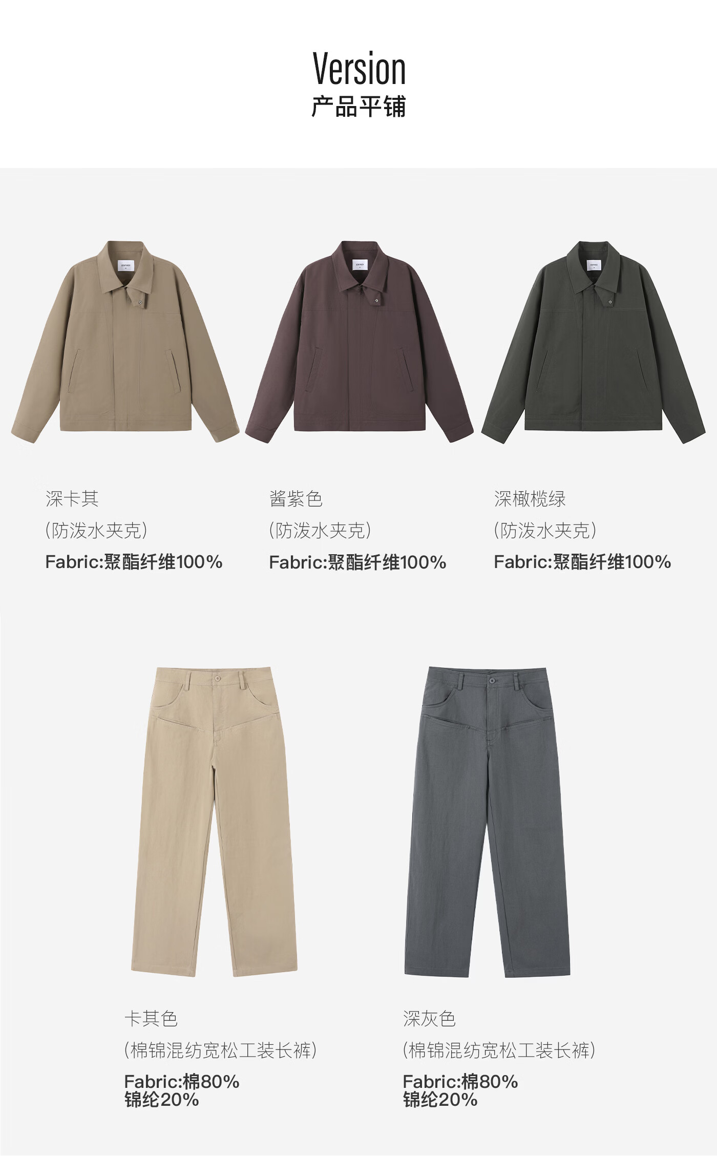 熊猫·本(ben.panda)2026春季新款户外工装防泼水立领夹克裤子套装男休闲两用领外套 酱紫色+卡其色[套装】 M
