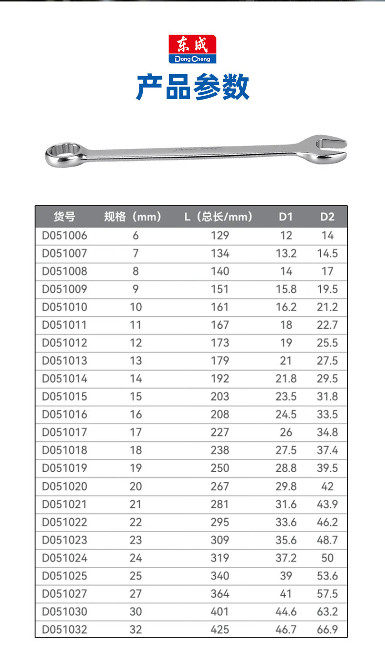 东成 镜面两用扳手省力快扳快速扳手扳子多功能家用维修镜面两用 6mm镜面两用扳手D051006