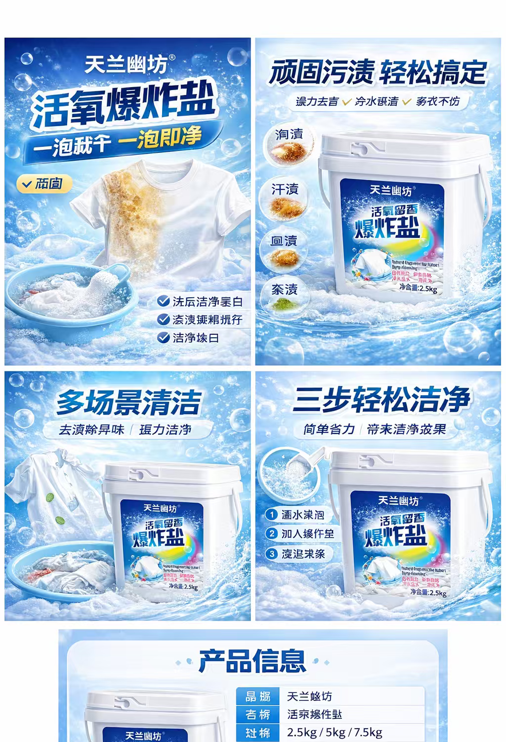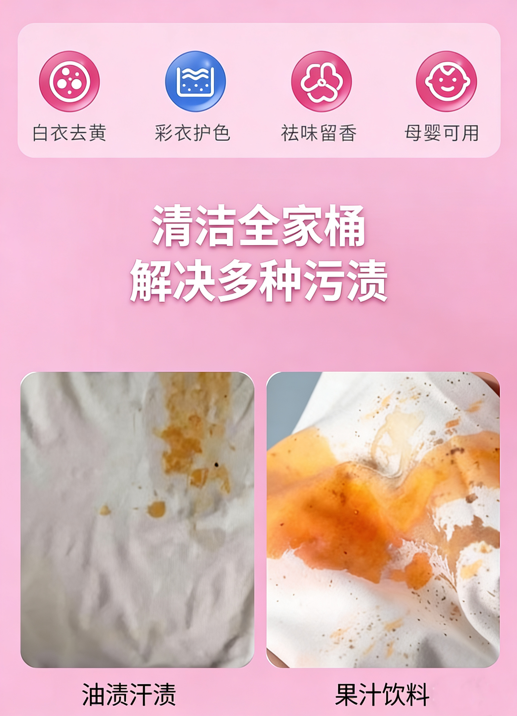 爆炸盐 顽渍净洗衣粉去污增白持久留香强力去污渍洗衣粉校服 2.5KG【活氧留香爆炸盐小桶装】