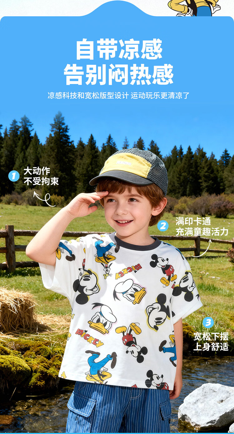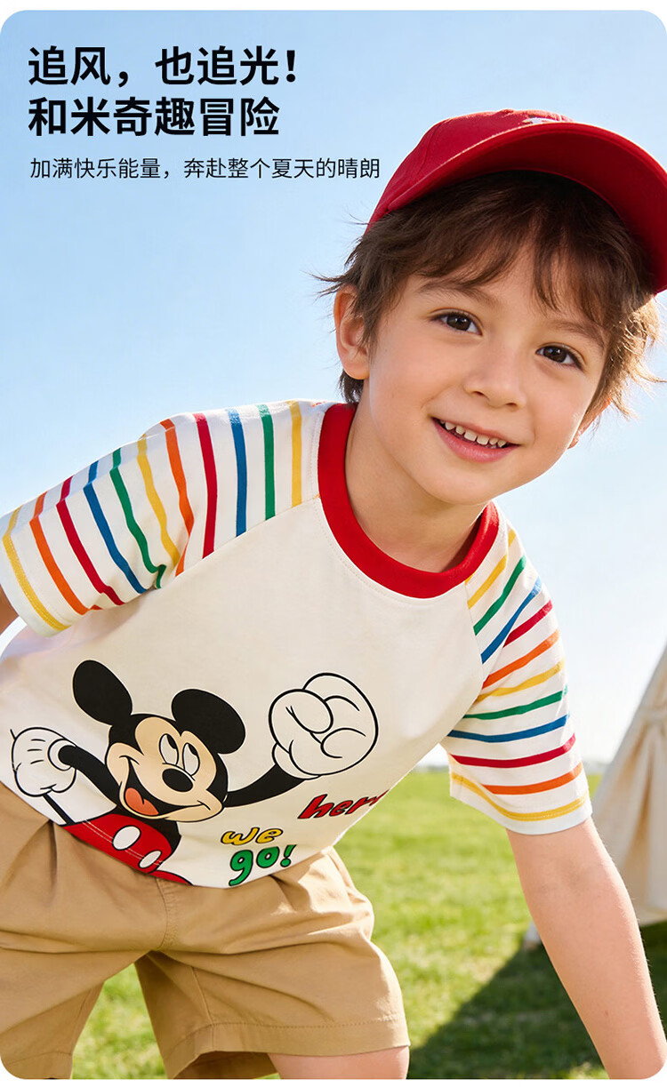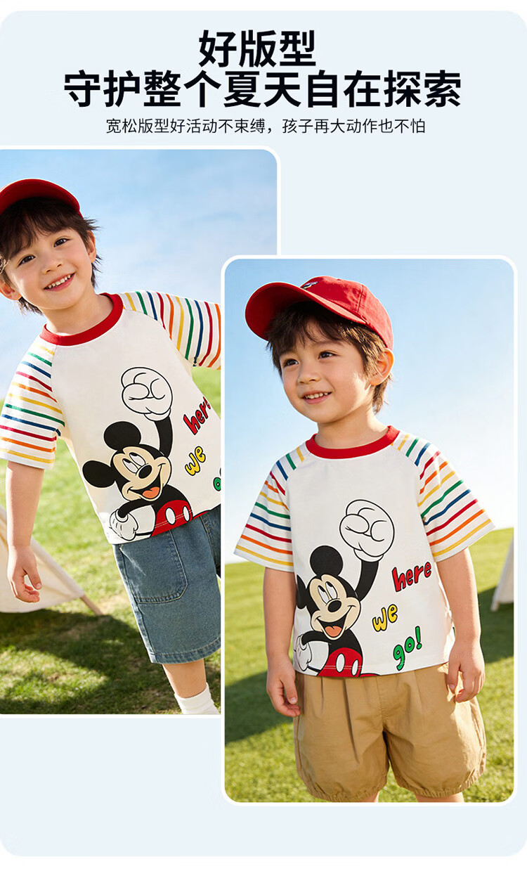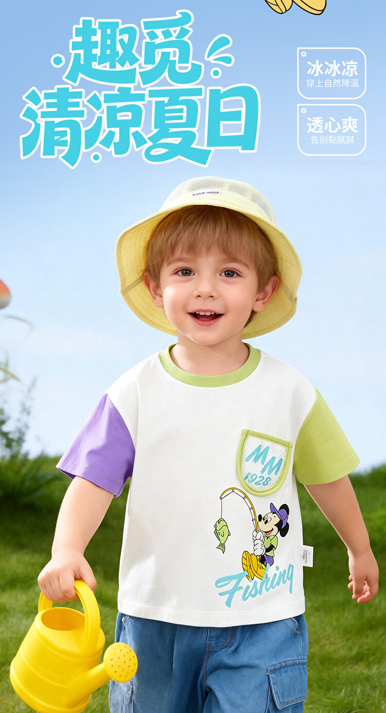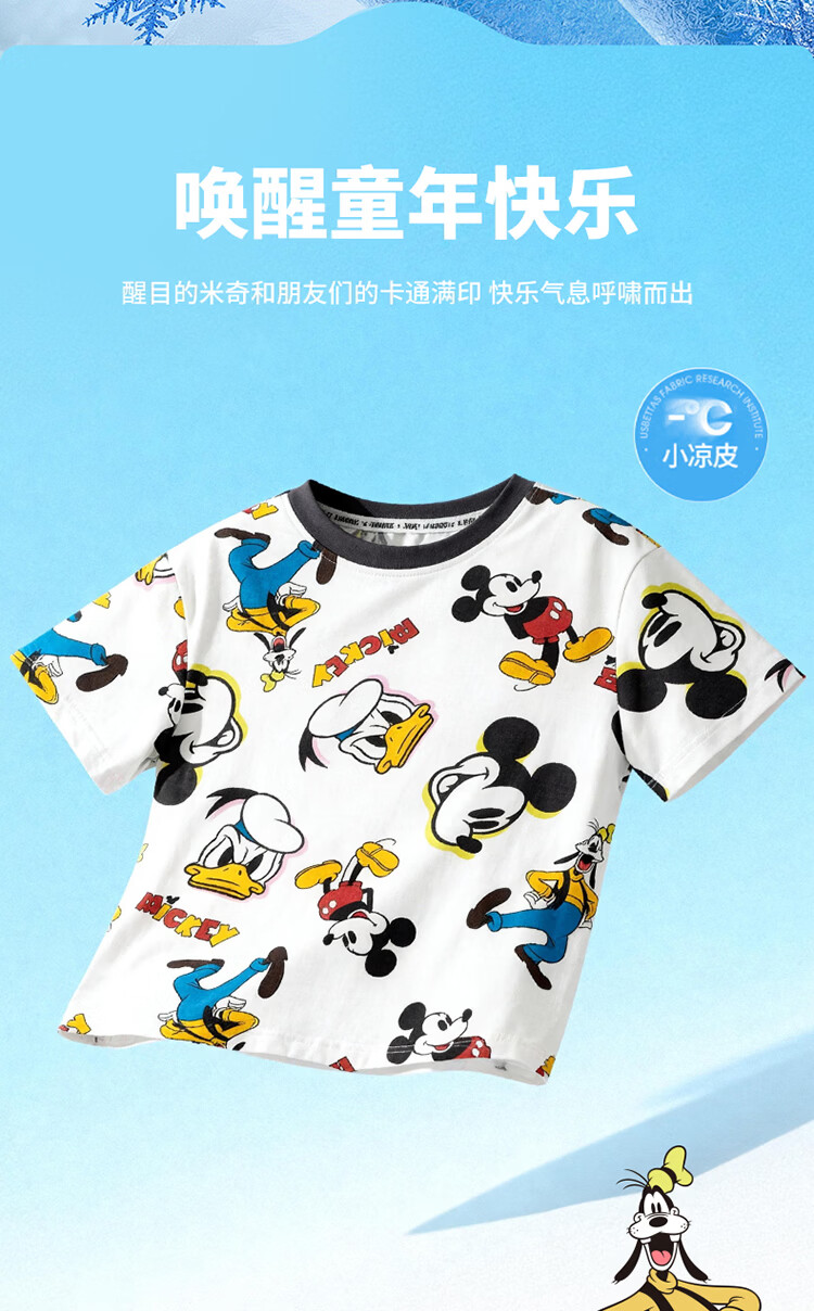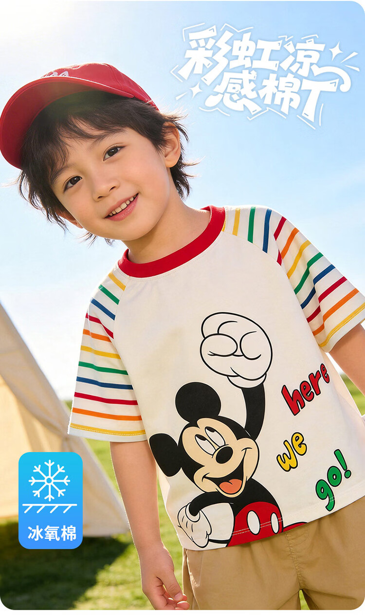 迪士尼(Disney)男女童夏季新款卡通凉感短袖T恤休闲运动7A抗菌儿童短袖童装 玫粉花边米妮 120 (建议4-6岁身高110-120cm)