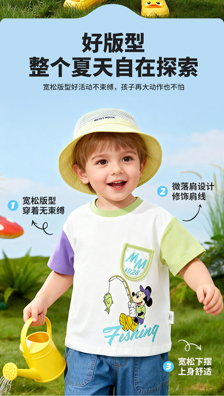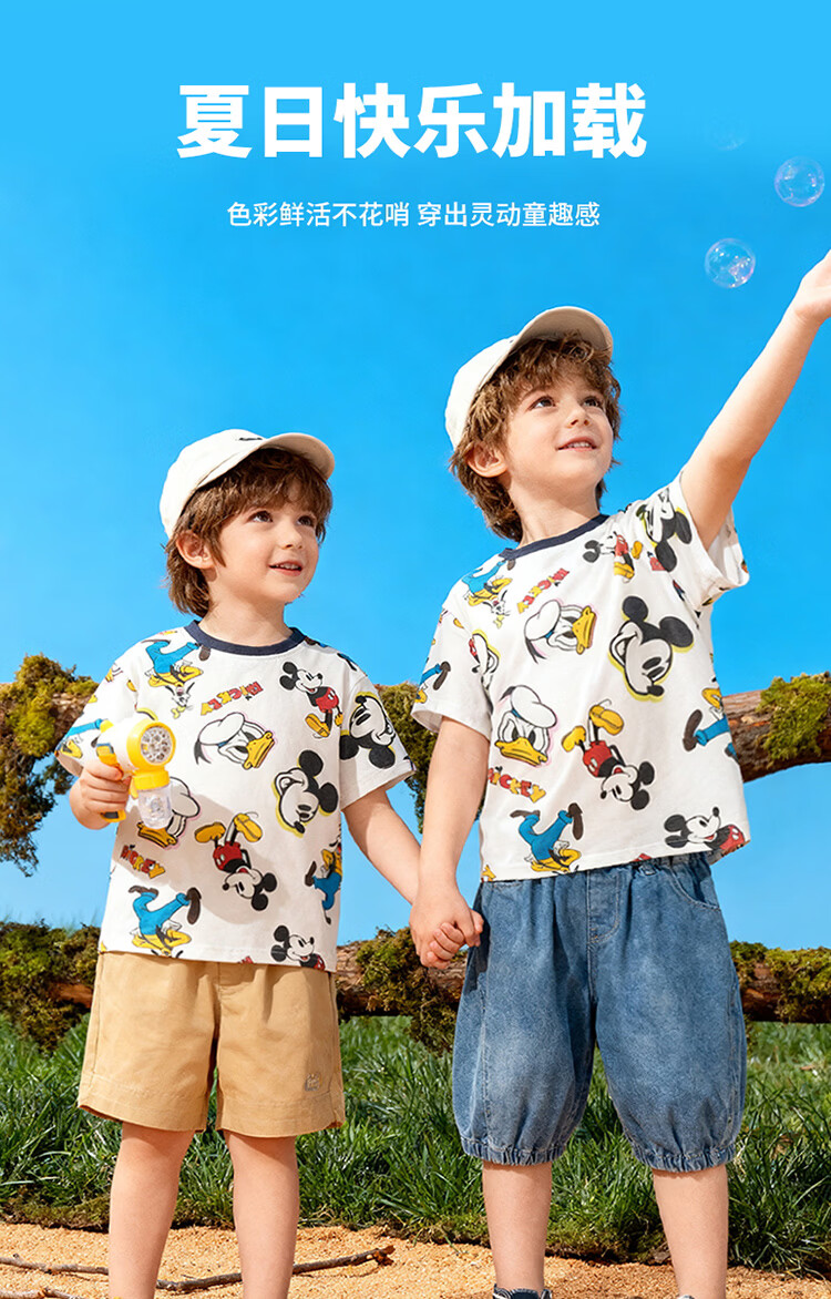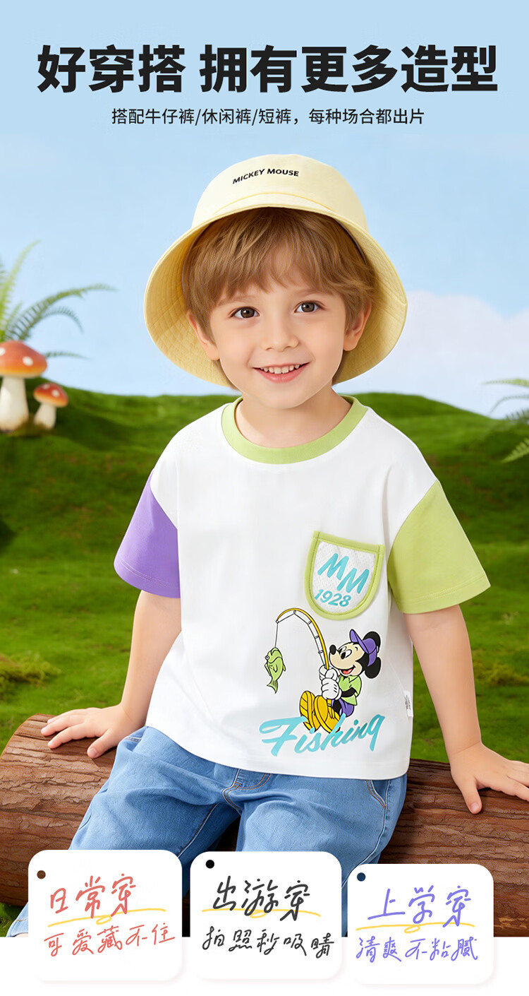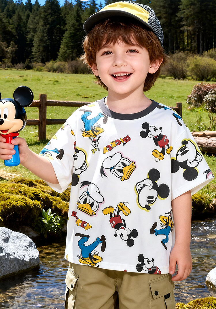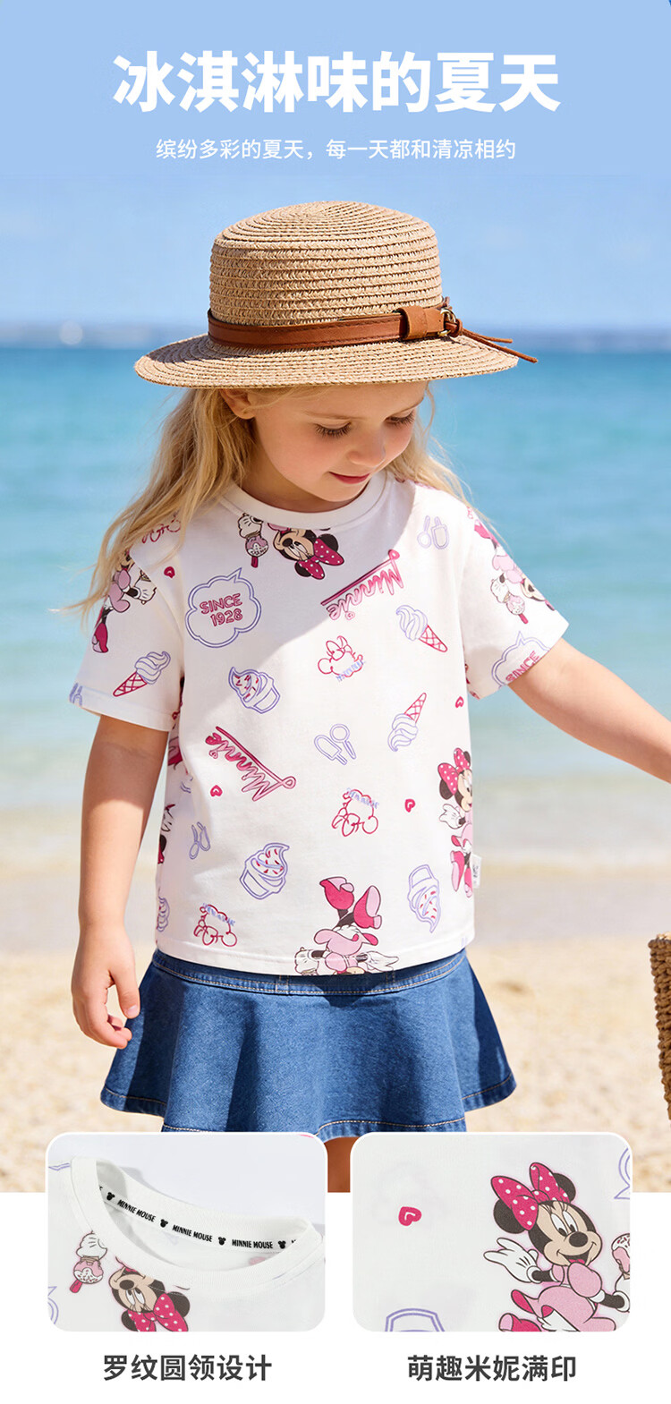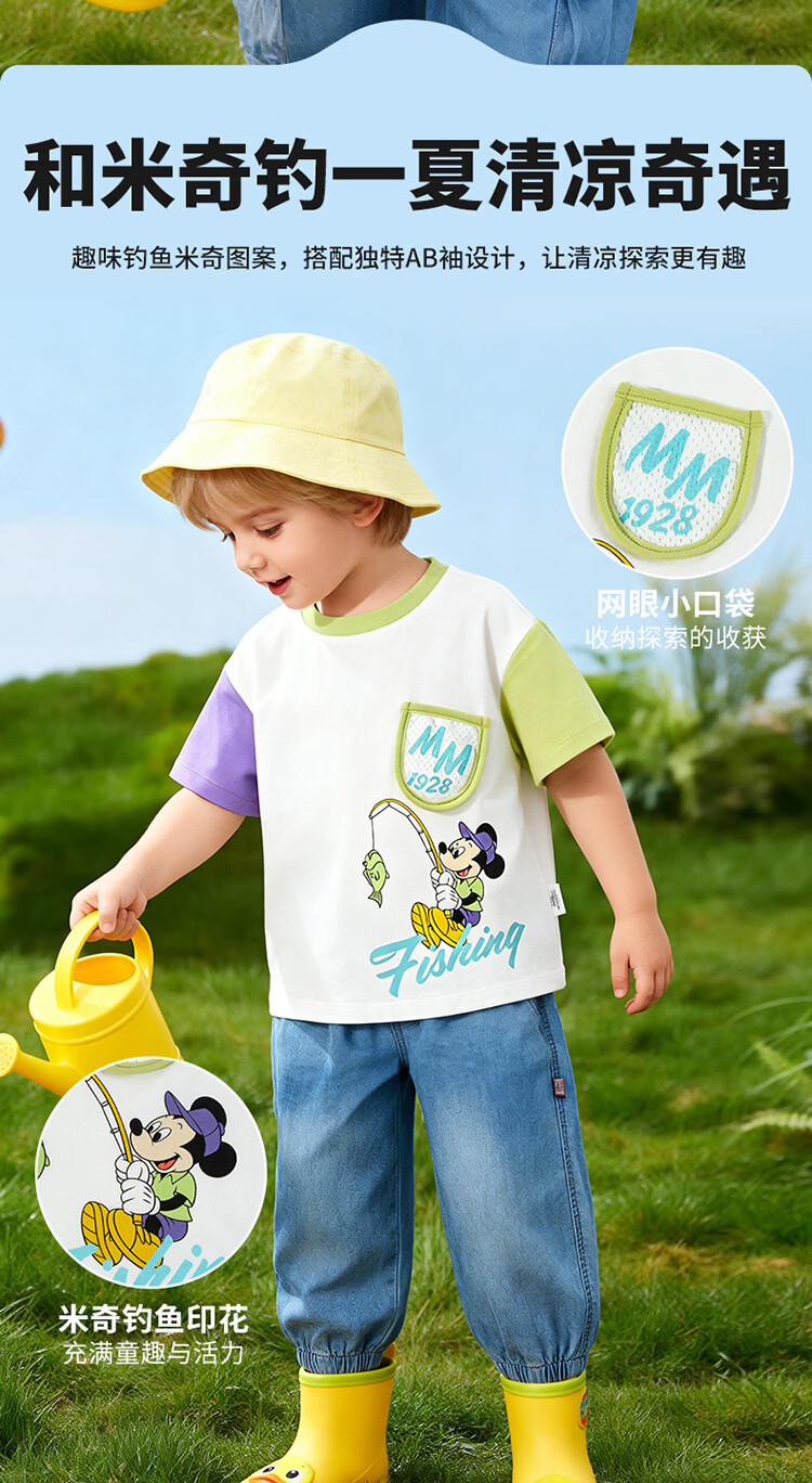 迪士尼(Disney)男女童夏季新款卡通凉感短袖T恤休闲运动7A抗菌儿童短袖童装 玫粉花边米妮 120 (建议4-6岁身高110-120cm)