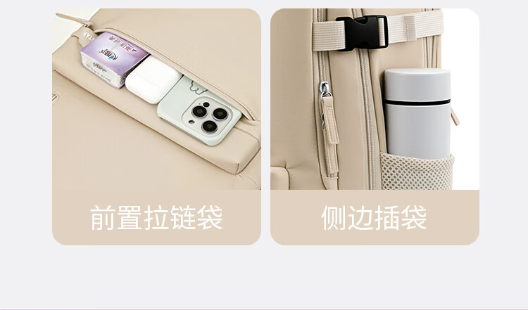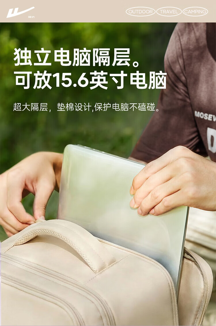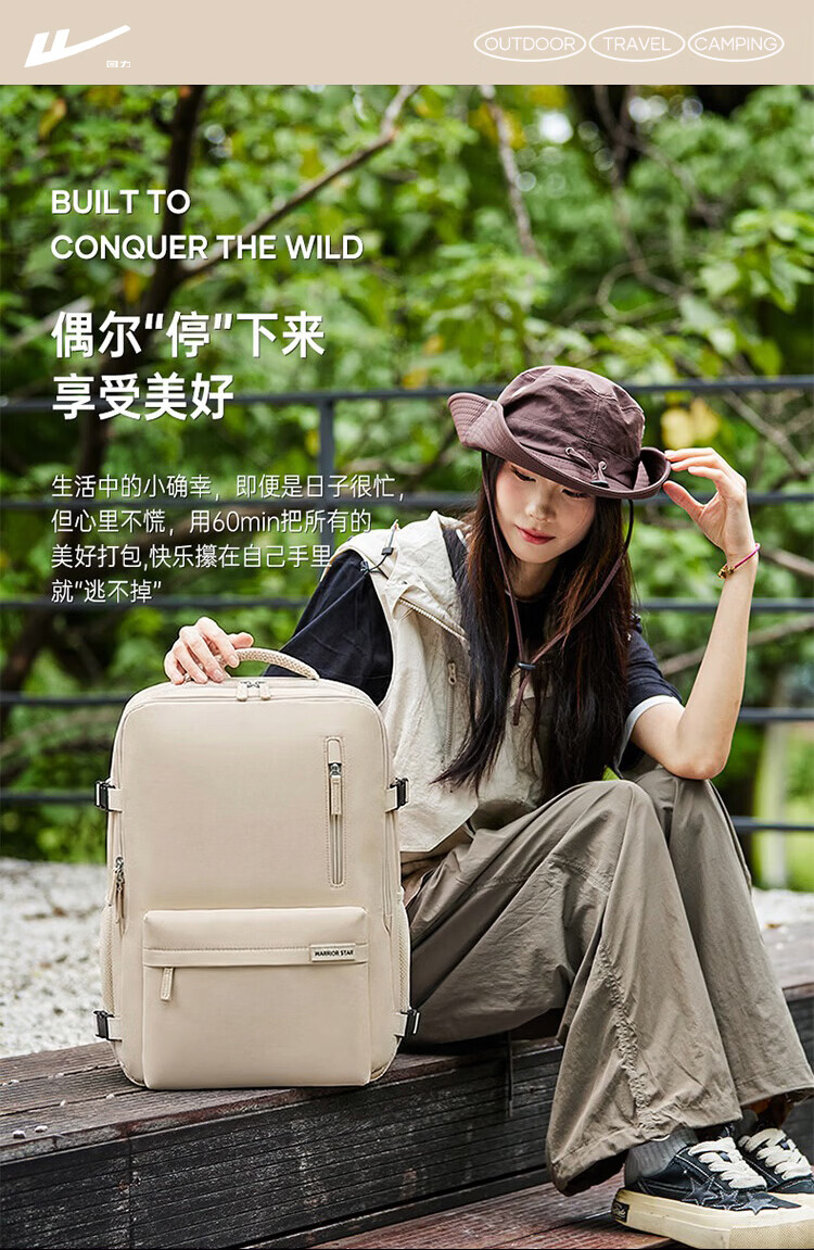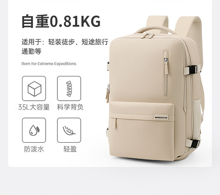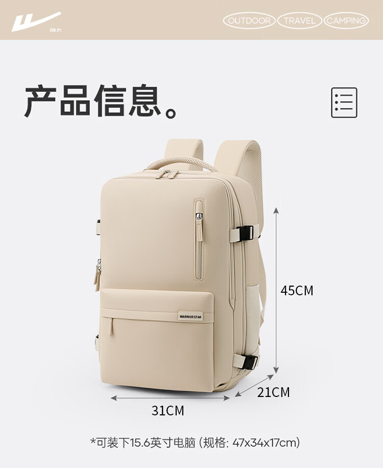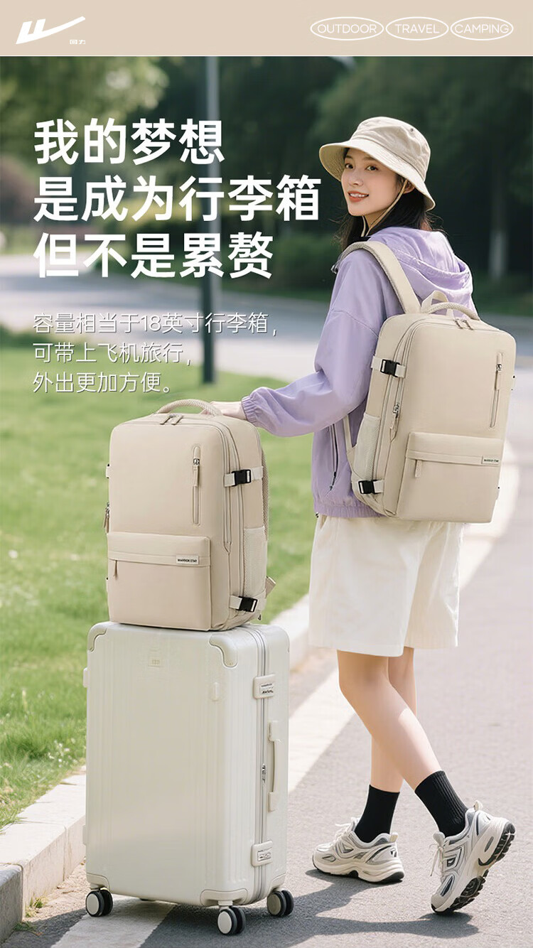 回力背包女新款旅行包大容量双肩包短途旅游包轻便可扩容出差行李包 卡其色