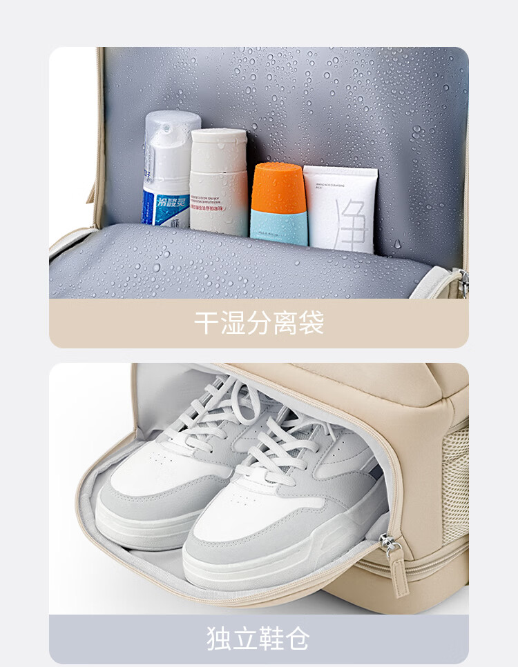 新潮代旅行包男大容量手提出差背包男士多功能干湿分离双肩包健身运动包 2519卡其色【45L大容量设计】