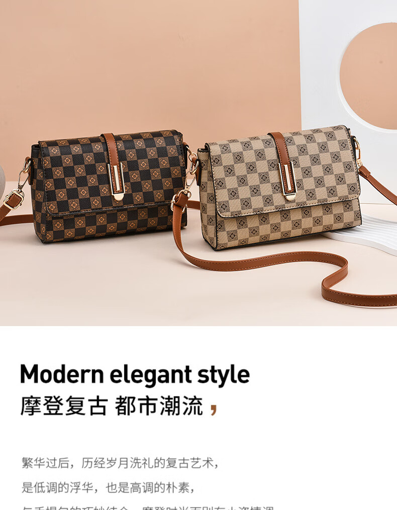 游子吟包包女包2026新款时尚单肩包小包包中年女士挎包送妈妈包包 深菱格配土黄色