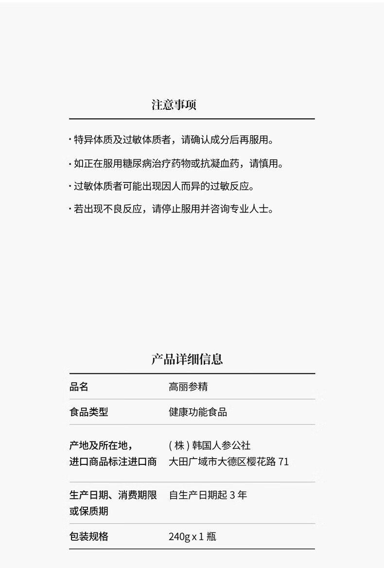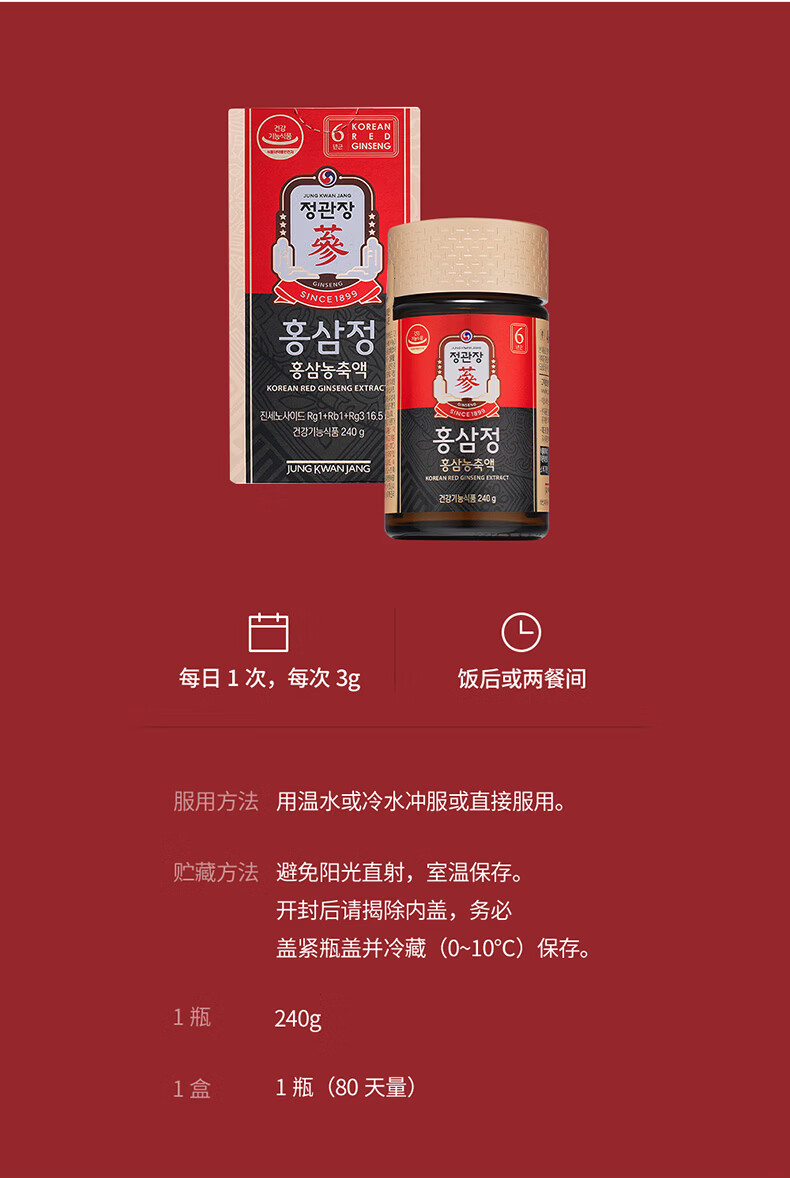 正官庄PLUS240g6年根高浓缩高丽参红参人参膏补气血营养品送礼韩国进口