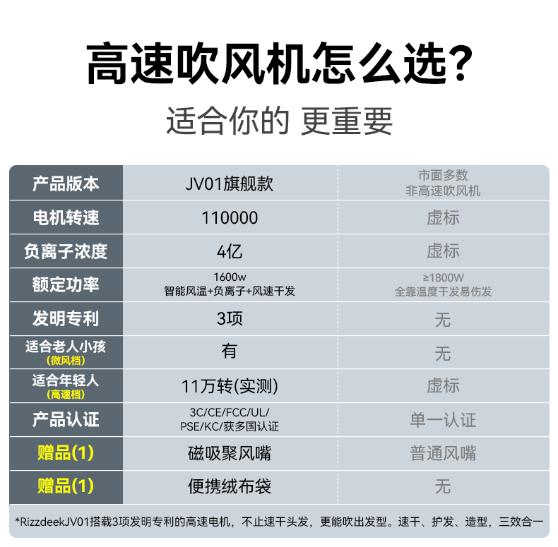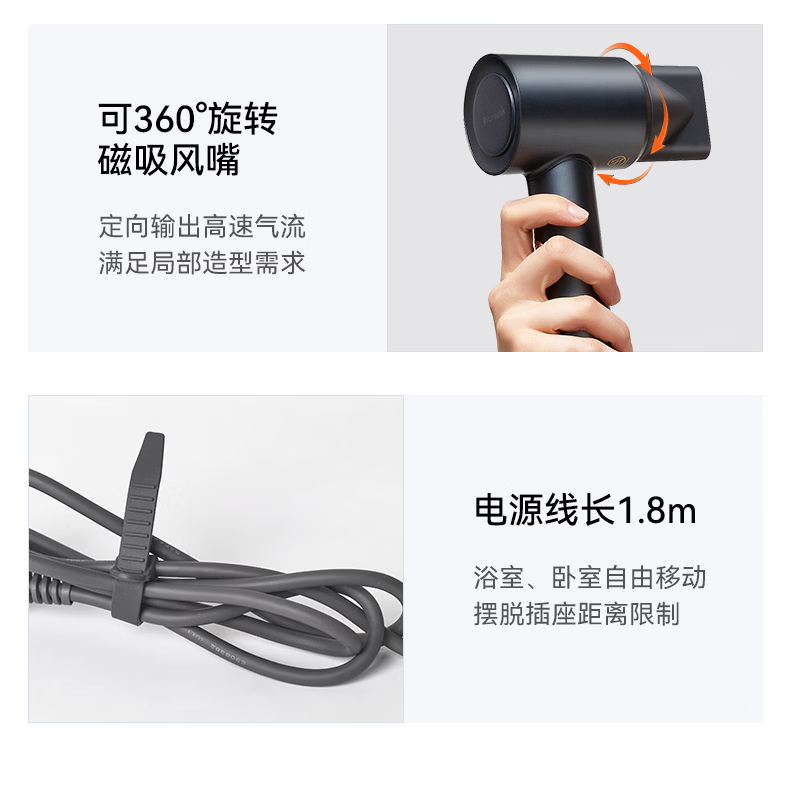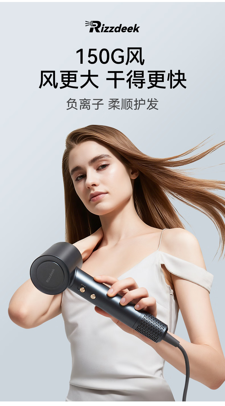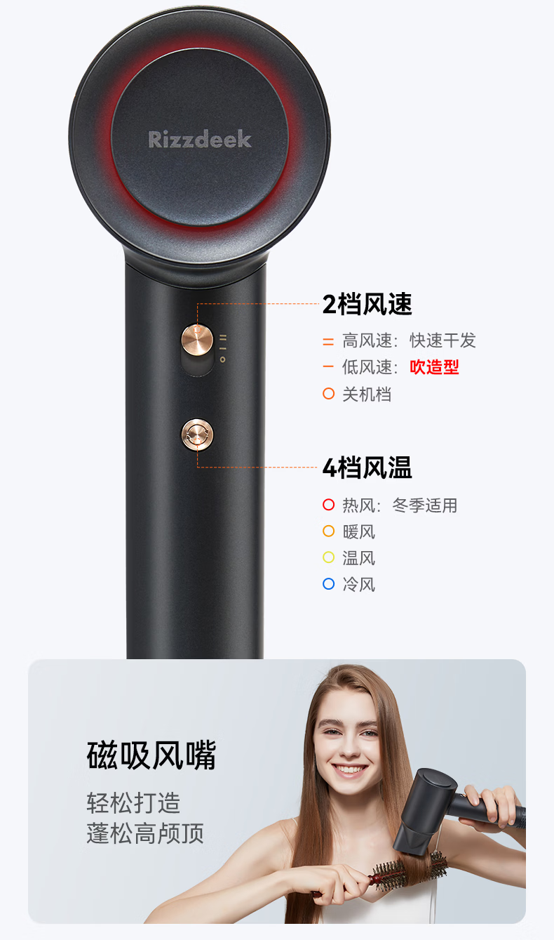 RIZZDEEK【魅丽无限】高速护发吹风机家用静音负离子大功率不伤发电风筒男女学生伴手礼生日礼物旗舰款黑色 曜石黑 +磁吸风嘴+便携绒布袋