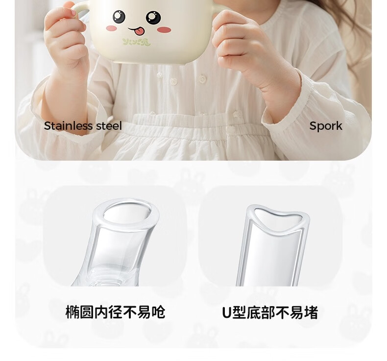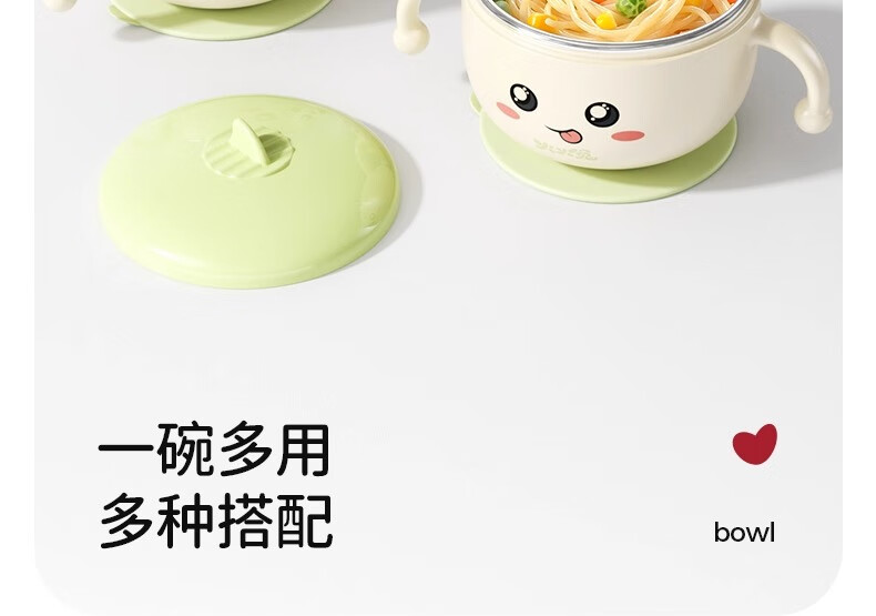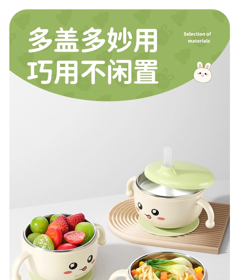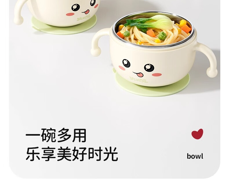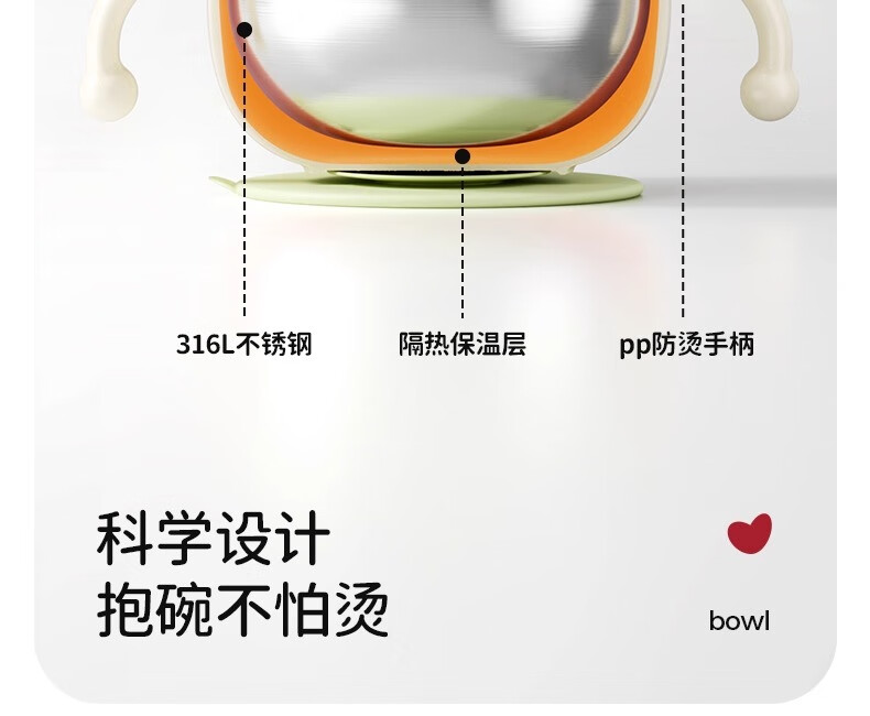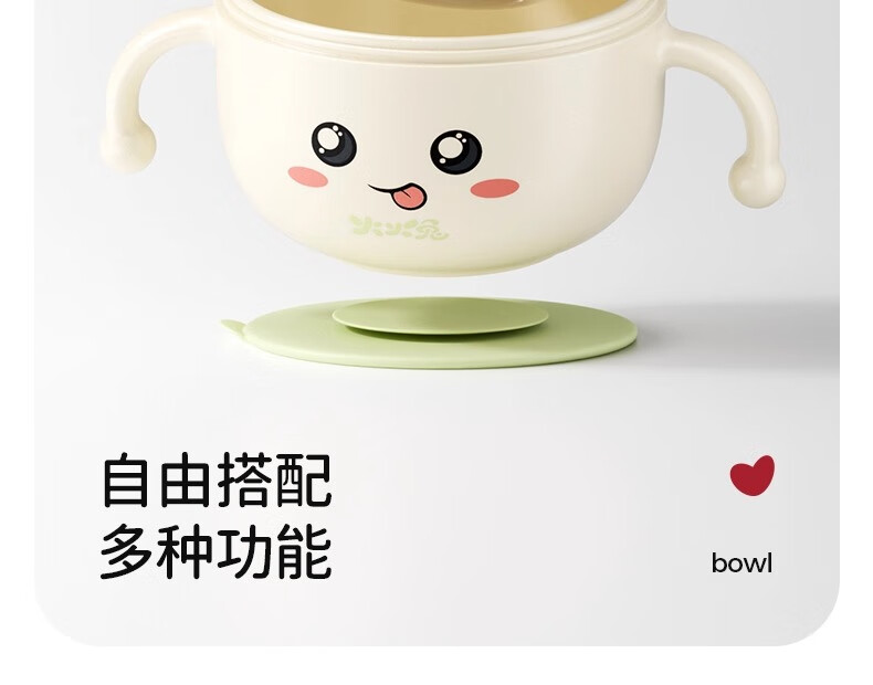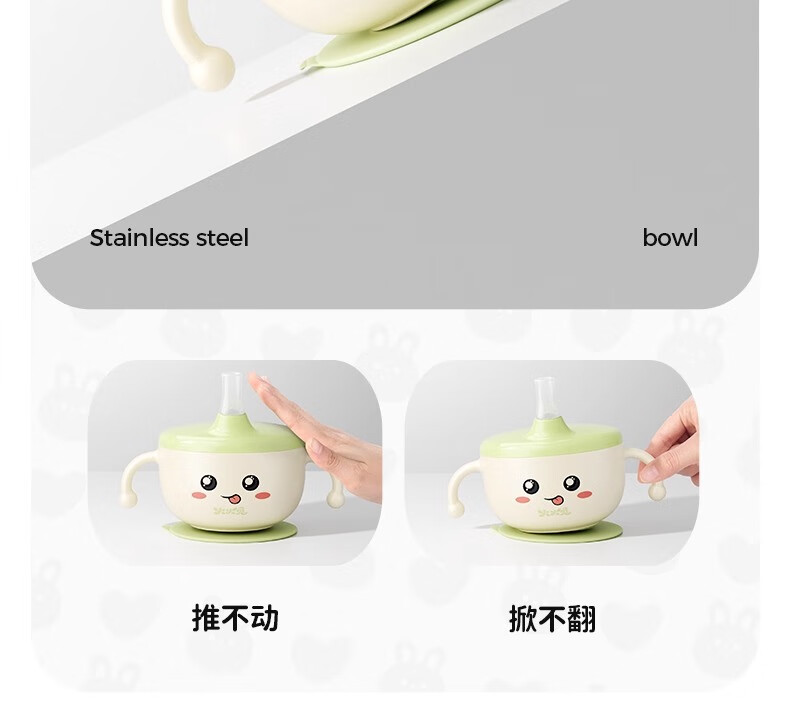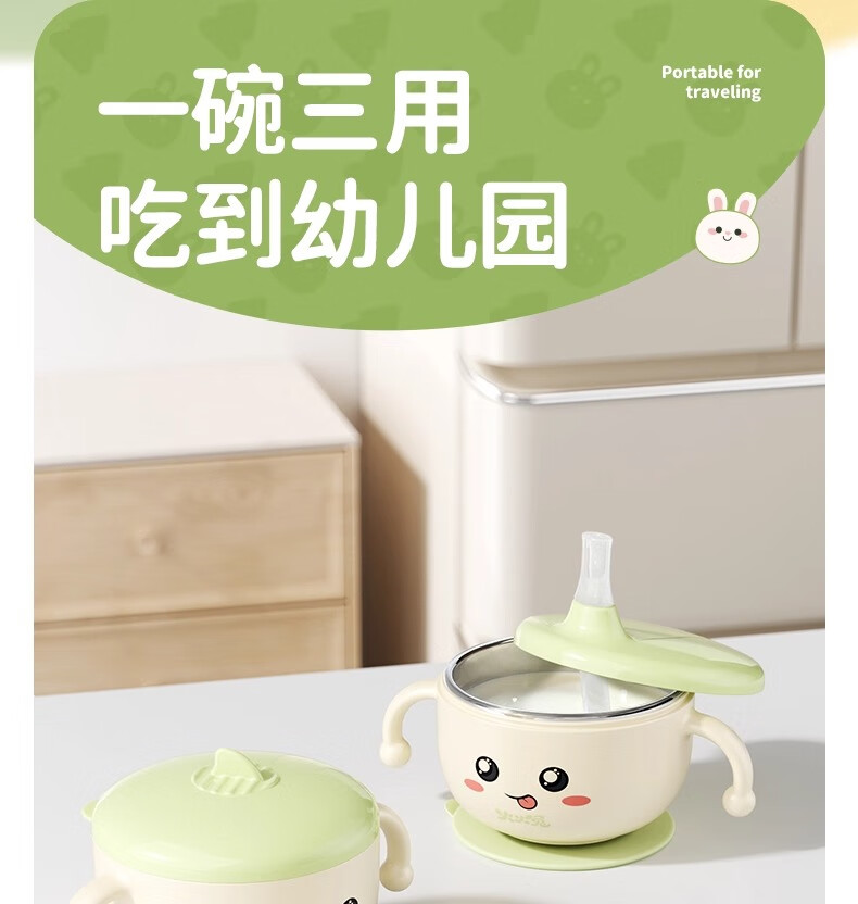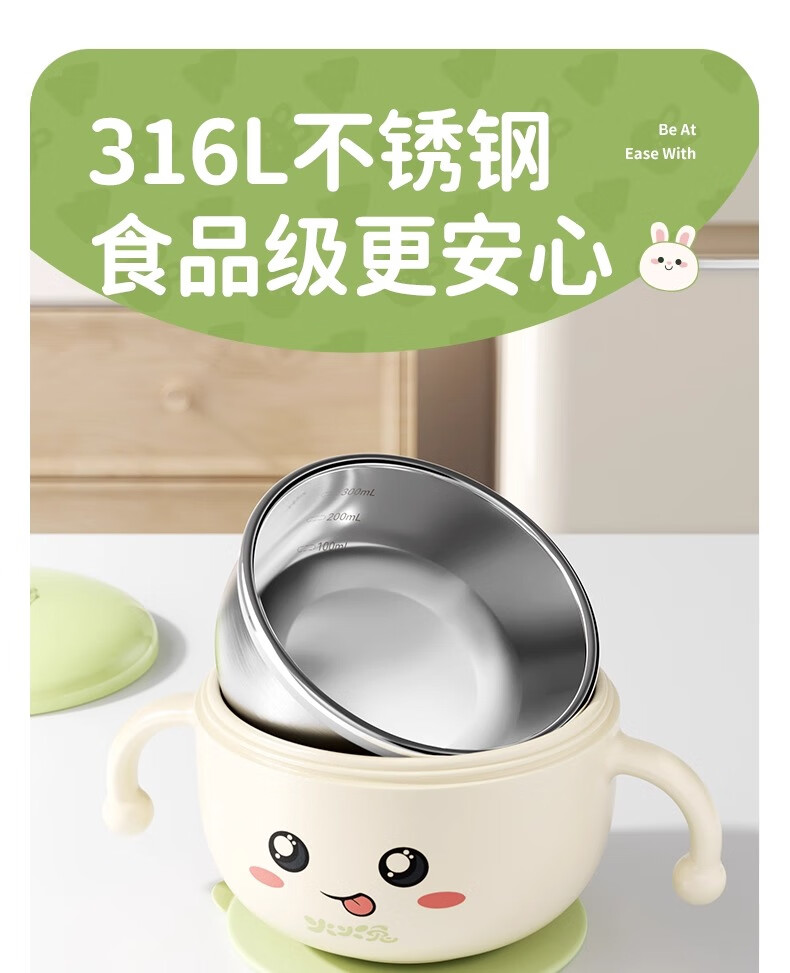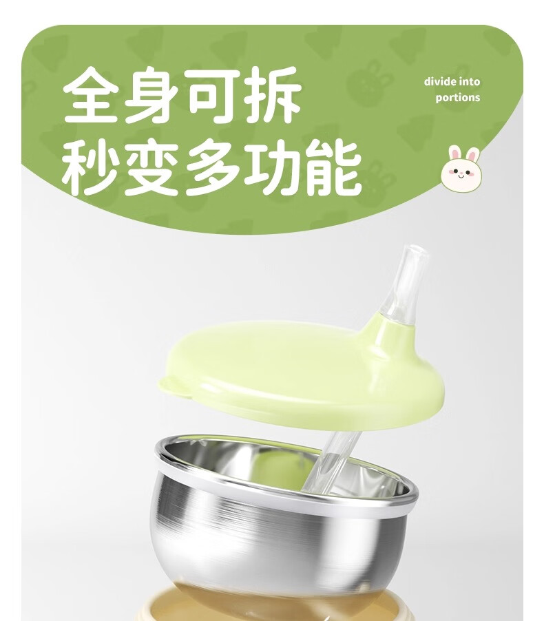 火火兔婴幼儿专用辅食碗宝宝喝汤吸管碗不锈钢喂粥水餐具防烫防摔 小月龄辅食碗【316不锈钢内胆】一碗多用