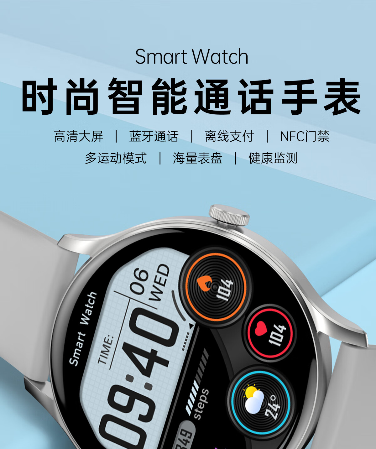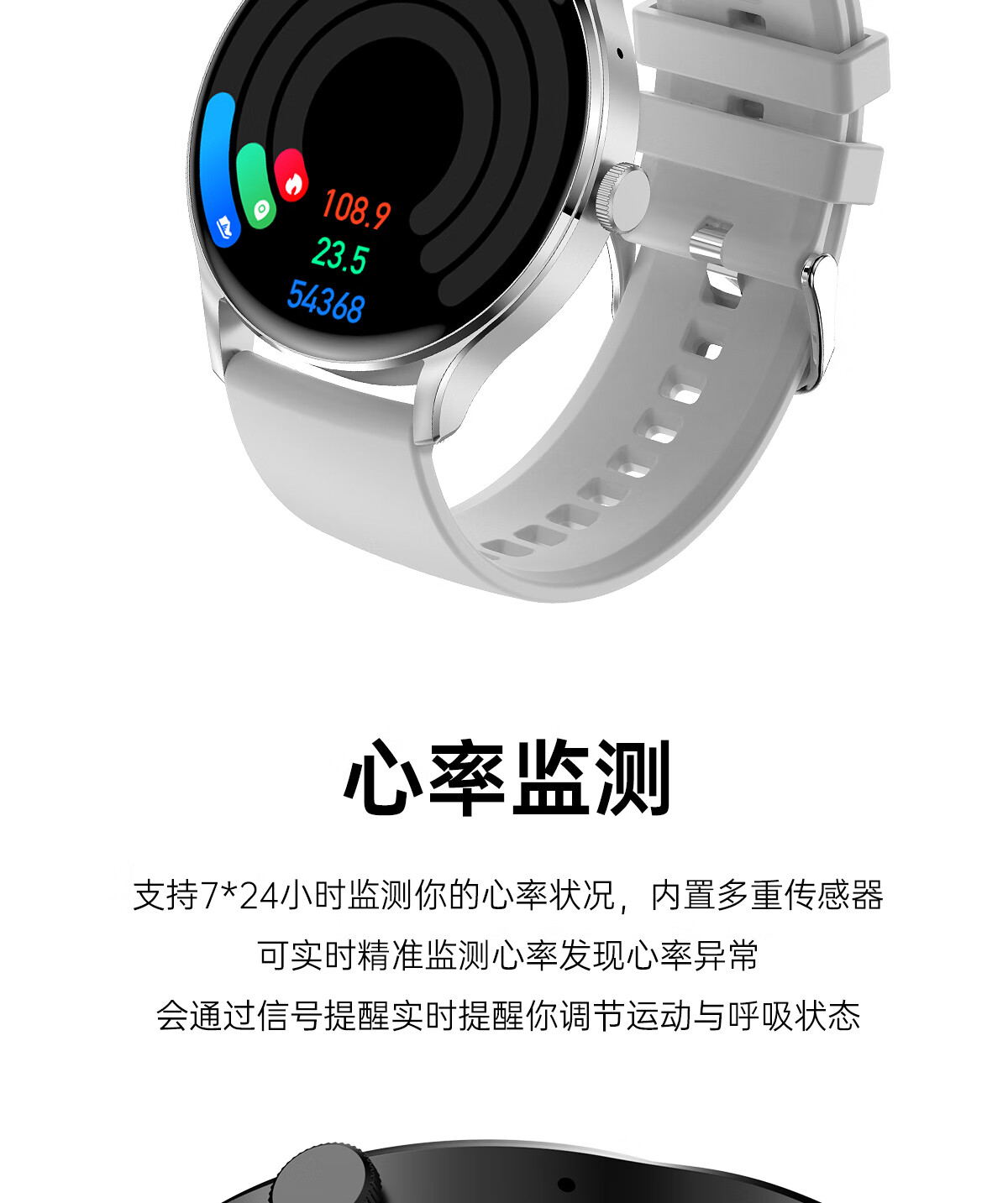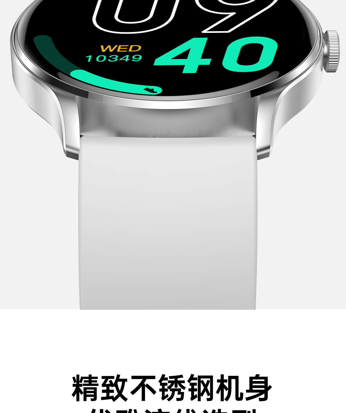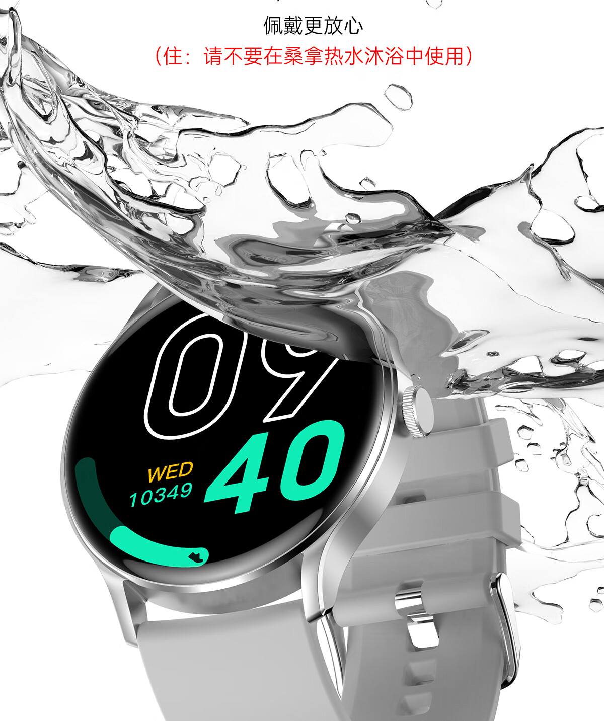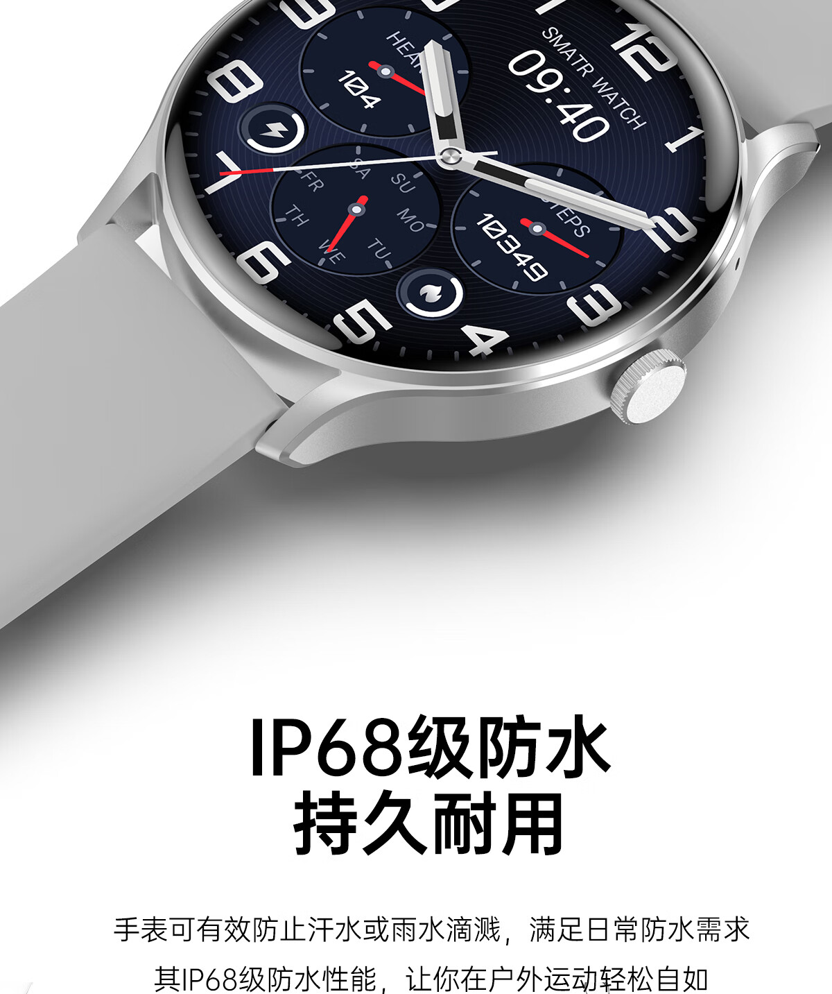 莱思帝HK33智能运动手表跑步监测心率血压血氧睡眠健身IP68防水长续航蓝牙电话离线支付AI语音助手手环 银色 合金机身+灰色硅胶表带