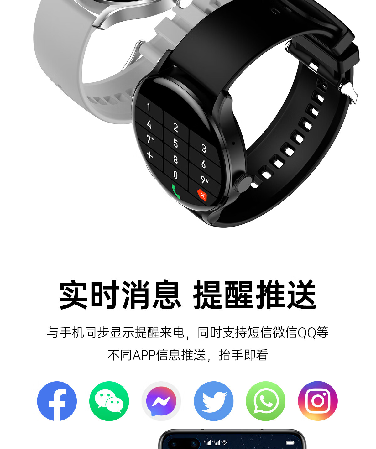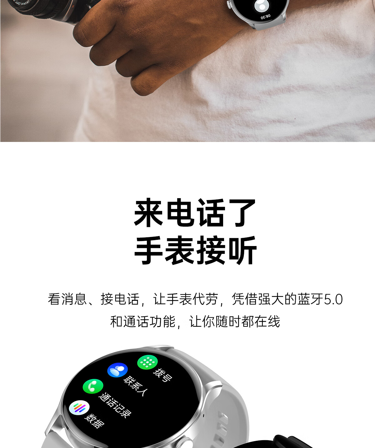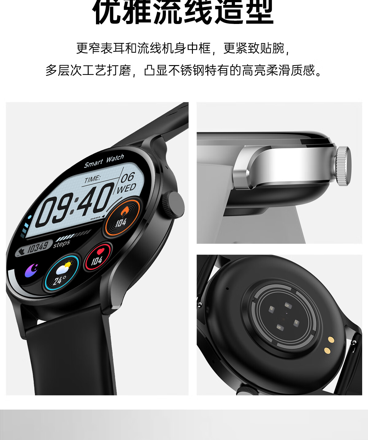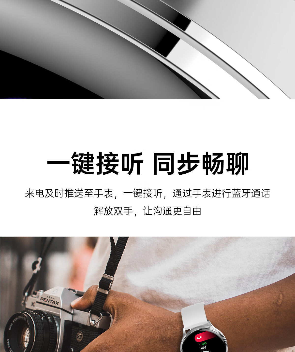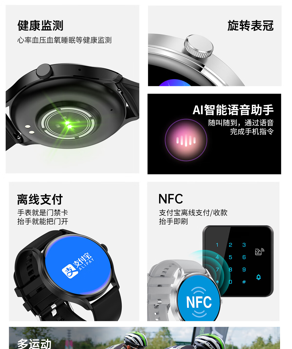 莱思帝HK33智能运动手表跑步监测心率血压血氧睡眠健身IP68防水长续航蓝牙电话离线支付AI语音助手手环 银色 合金机身+灰色硅胶表带